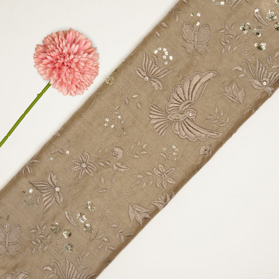 Naila Bird Jaal on Almond Luxe Silk Chanderi Embroidered Fabric