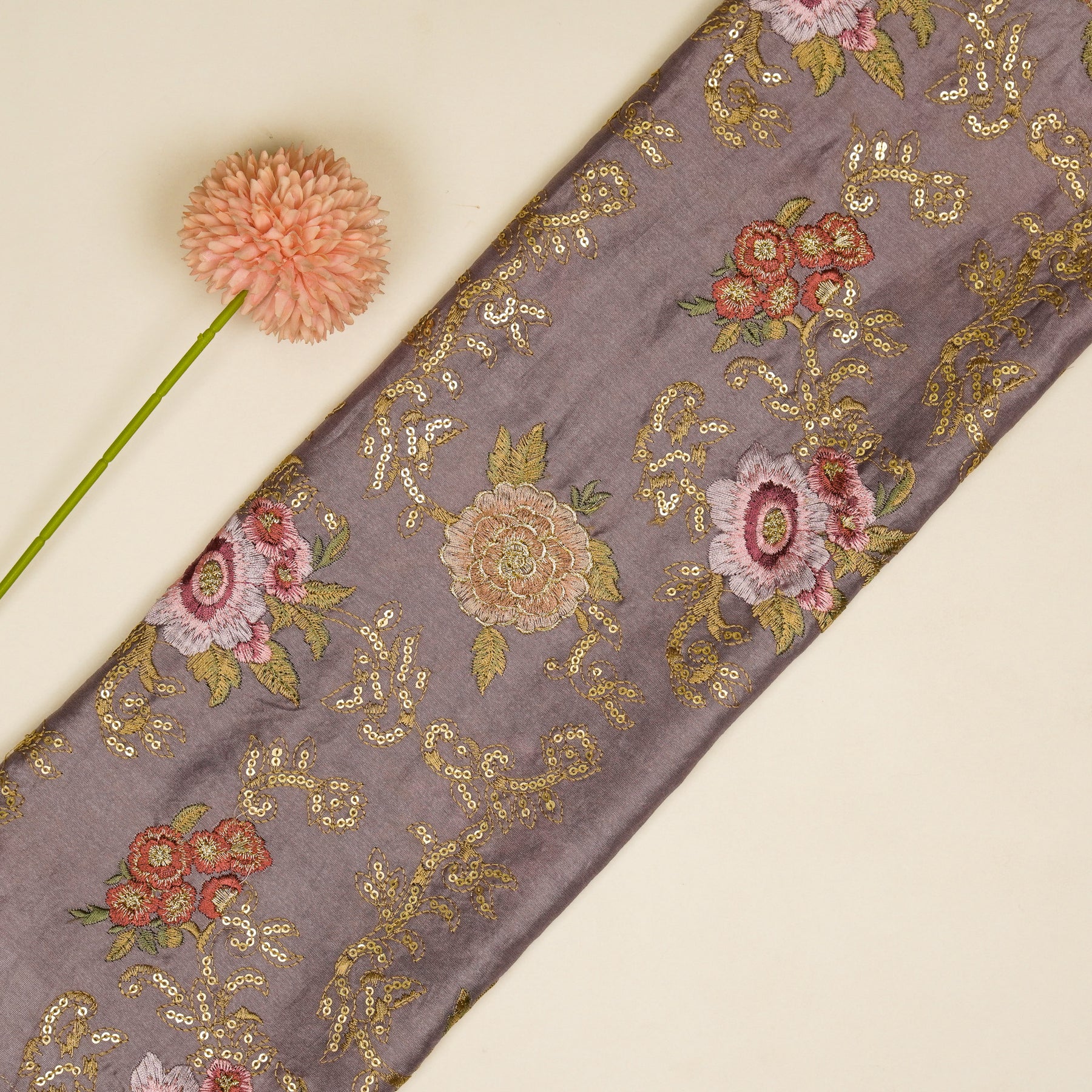 Abhra Jaal on Deep Mauve Luxe Silk Chanderi Embroidered Fabric