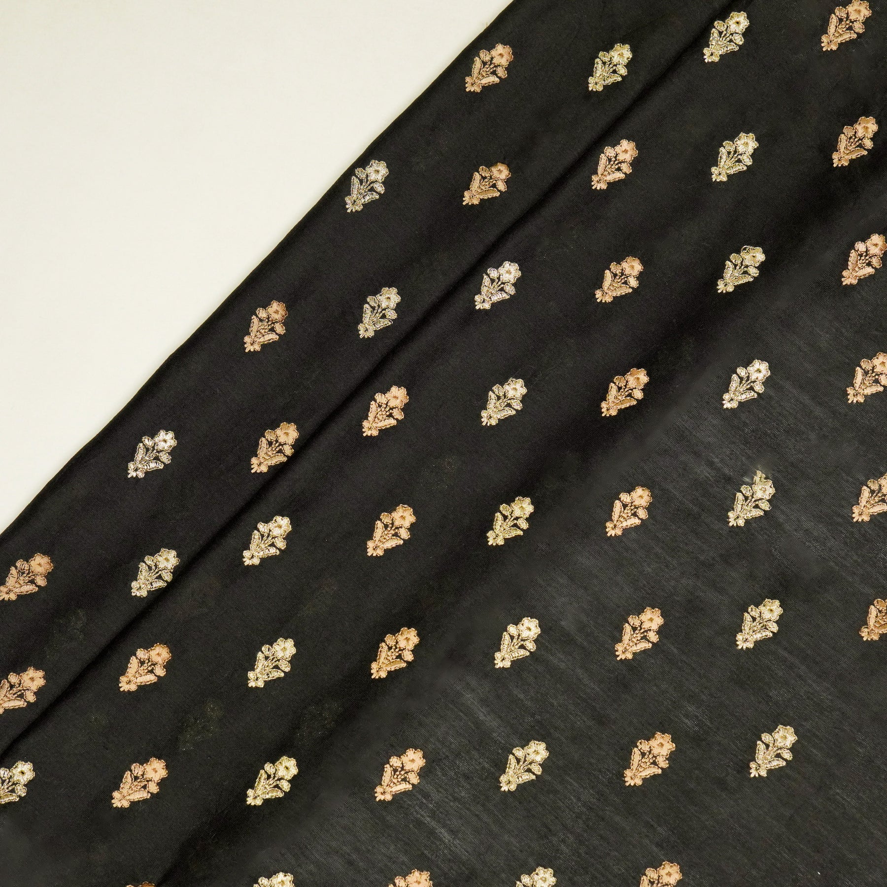 Tusha Buti on Black Luxe Silk Chanderi Embroidered Fabric
