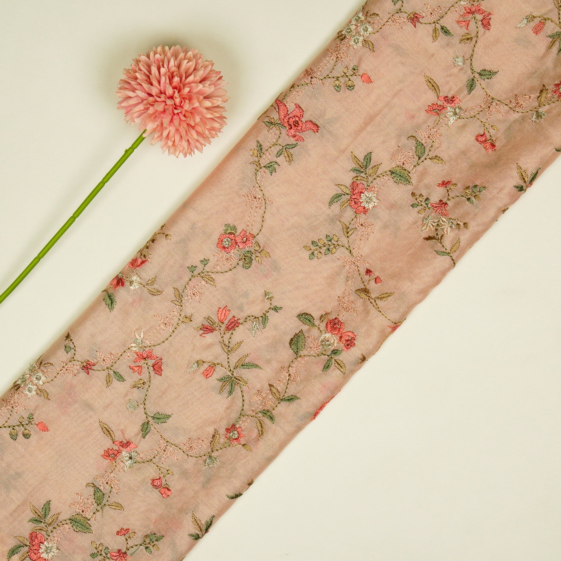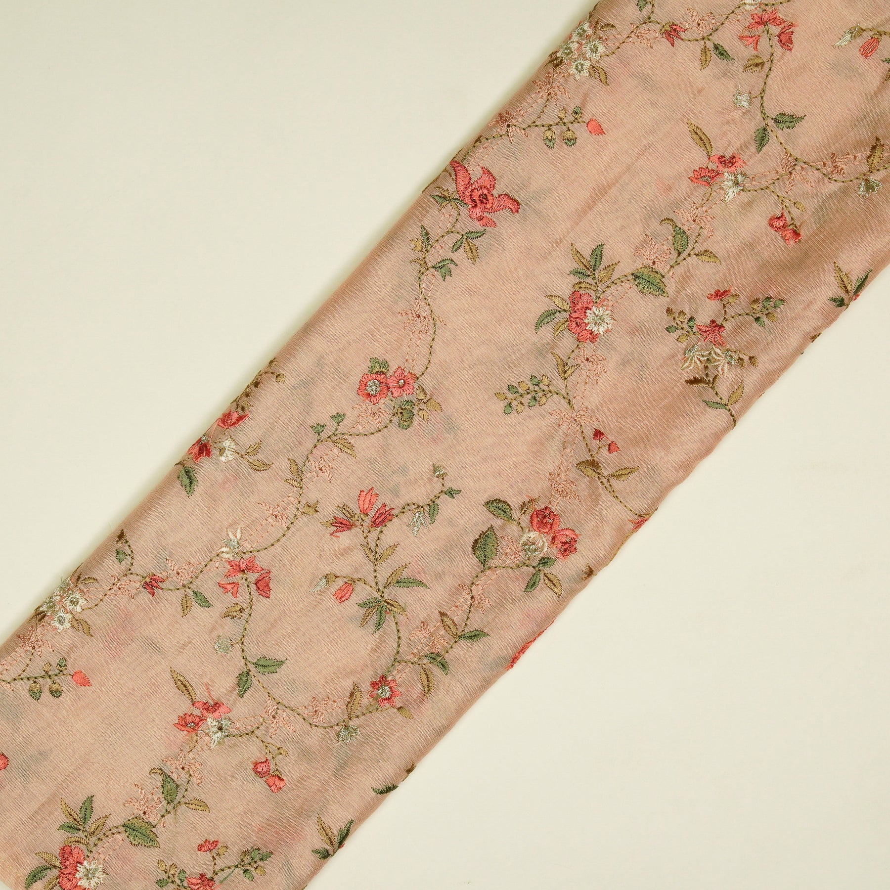 Ahlam Jaal on Light Peach Luxe Silk Chanderi Embroidered Fabric