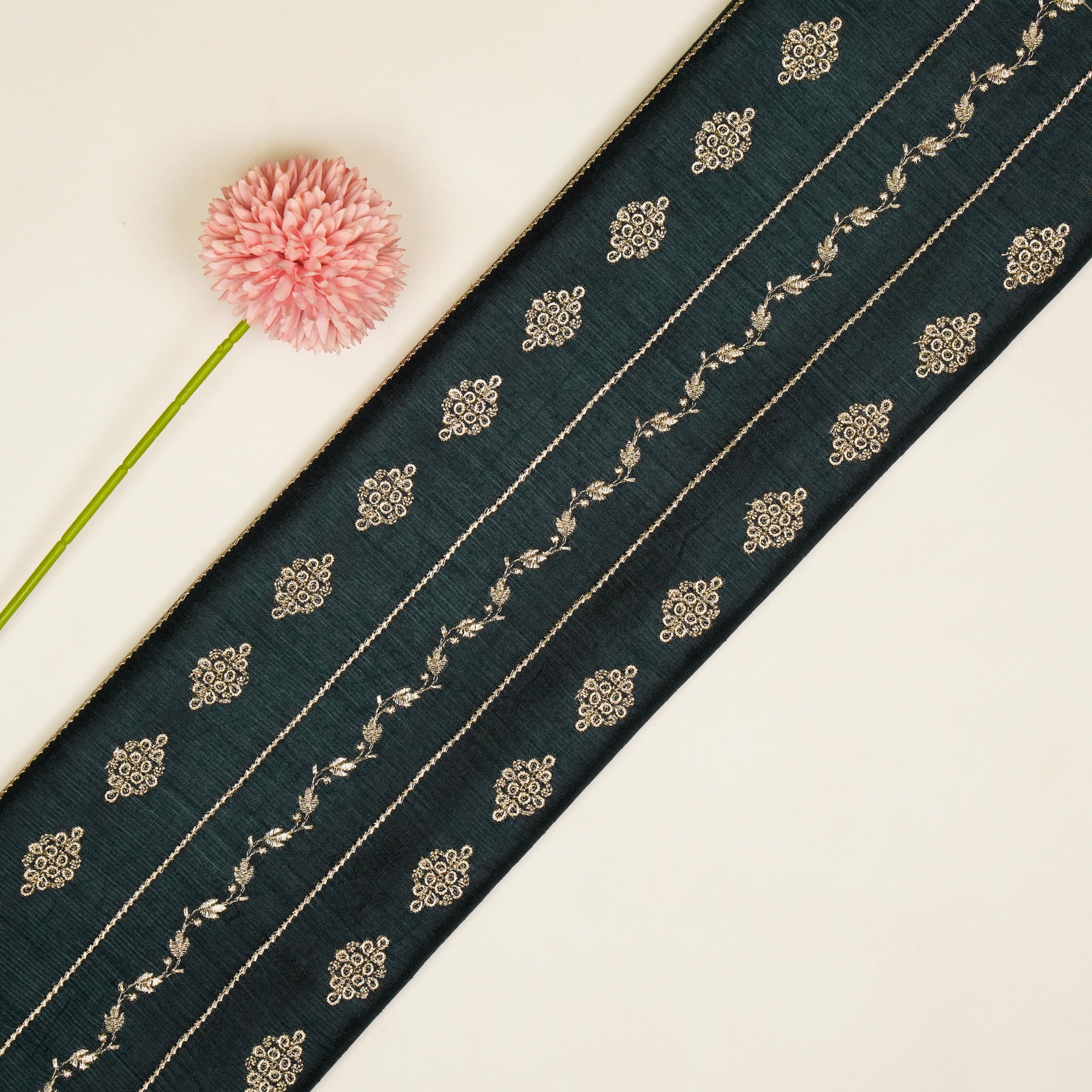 Akaar jaal on Bluish Grey Raw Silk Embroidered Fabric