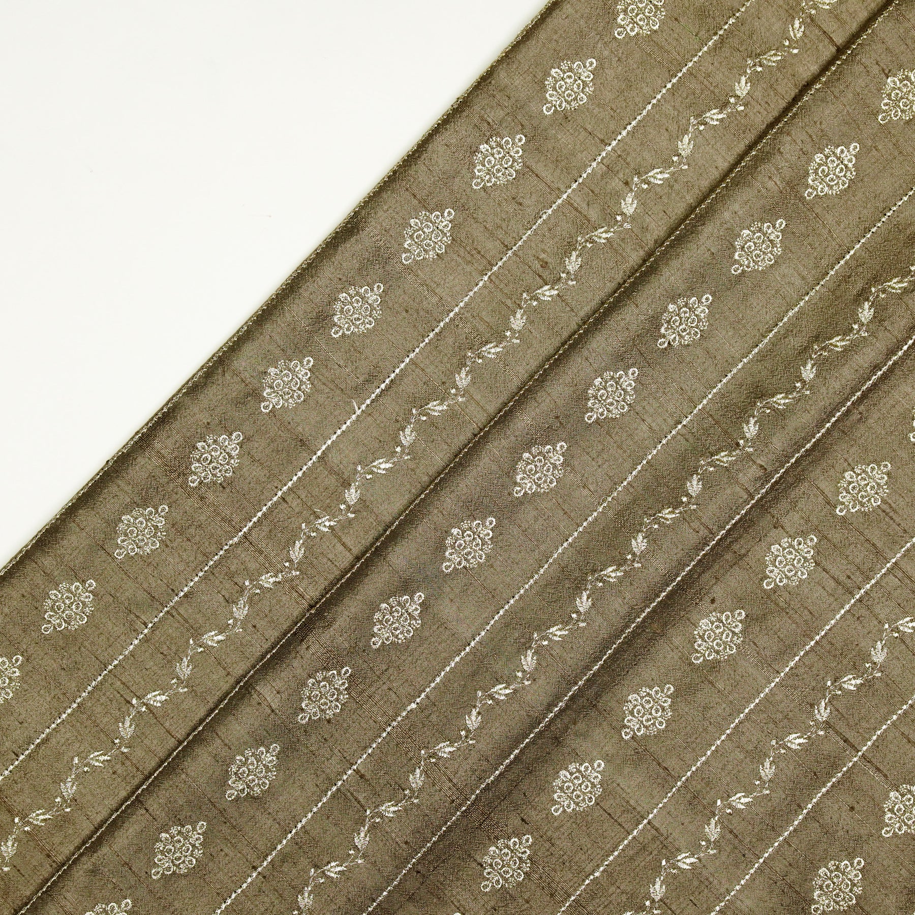 Akaar jaal on Mouse Raw Silk Embroidered Fabric