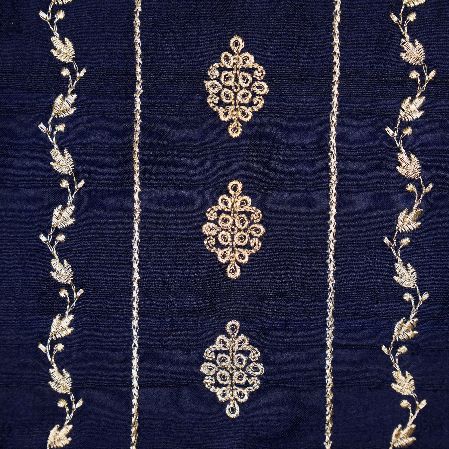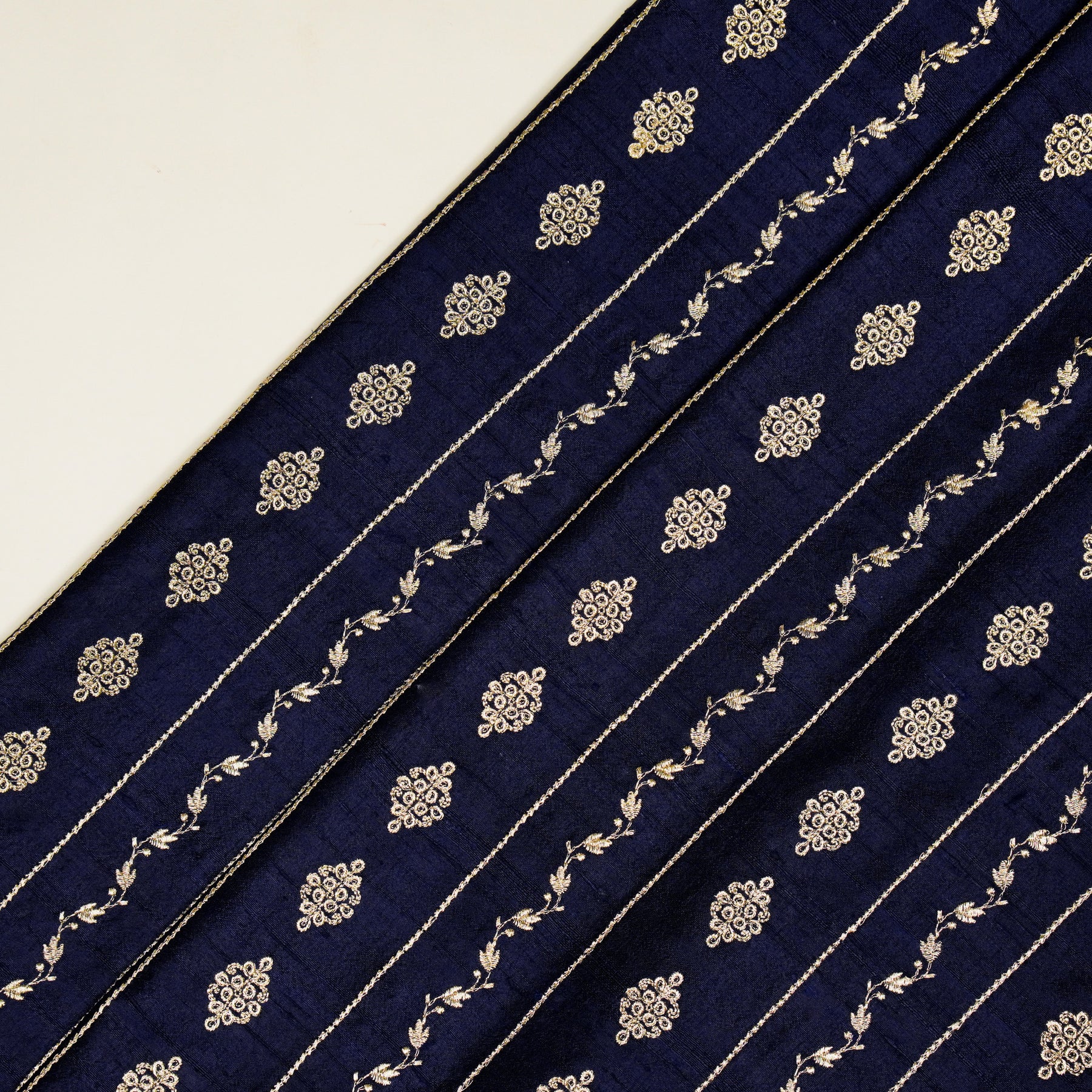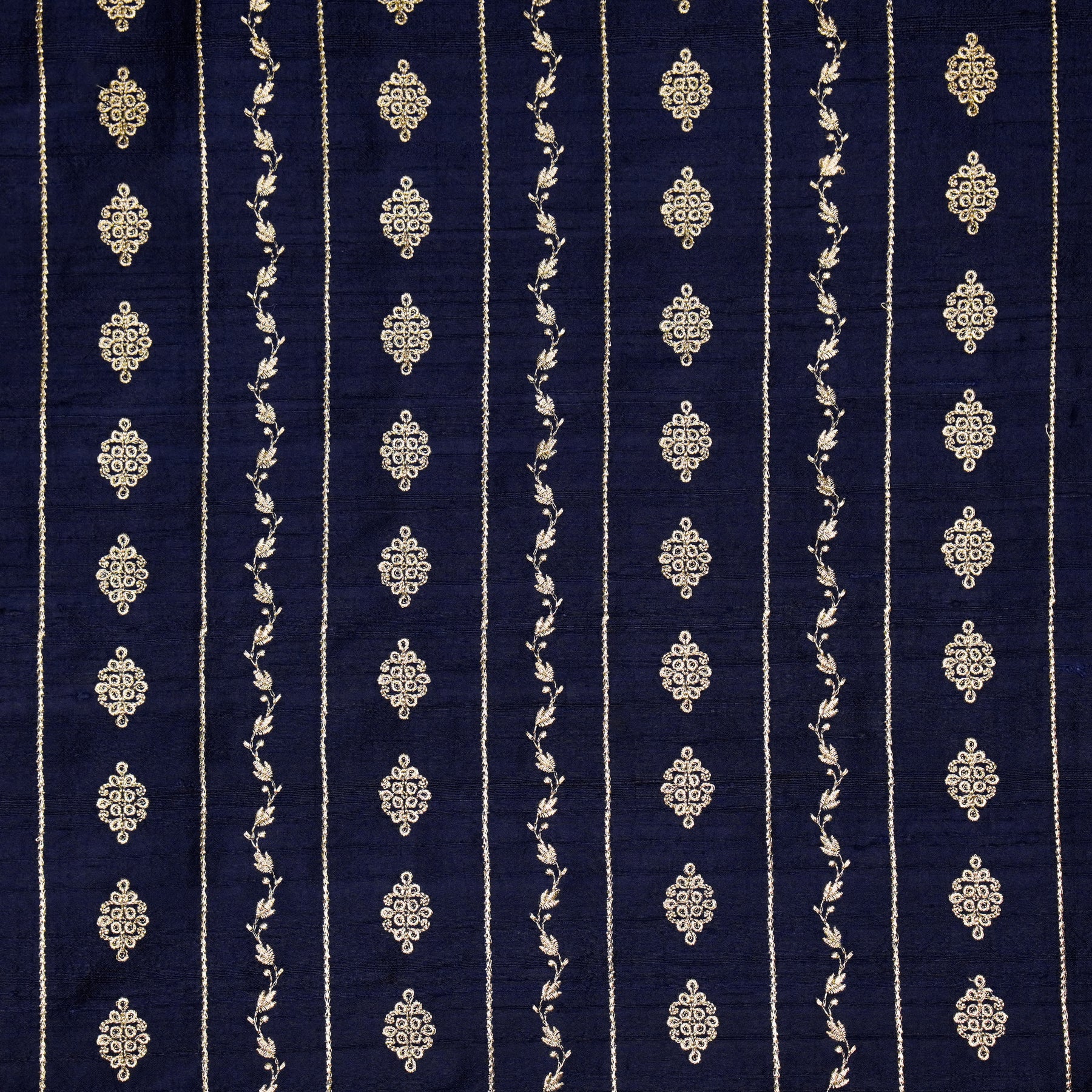 Akaar jaal on Navy Blue Raw Silk Embroidered Fabric