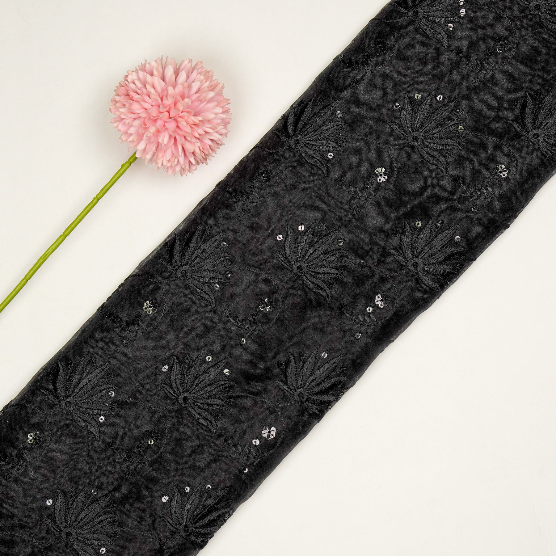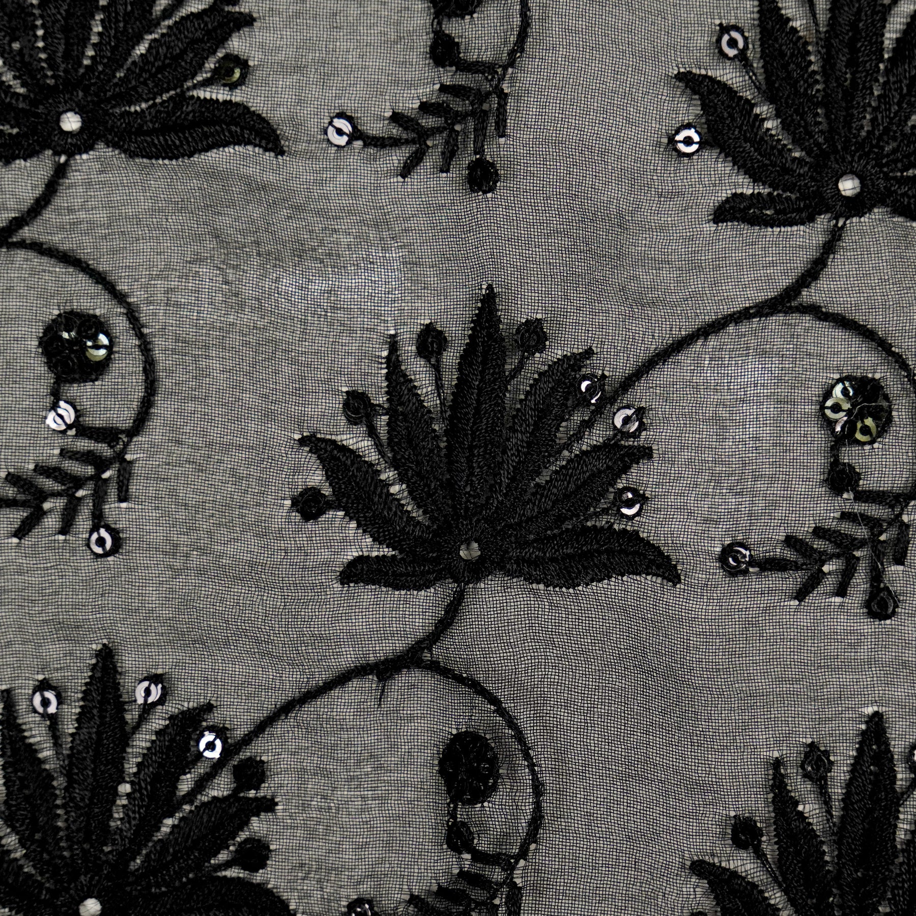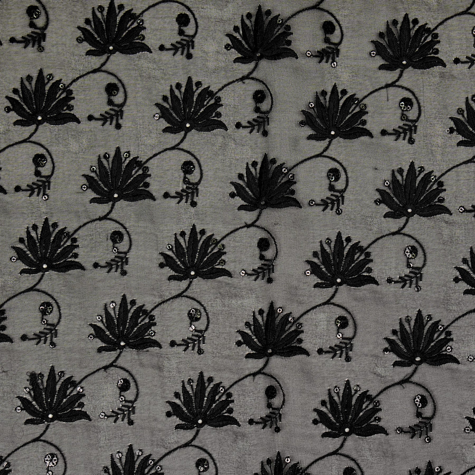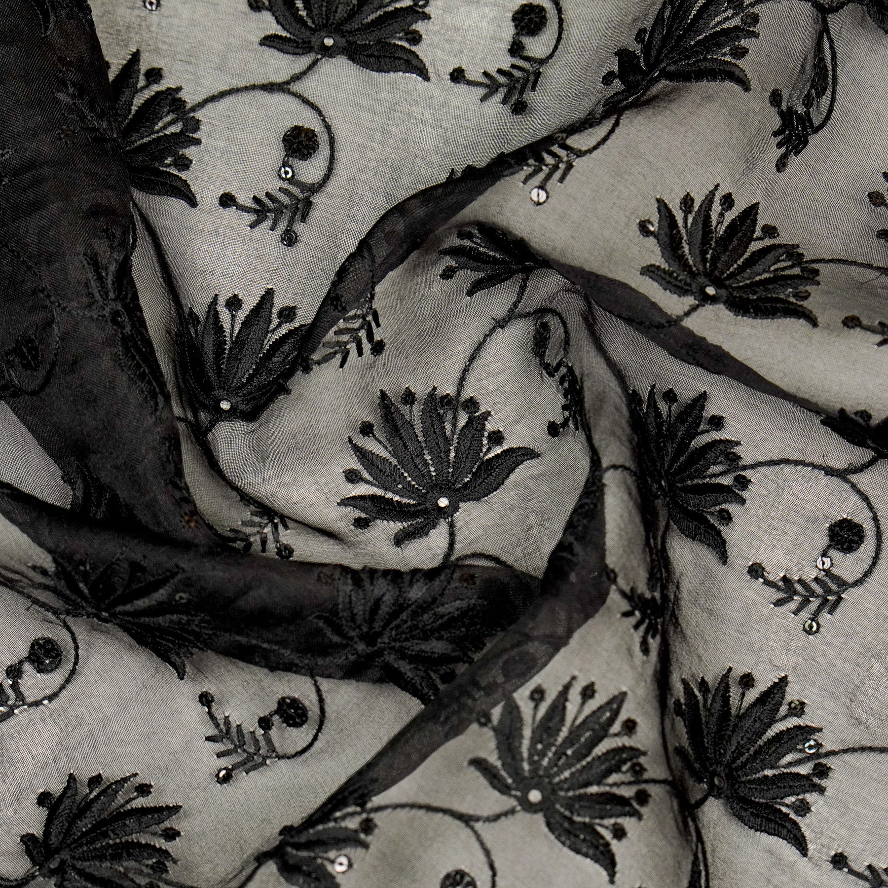Kaaya Jaal on Black Silk Organza Embroidered Fabric