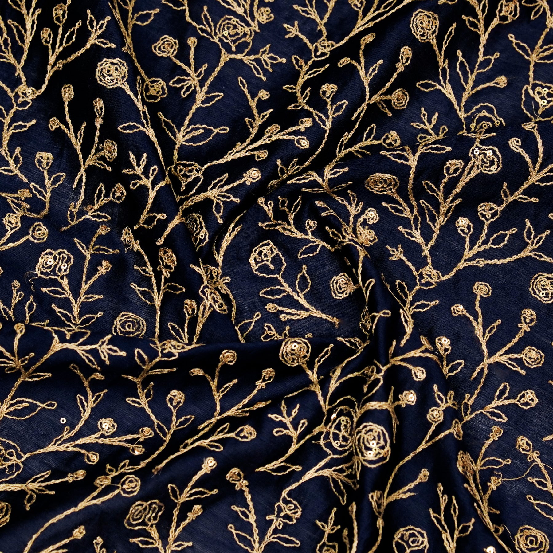 Aseel Jaal on Navy Blue Silk Chanderi Embroidered Fabric