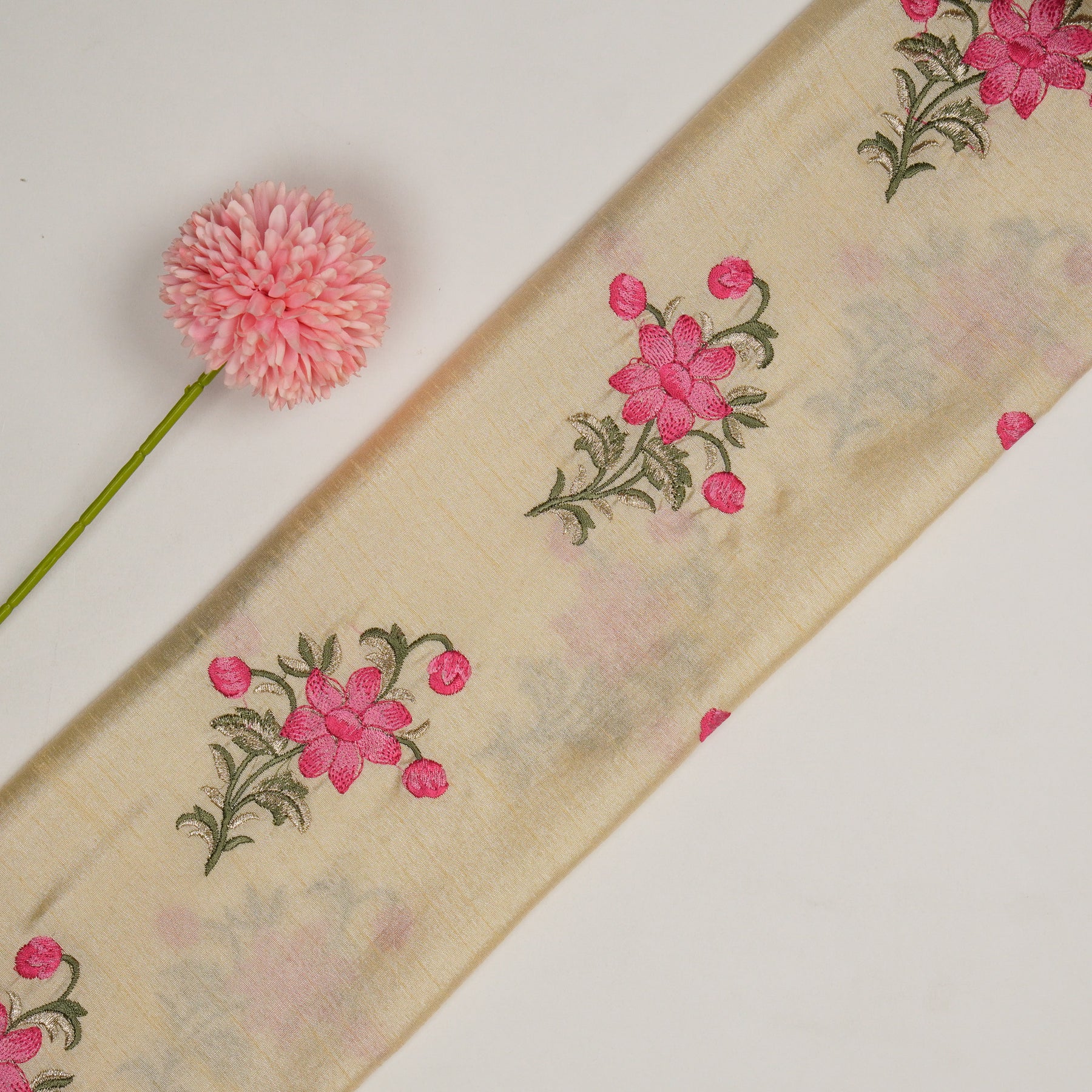 Dalia Buta on Cream Dola Silk Embroidered Fabric