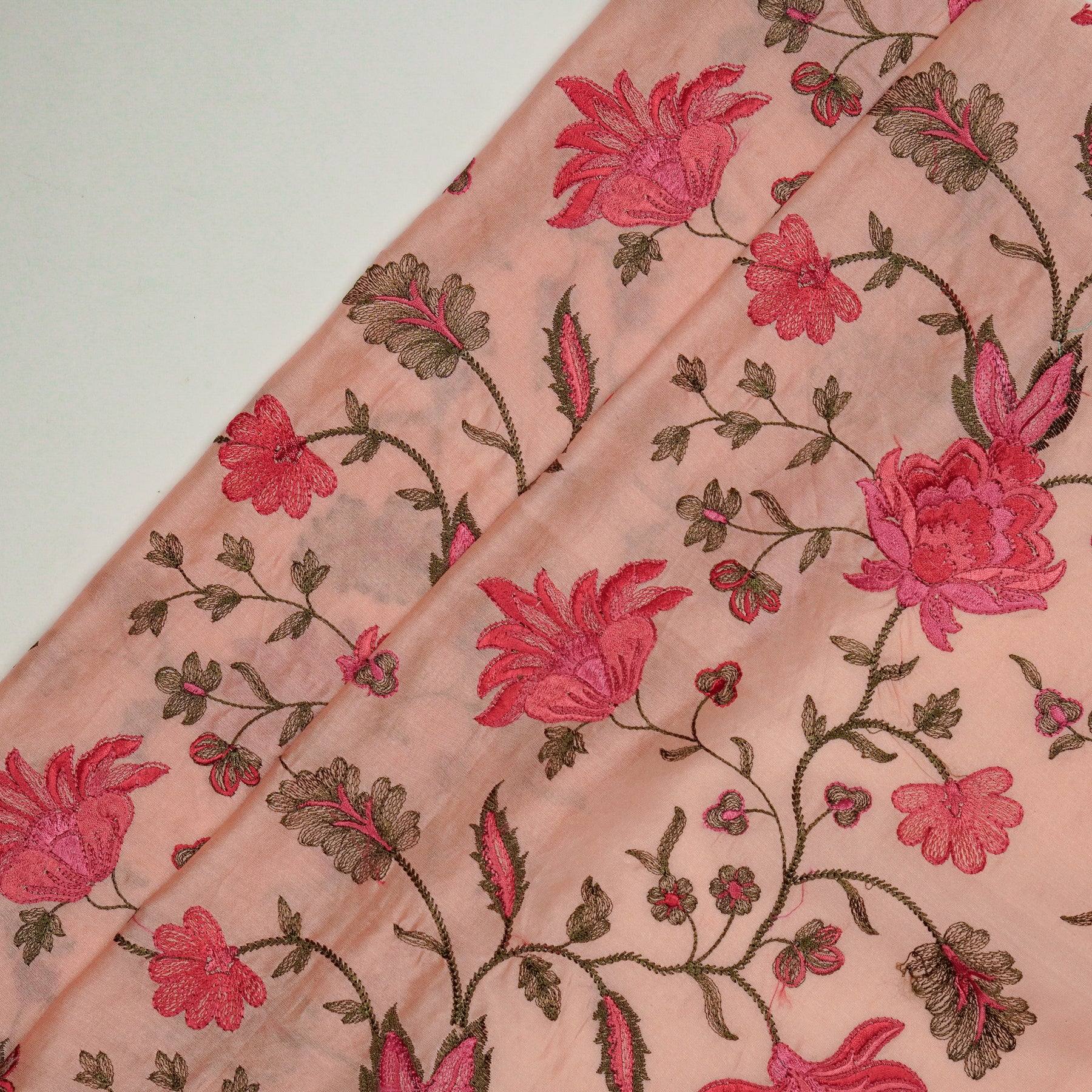 Derya Jaal on Light Peach Luxe Silk Chanderi Embroidered Fabric
