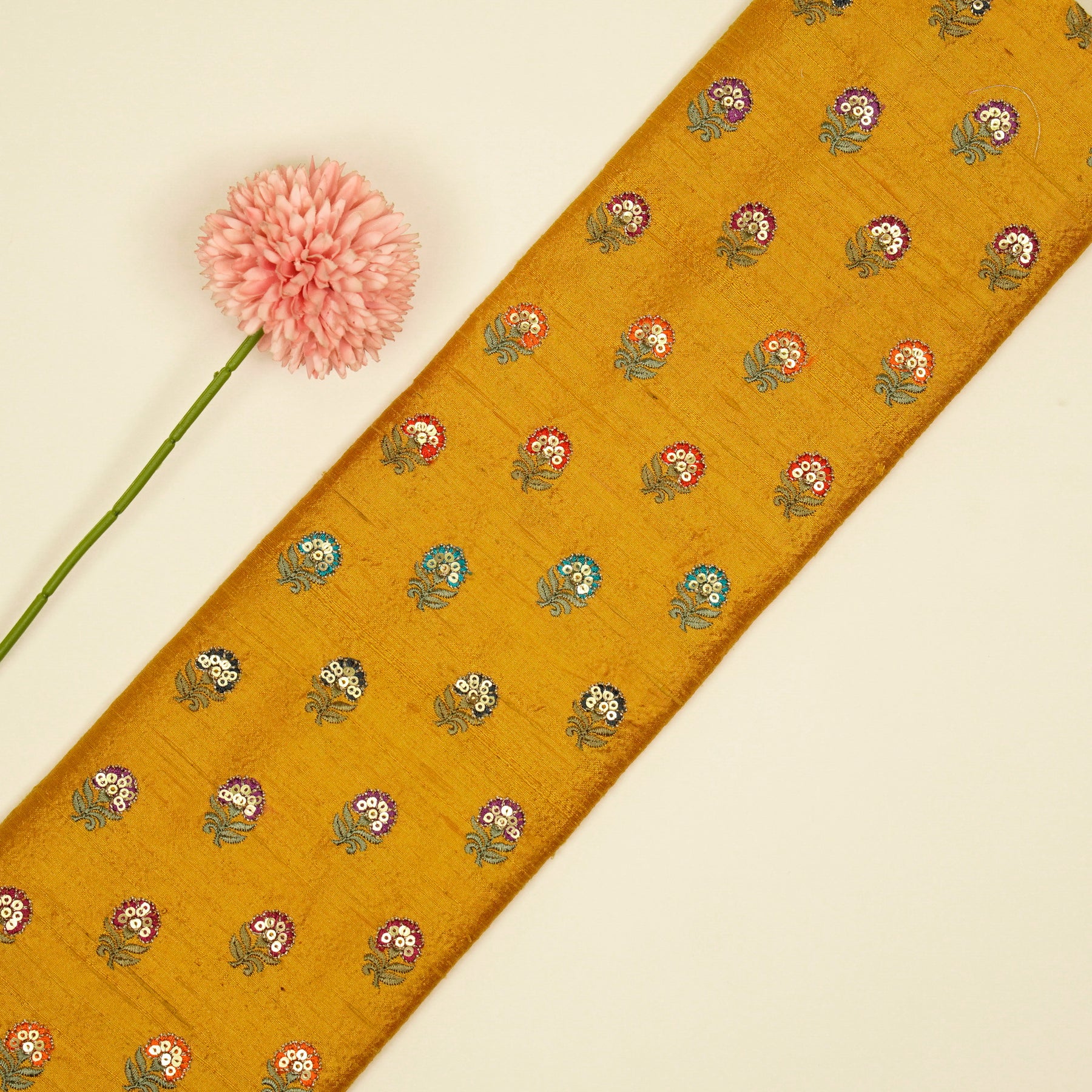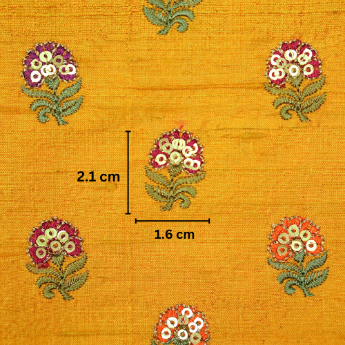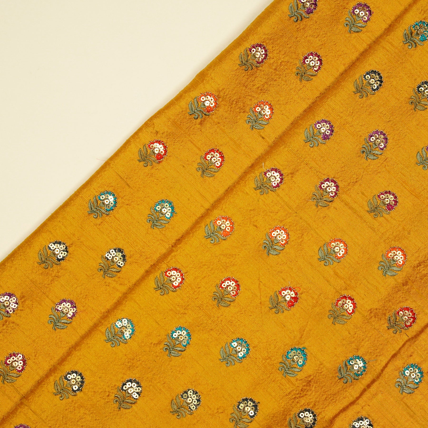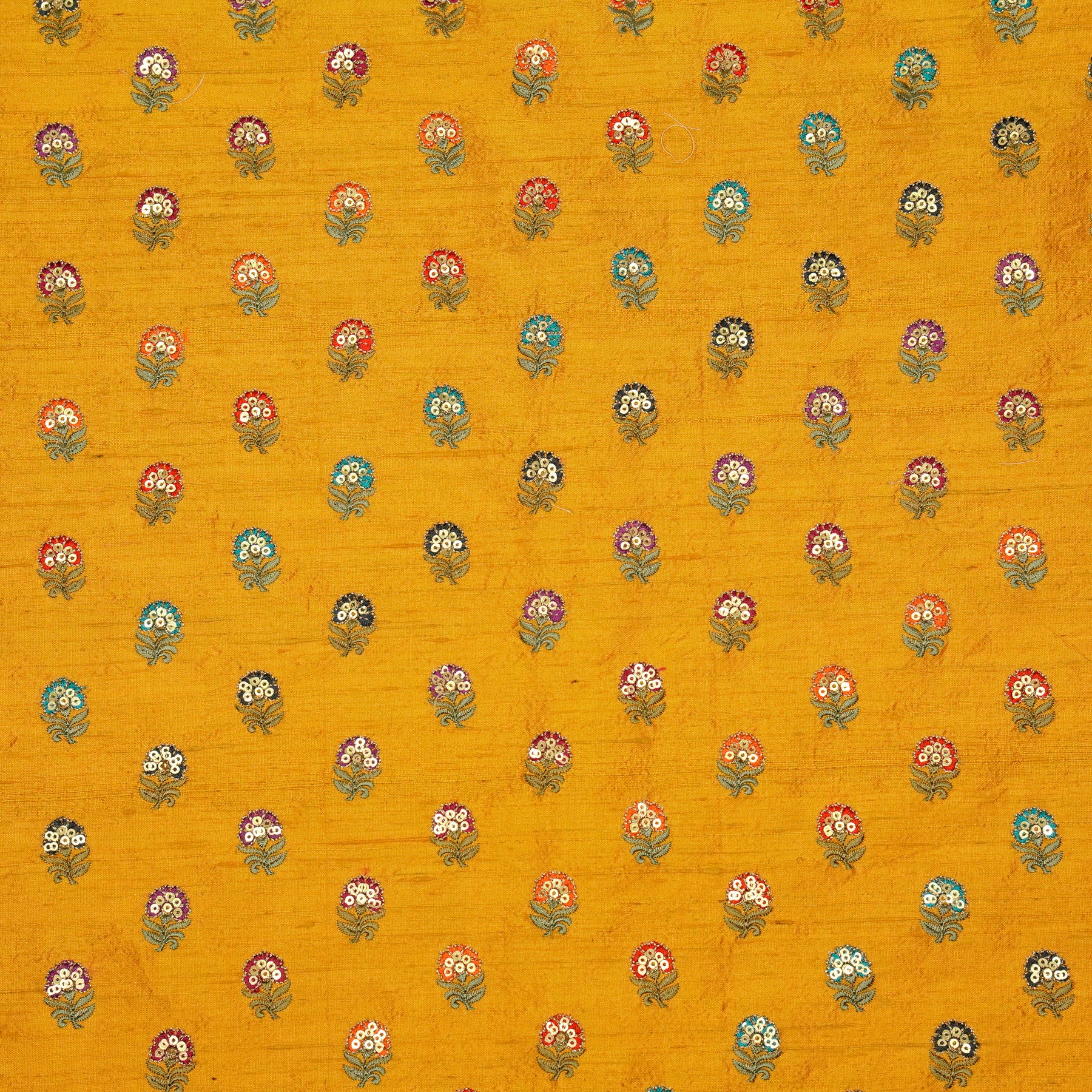 Gulfi Buti on Gold Raw Silk Embroidered Fabric