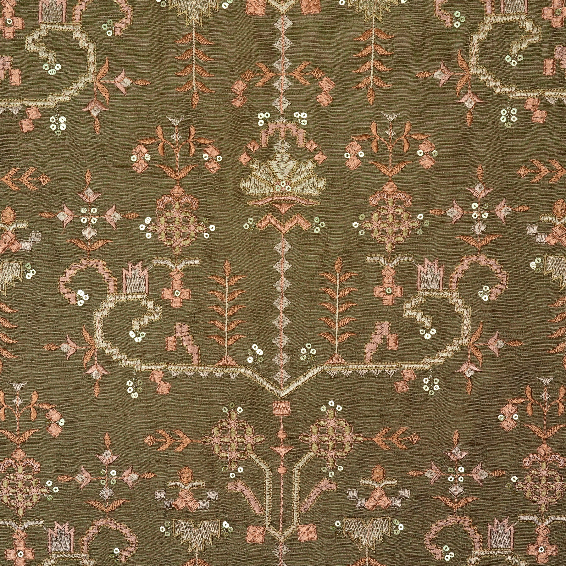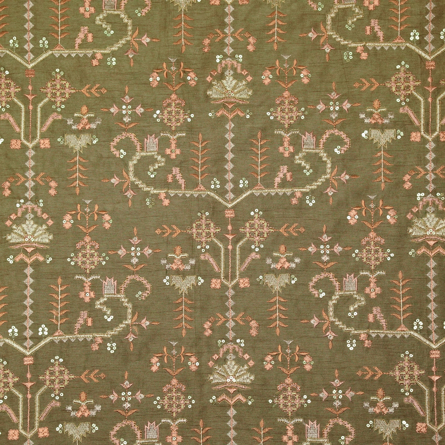 ilaaya Jaal on Mouse Semi Raw Silk Embroidered Fabric