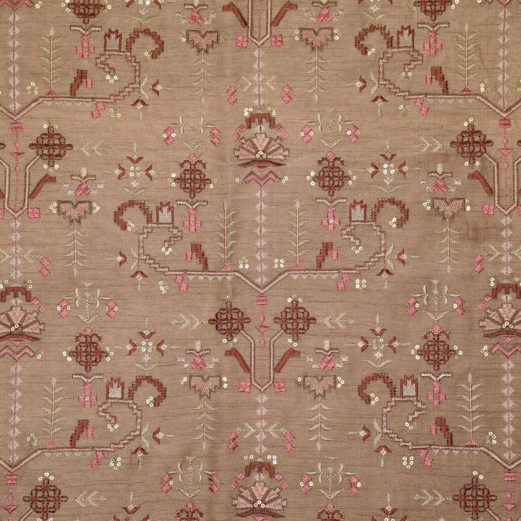ilaaya Jaal on Onion Semi Raw Silk Embroidered Fabric