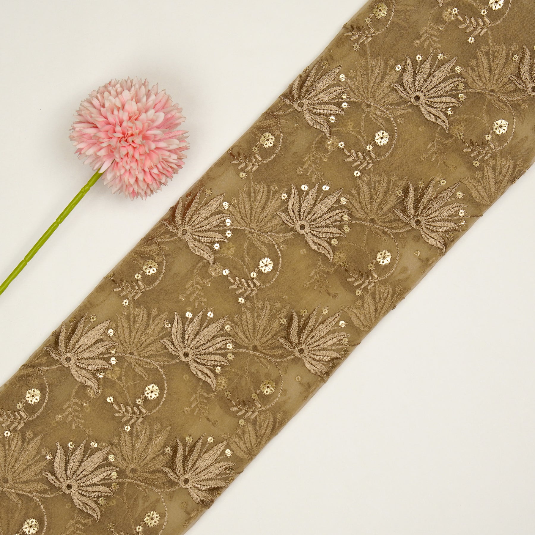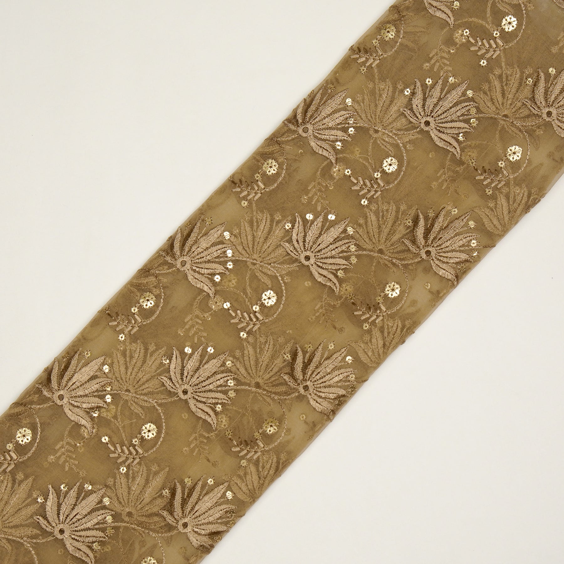 Kaaya Jaal on Chiku Silk Organza Embroidered Fabric