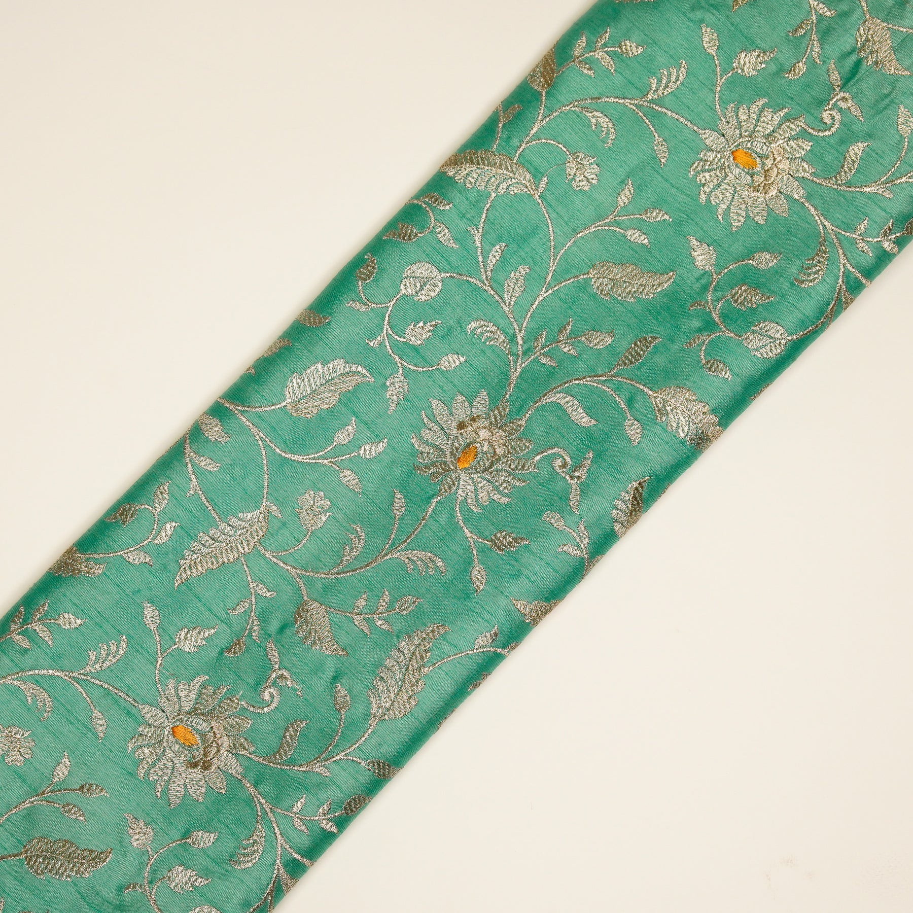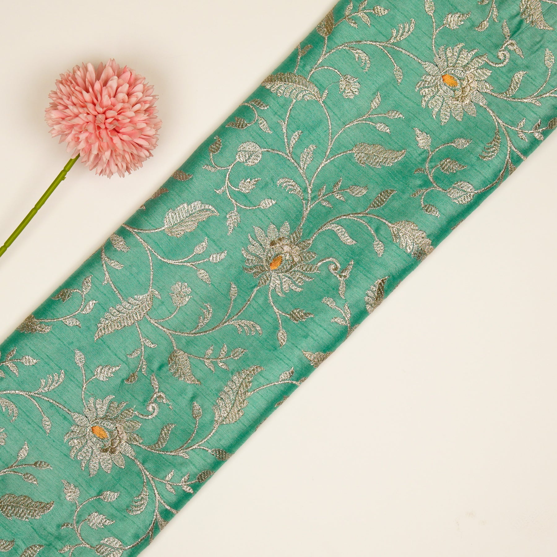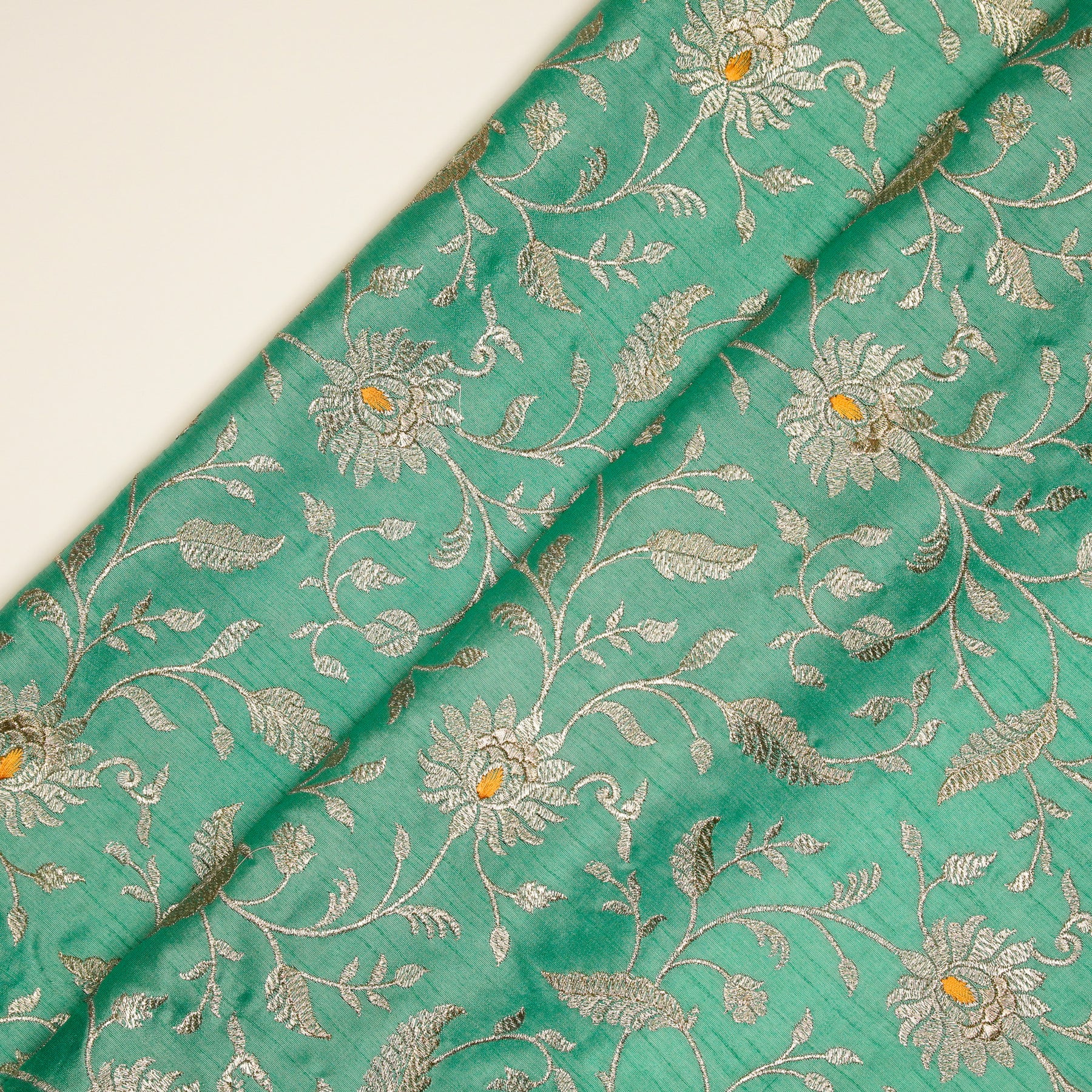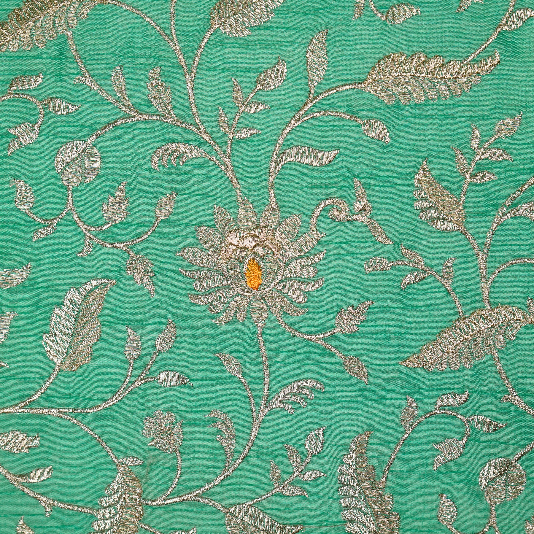 Kanira Jaal on Aqua Dola Silk Embroidered Fabric