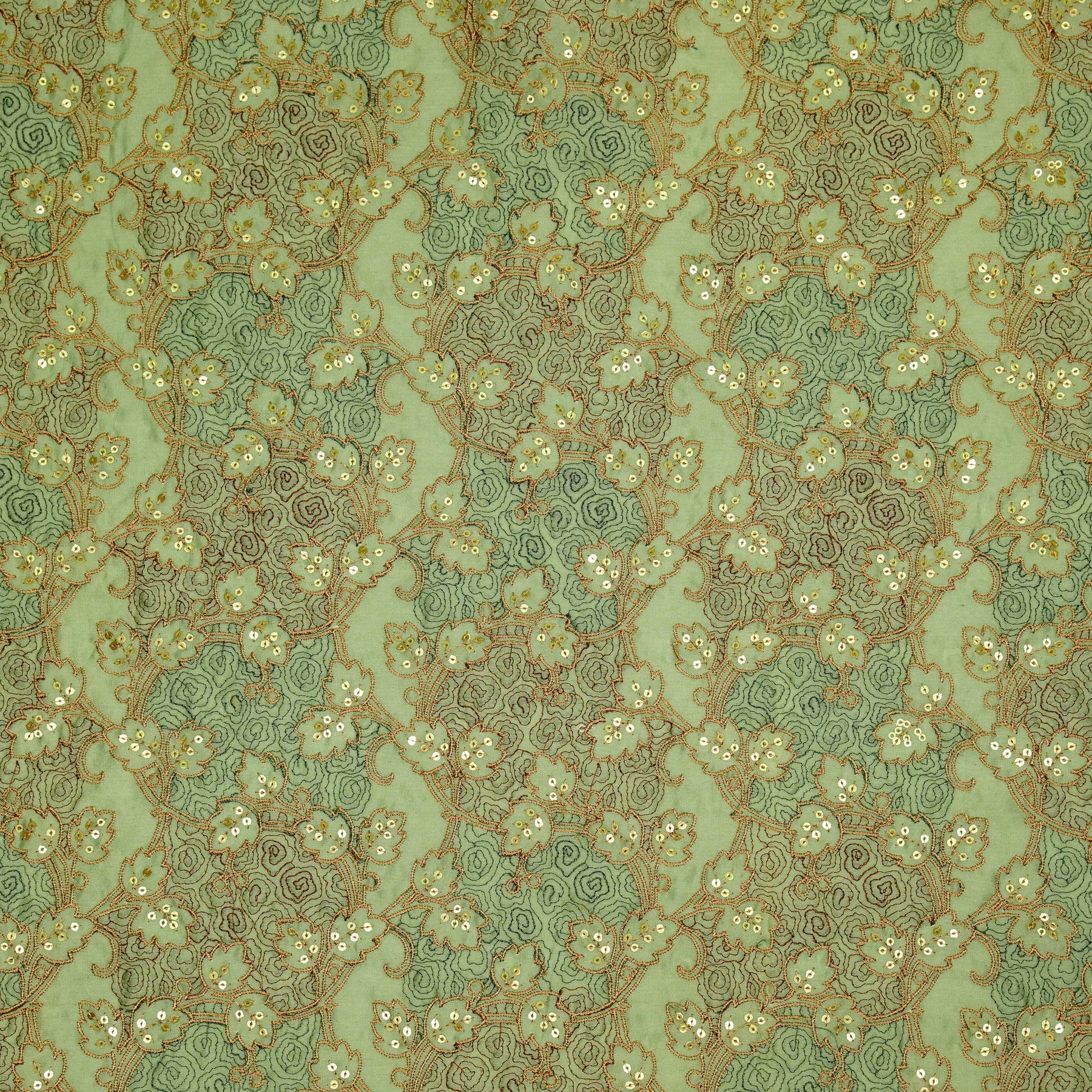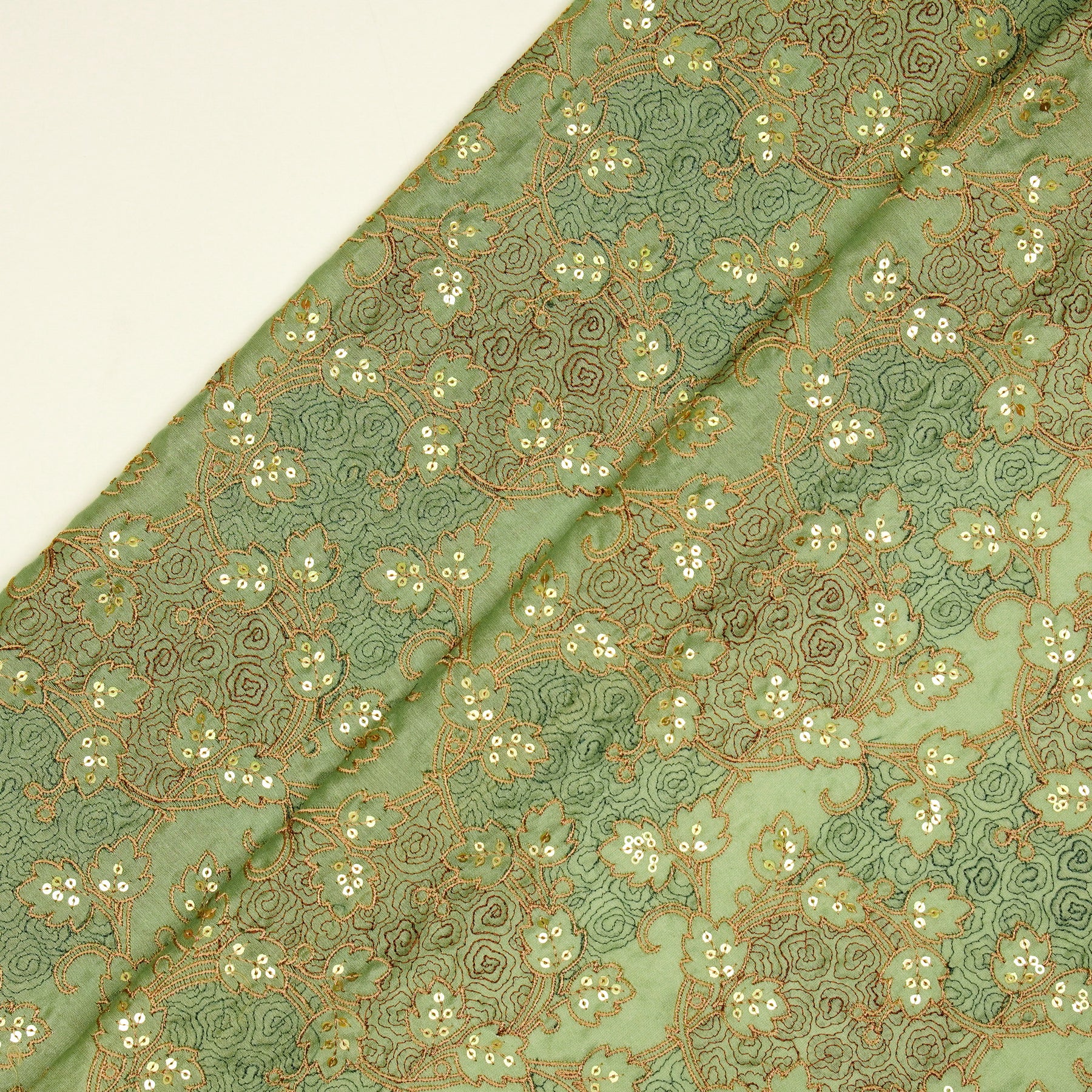 Kashida Jaal on Teal Luxe Silk Chanderi Embroidered Fabric