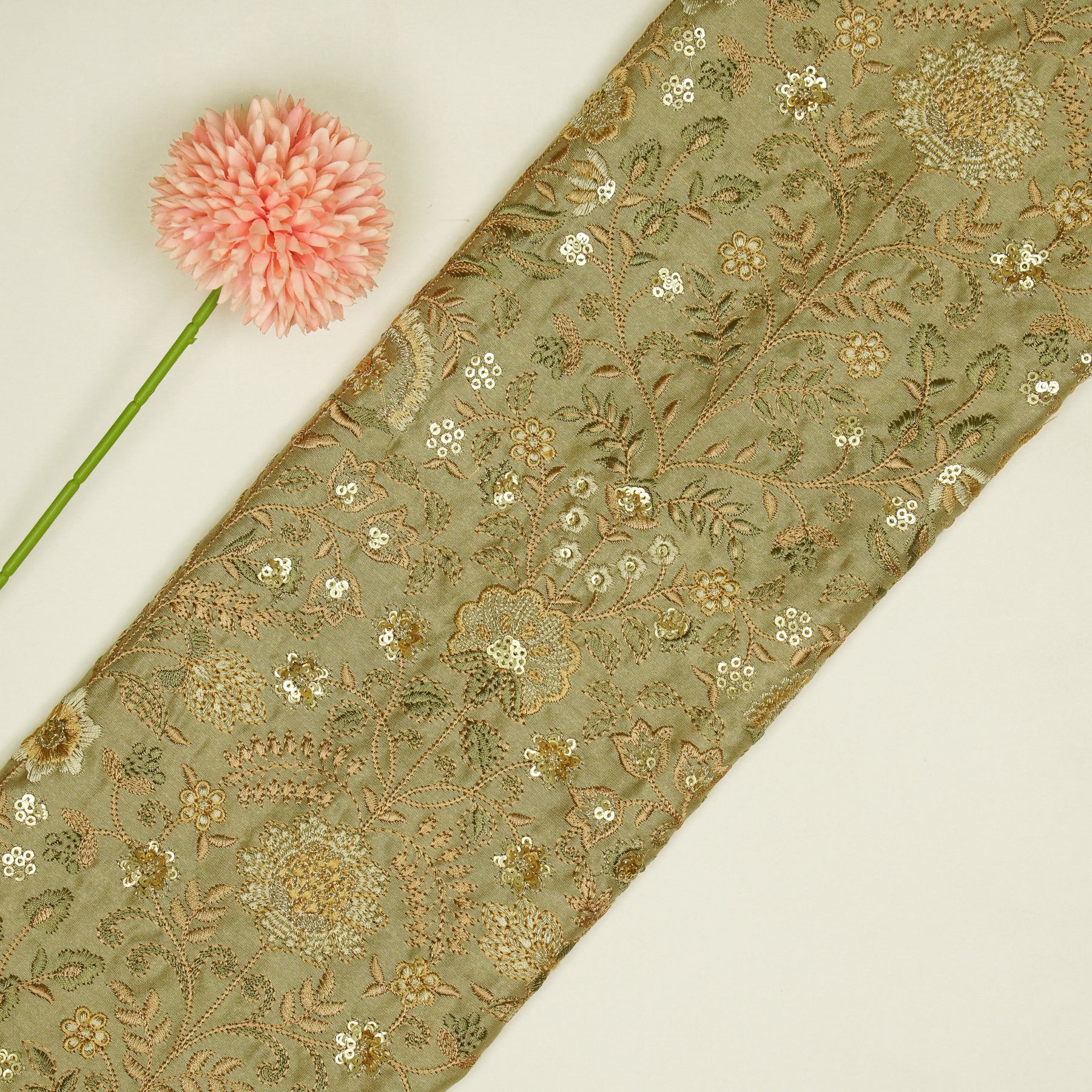 Lamya Jaal on Almond Semi Raw Silk Embroidered Fabric