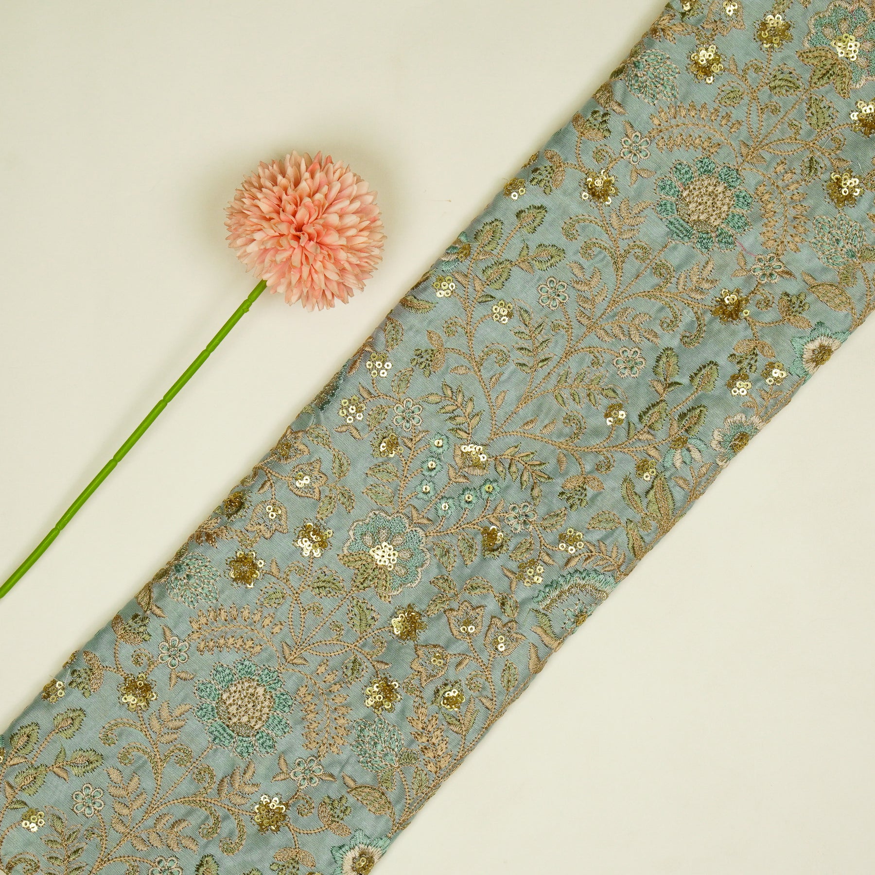 Lamya Jaal on Sky Blue Semi Raw Silk Embroidered Fabric