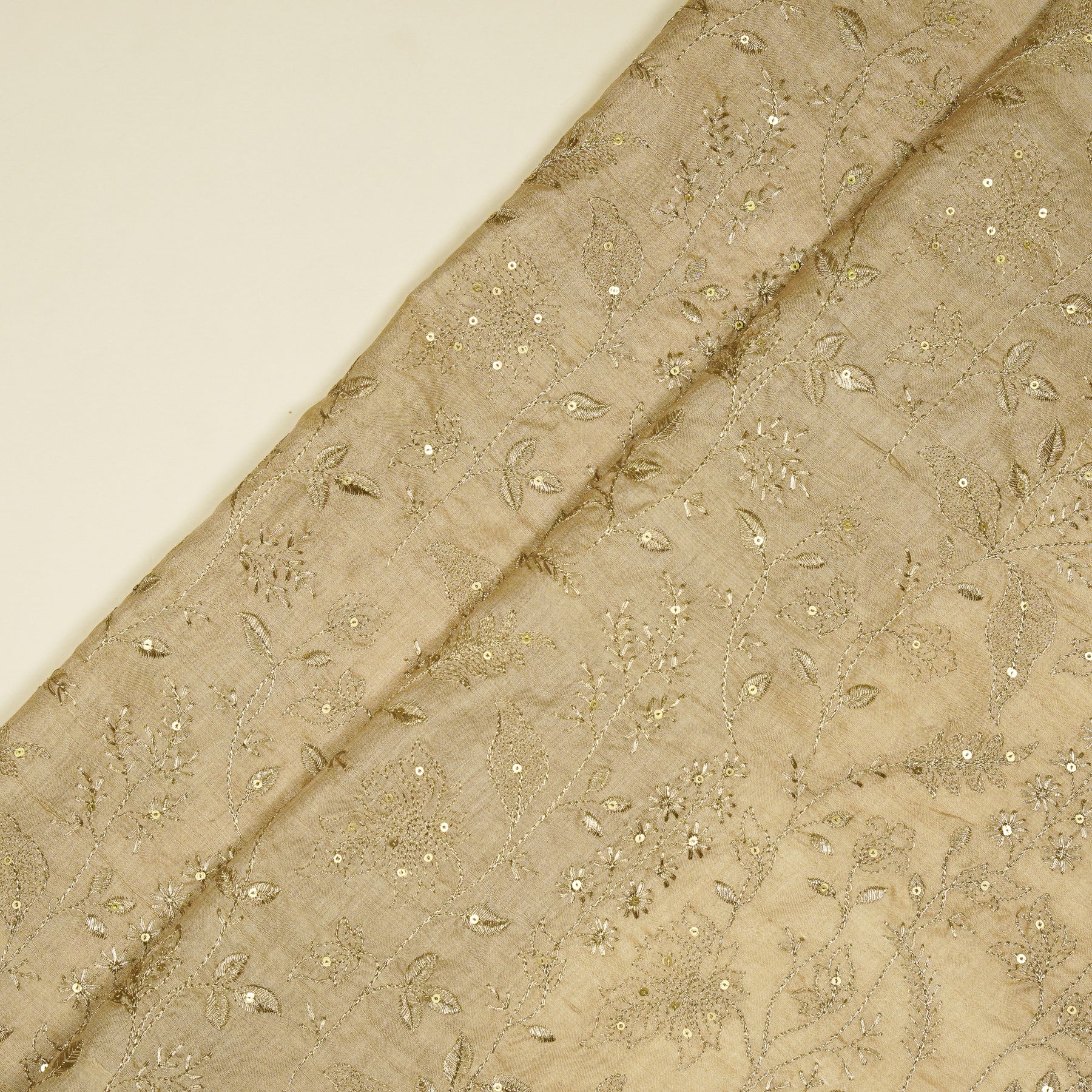 Maysa Jaal On Natural Tussar Silk Embroidered Fabric