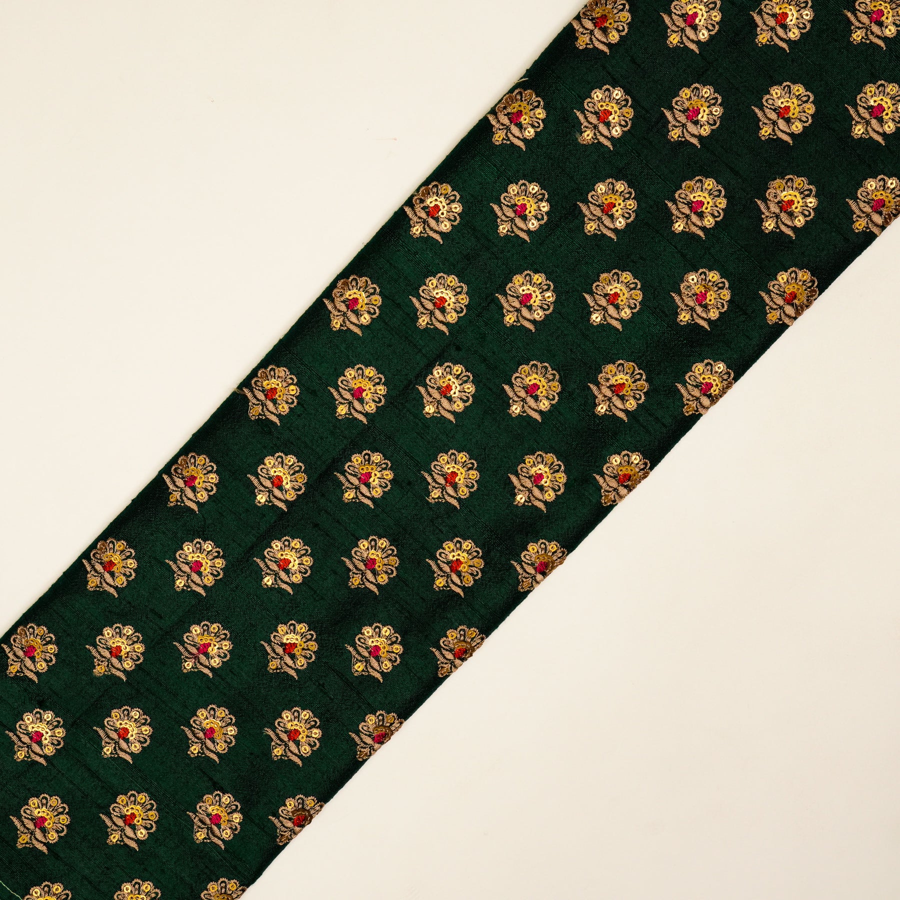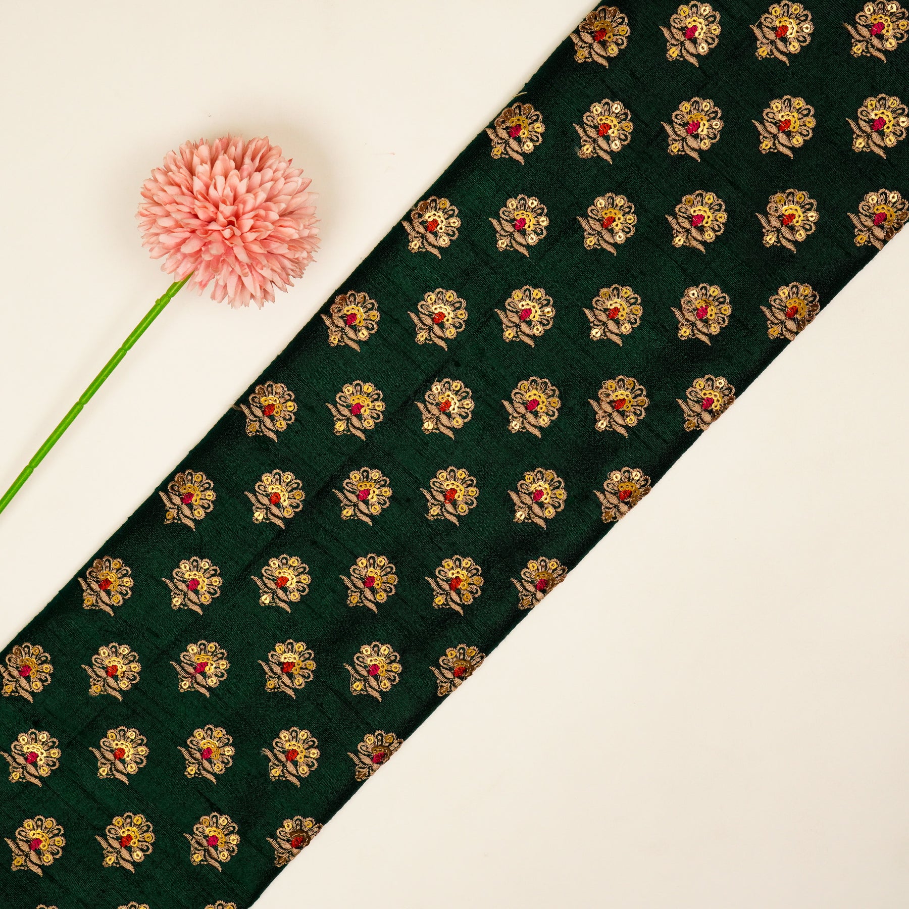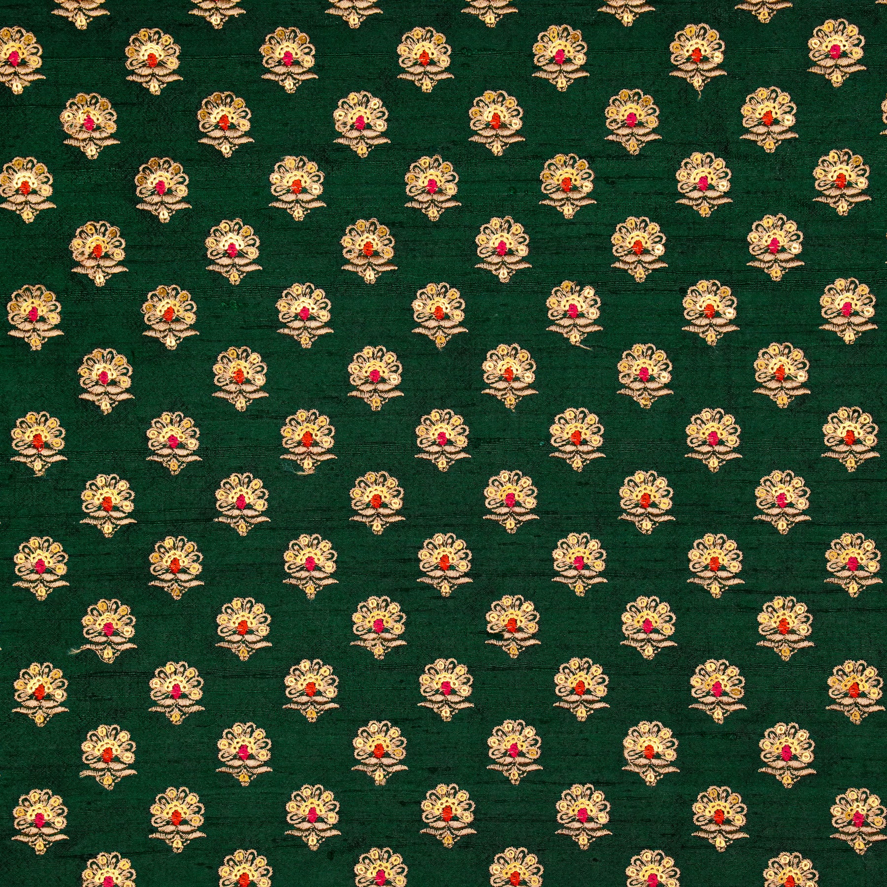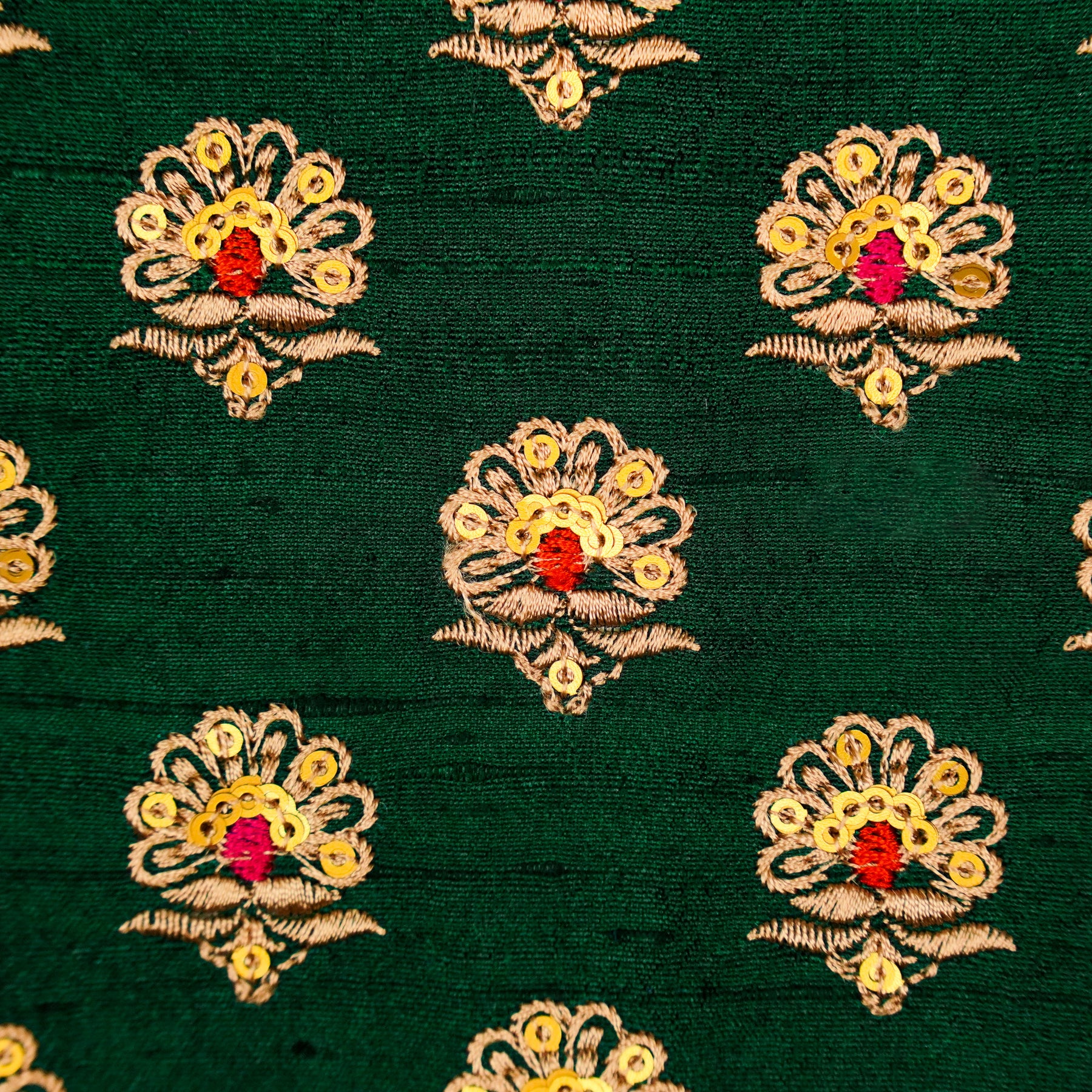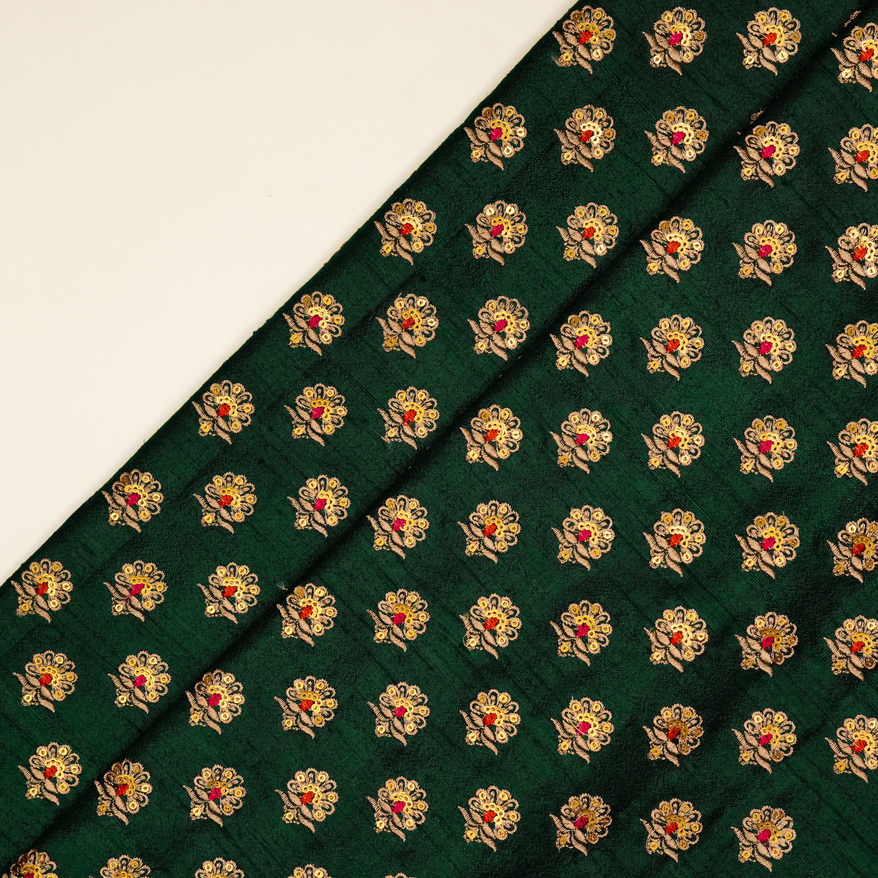 Muneer Buti on Bottle Green Raw Silk Embroidered Fabric