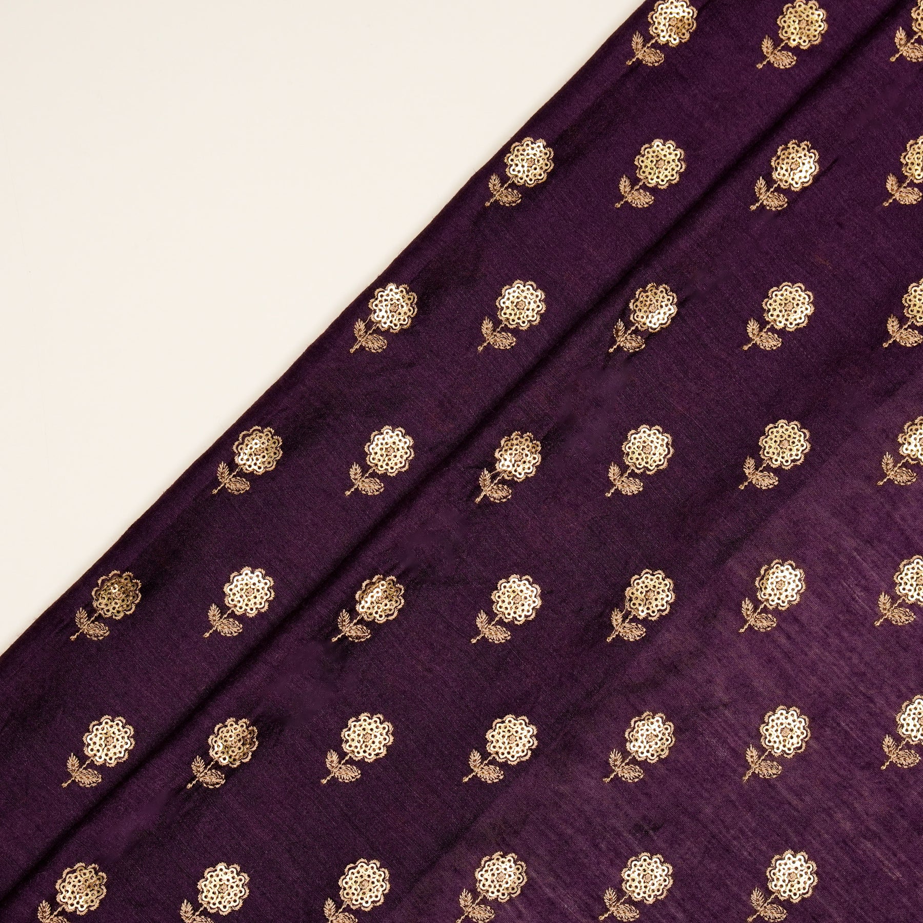 Ratrika Buti on Dark Purple Munga Silk Embroidered Fabric