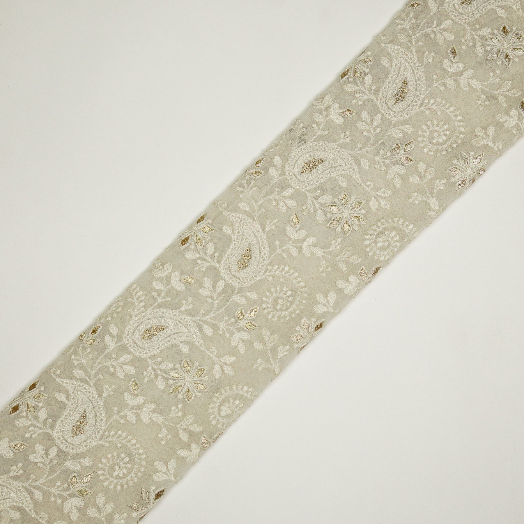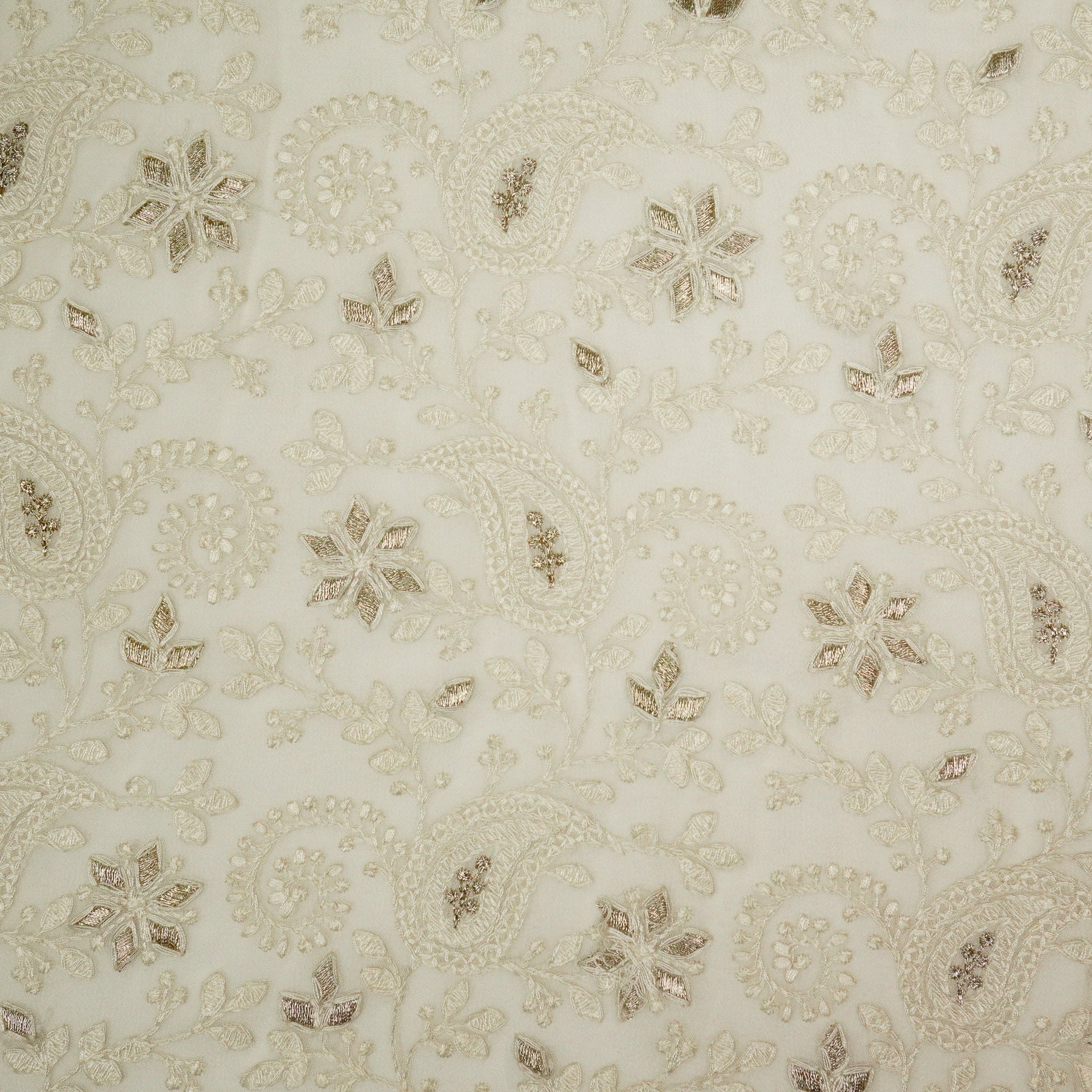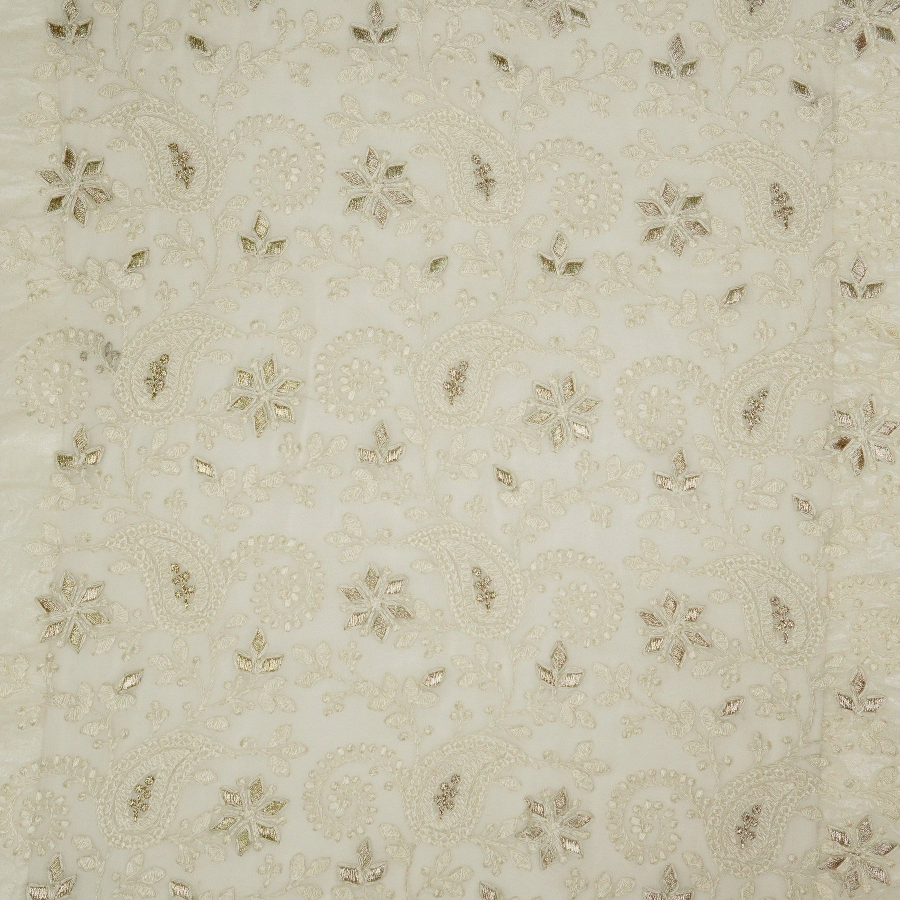 Nabila Jaal on Cream Semi Georgette Embroidered Fabric