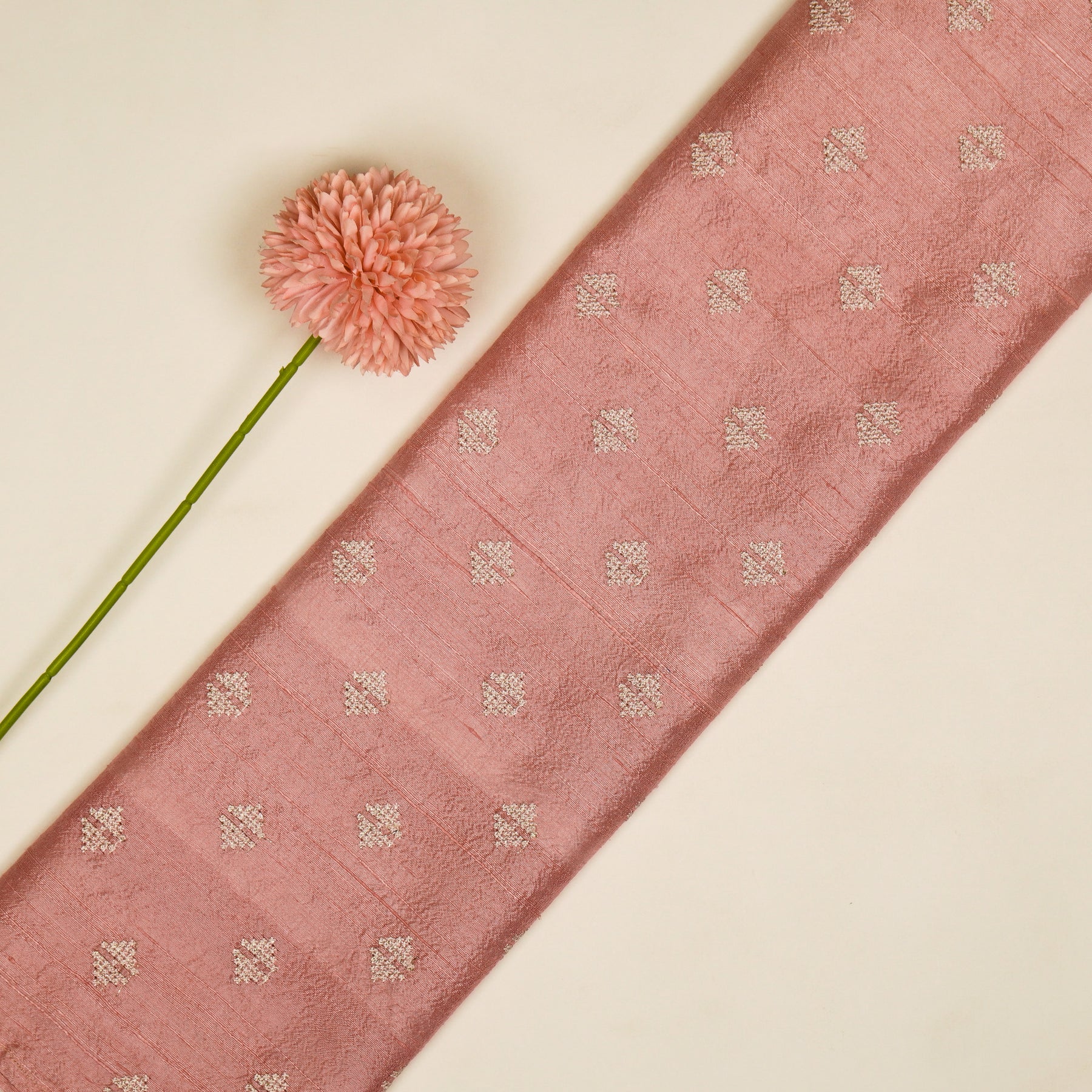 Naqsh Buti on Pink Raw Silk Embroidered Fabric