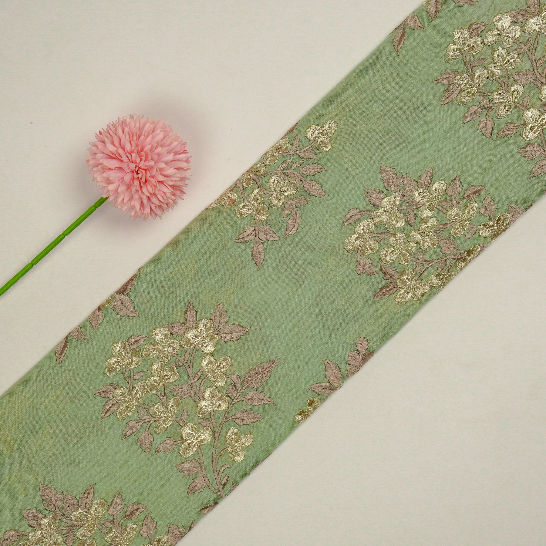 Nasrin Jaal on Sea Green Semi Chanderi Embroidered Fabric