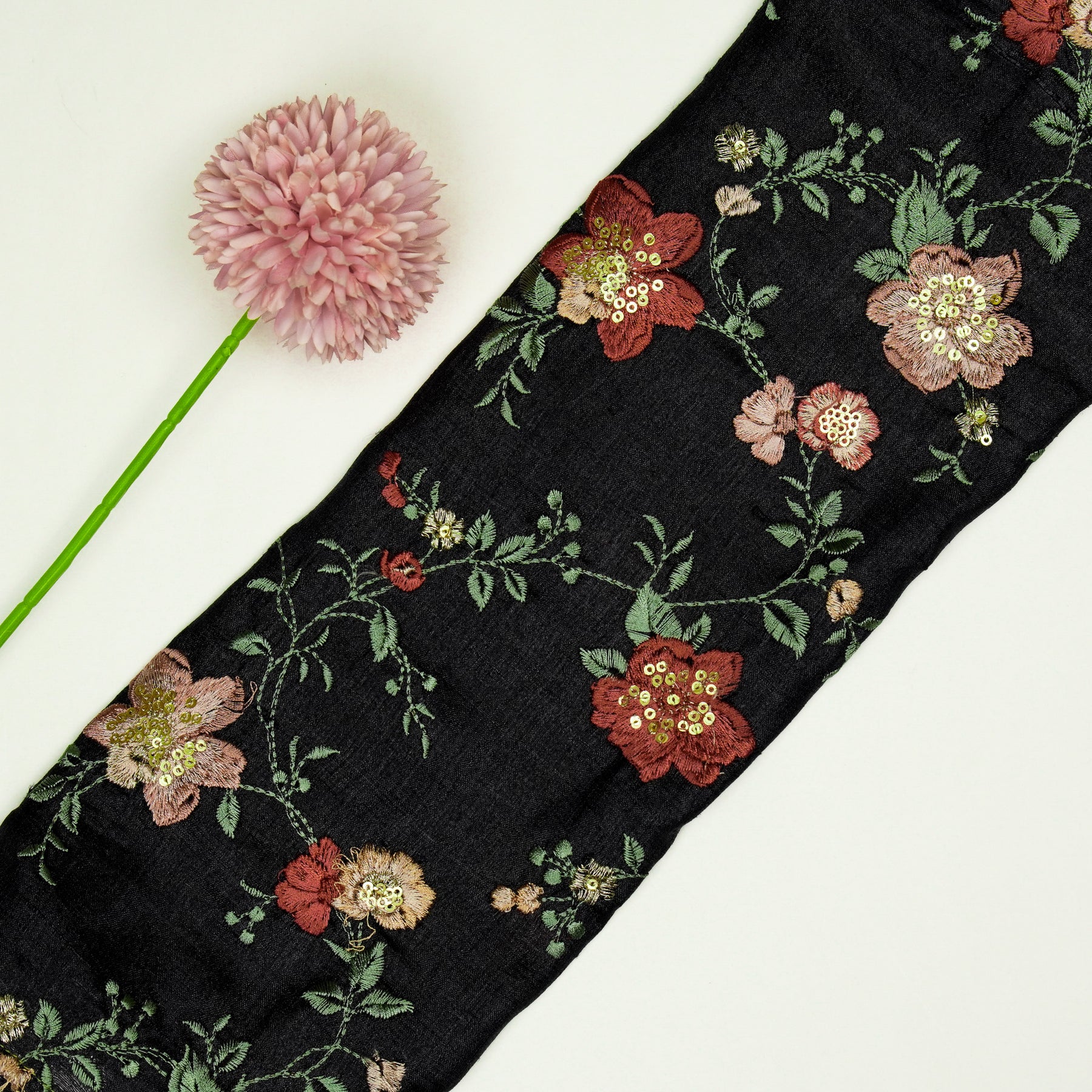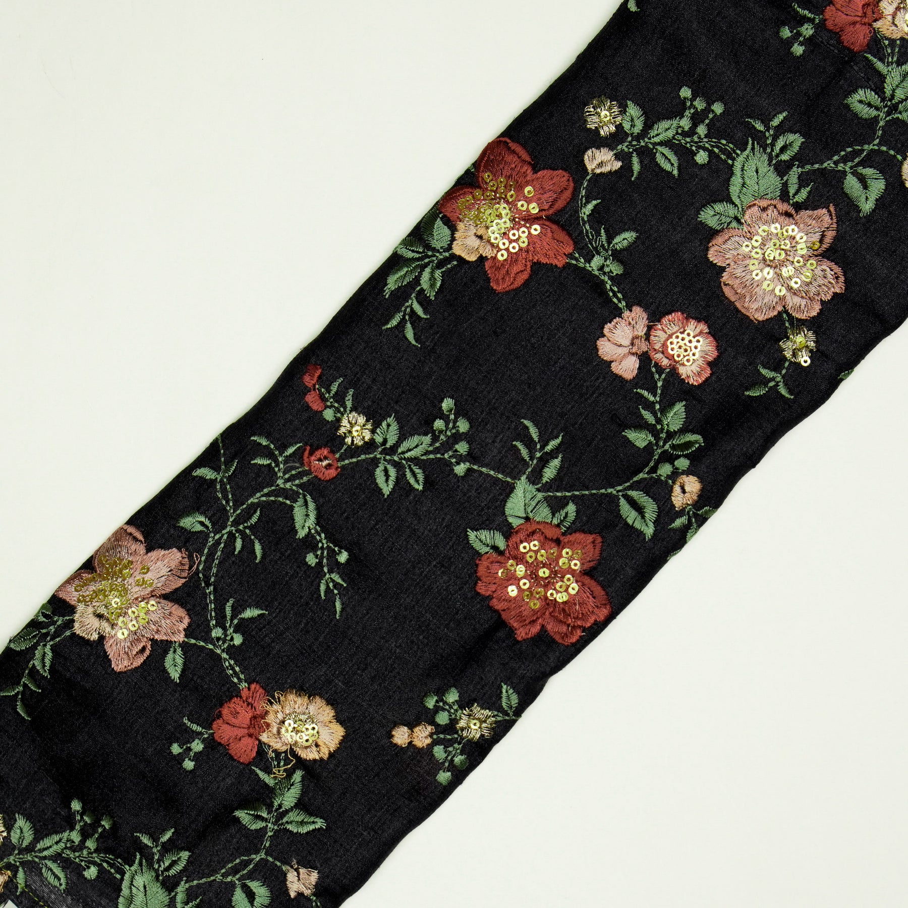 Rabab Jaal On Black Tussar Silk Embroidered Fabric