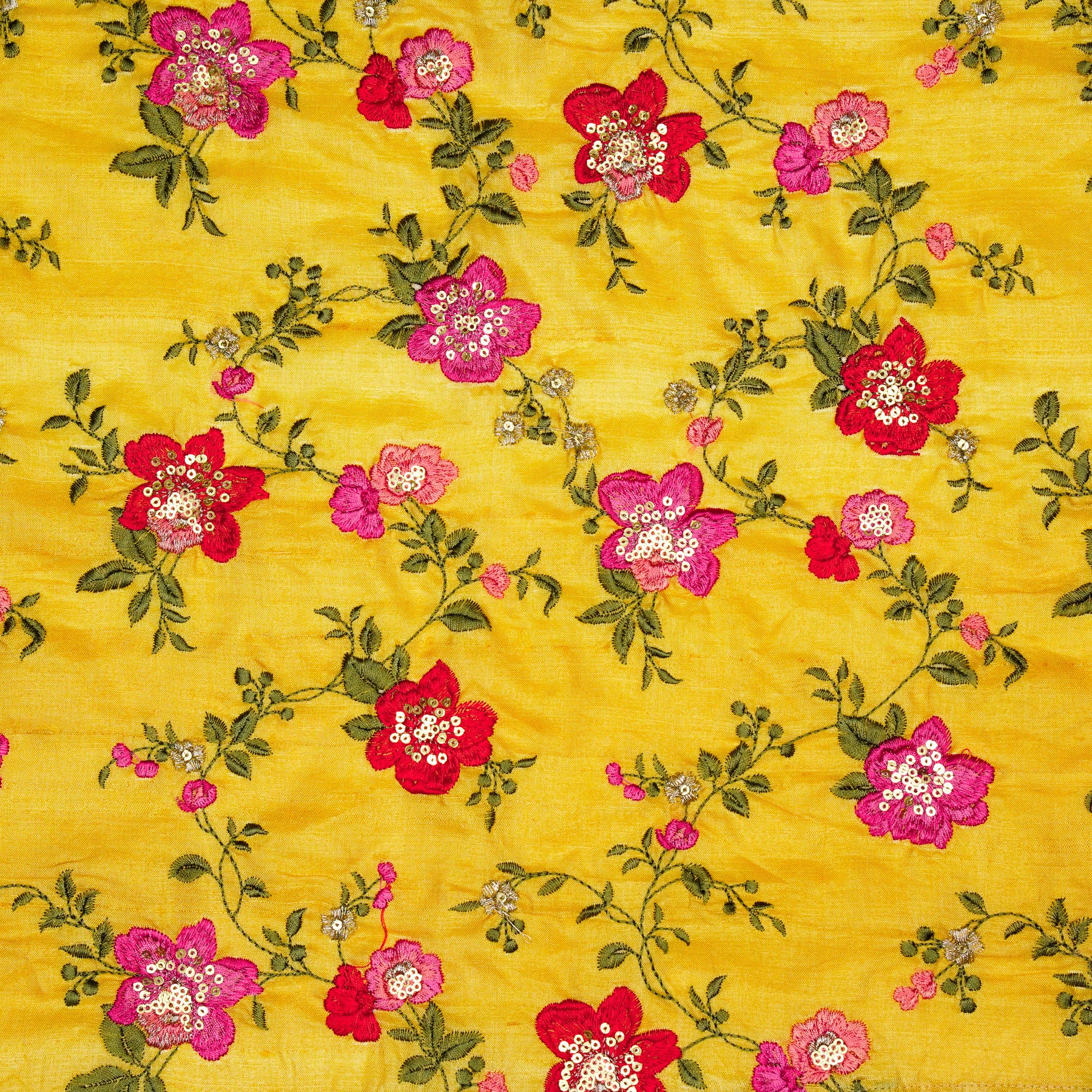 Rabab Jaal On Gold Tussar Silk Embroidered Fabric