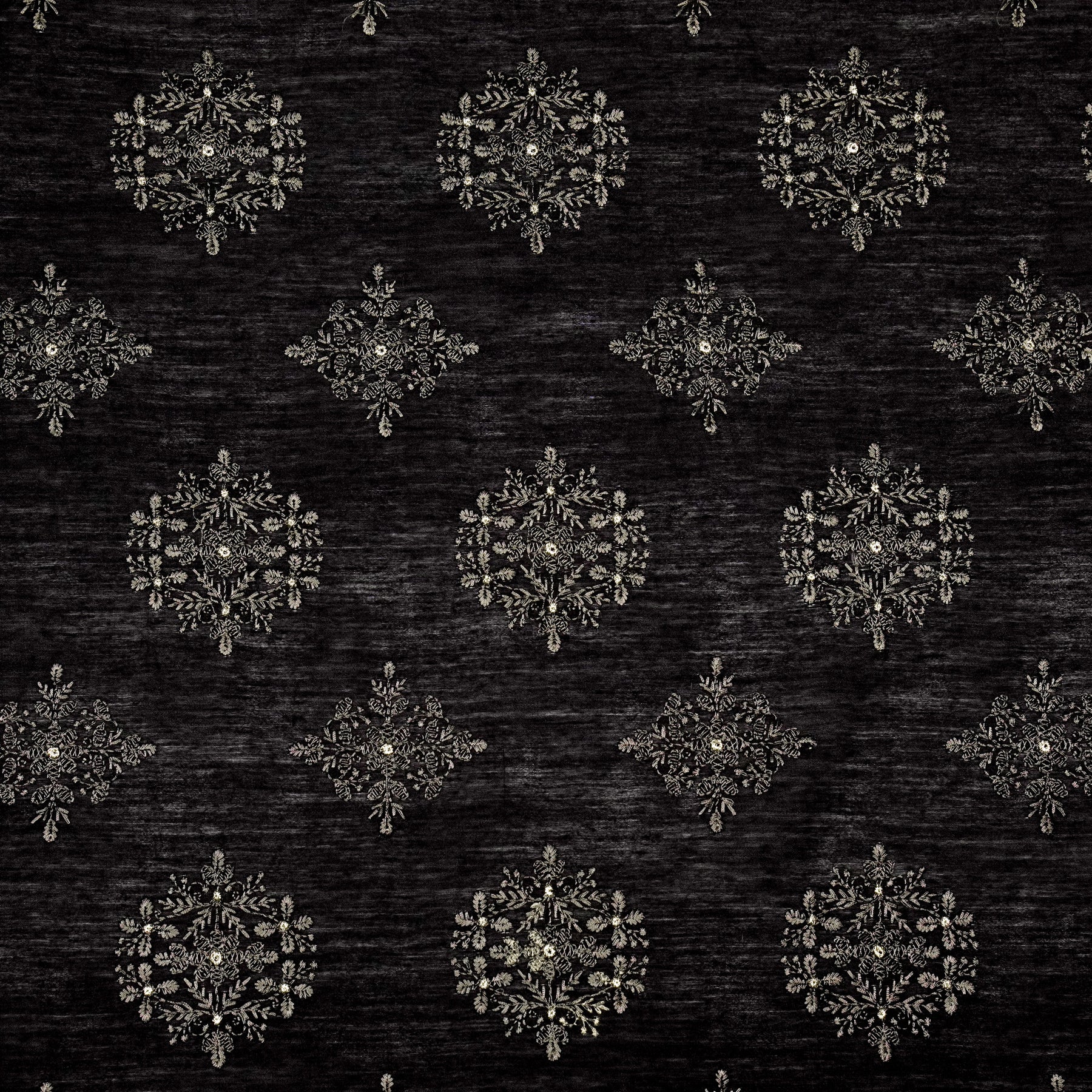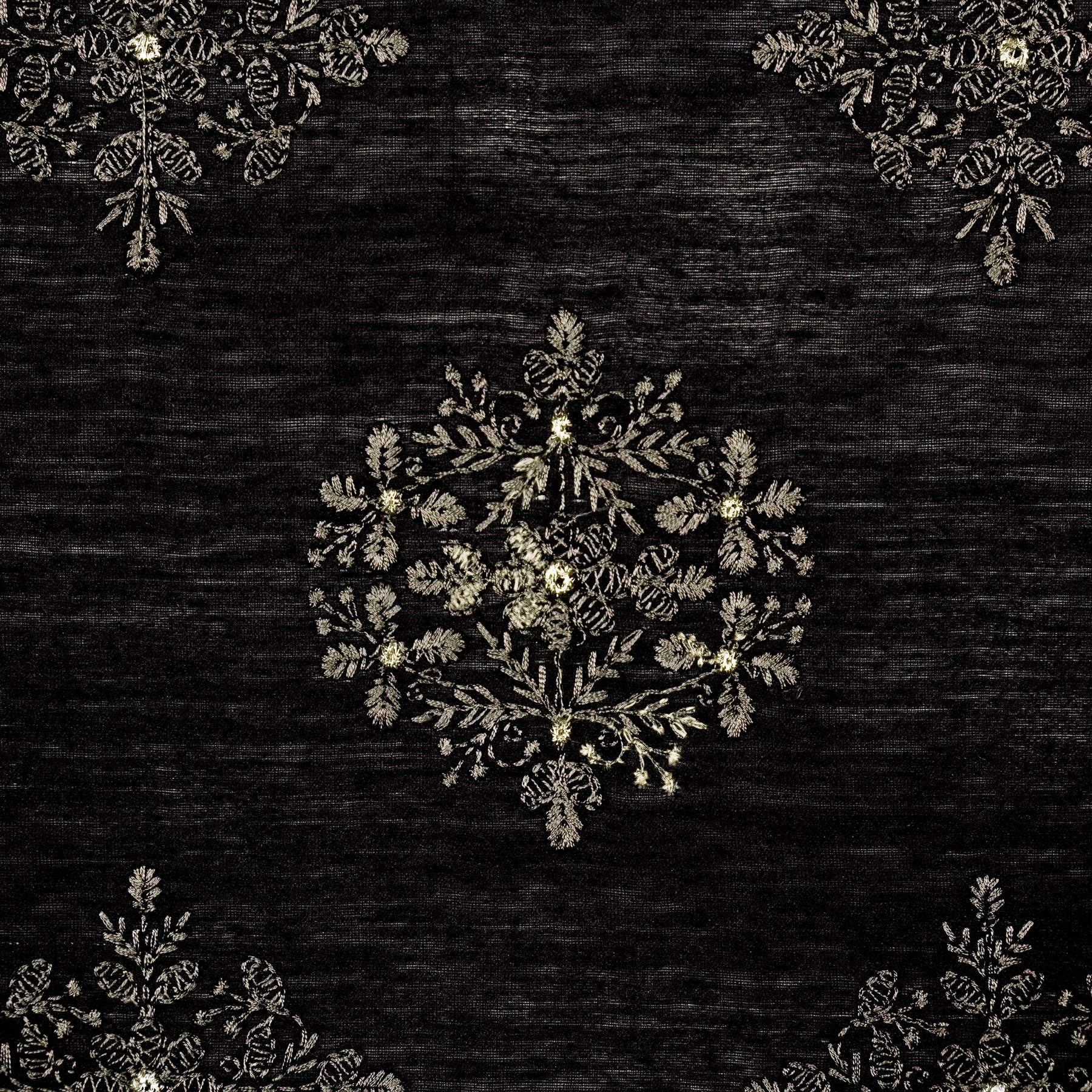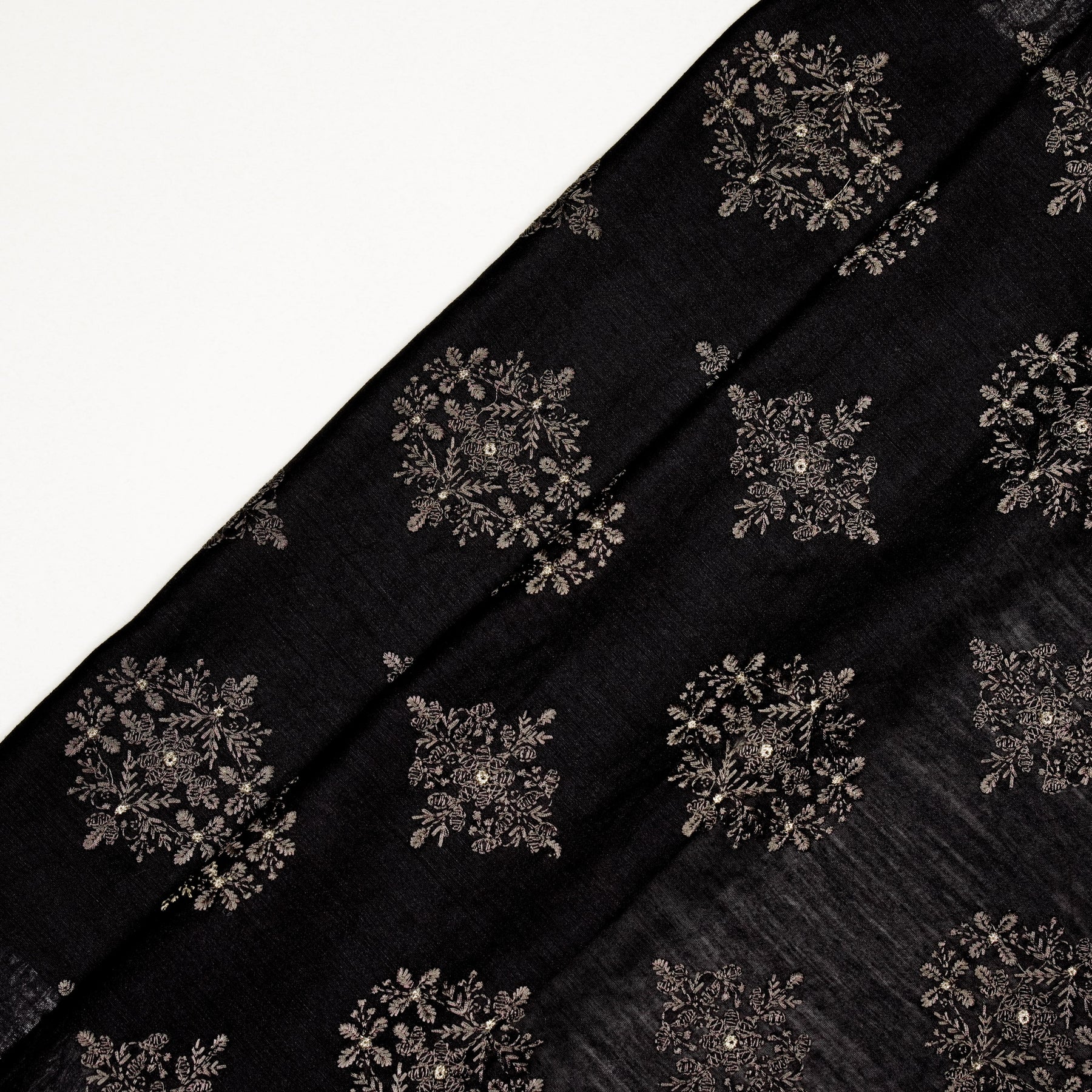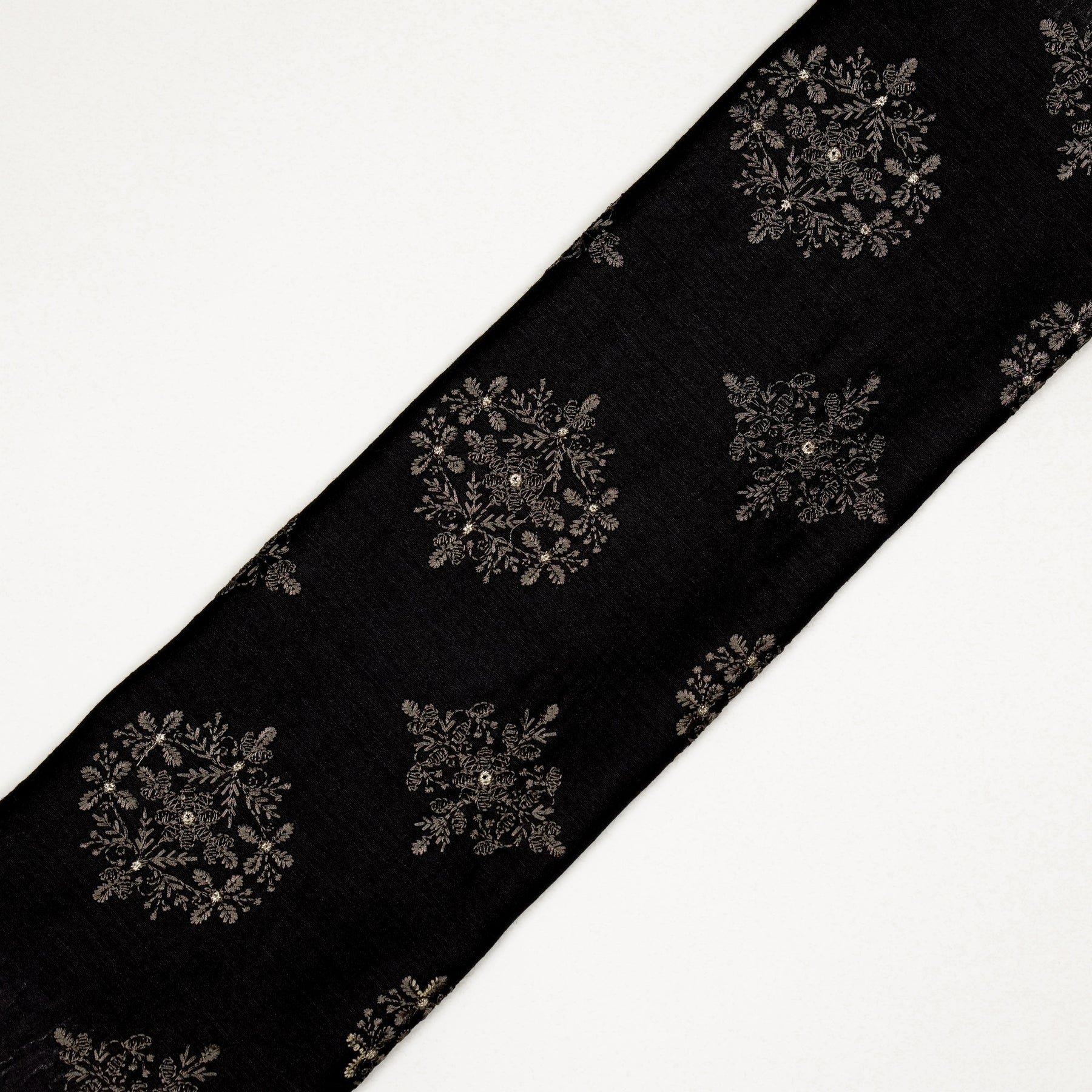 Raima Buta on Black Munga Silk Embroidered Fabric