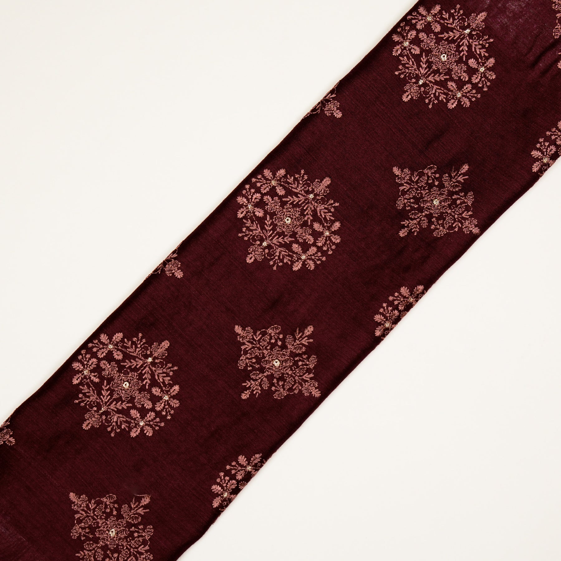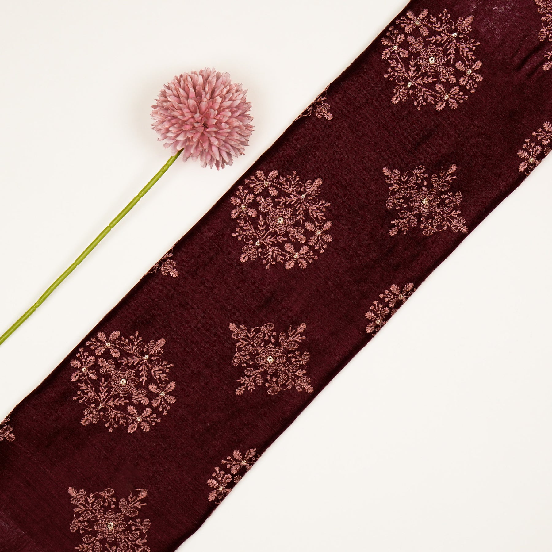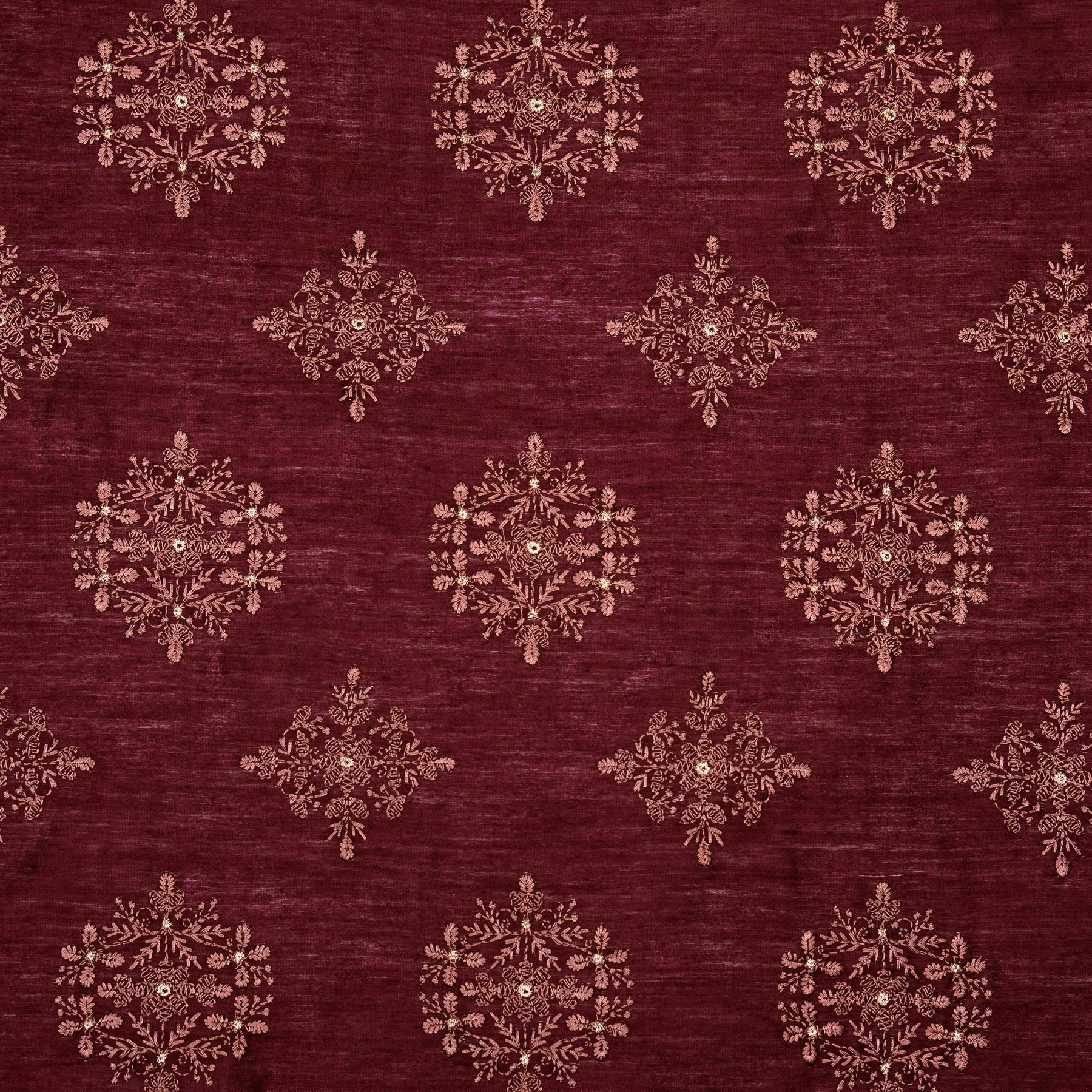 Raima Buta on Dark Magenta Munga Silk Embroidered Fabric