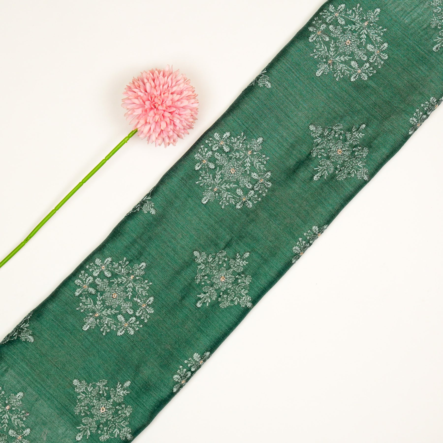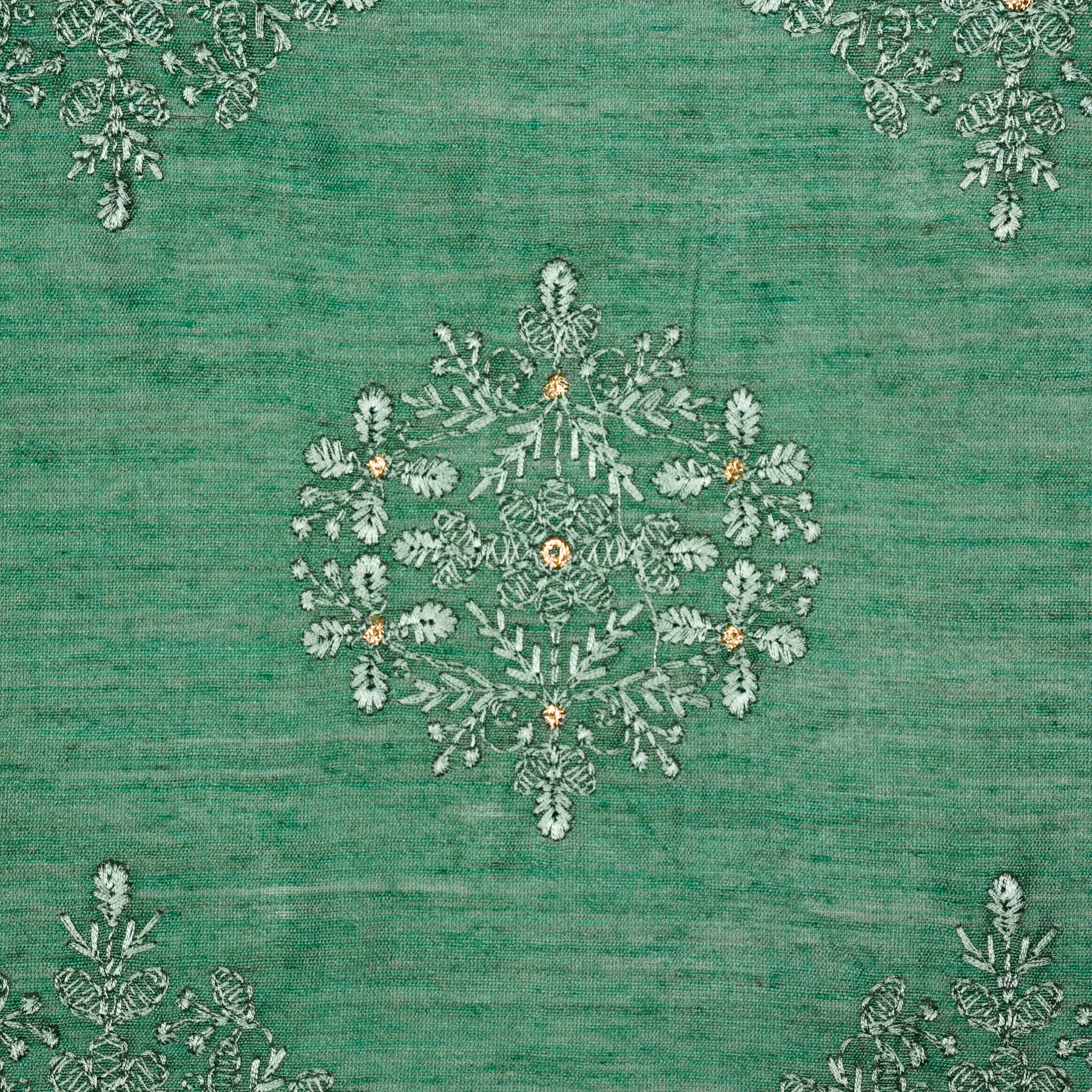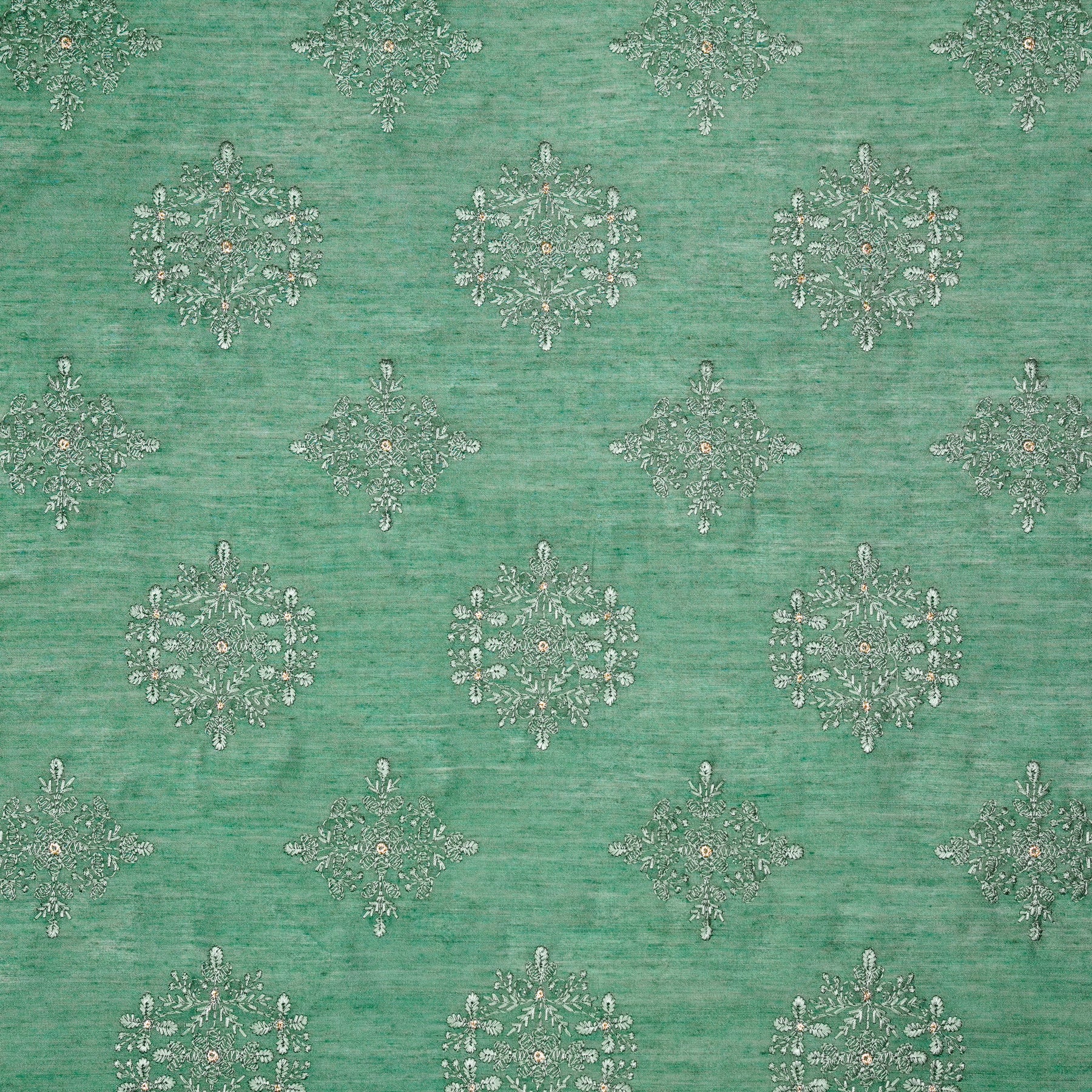 Raima Buta on Teal Munga Silk Embroidered Fabric