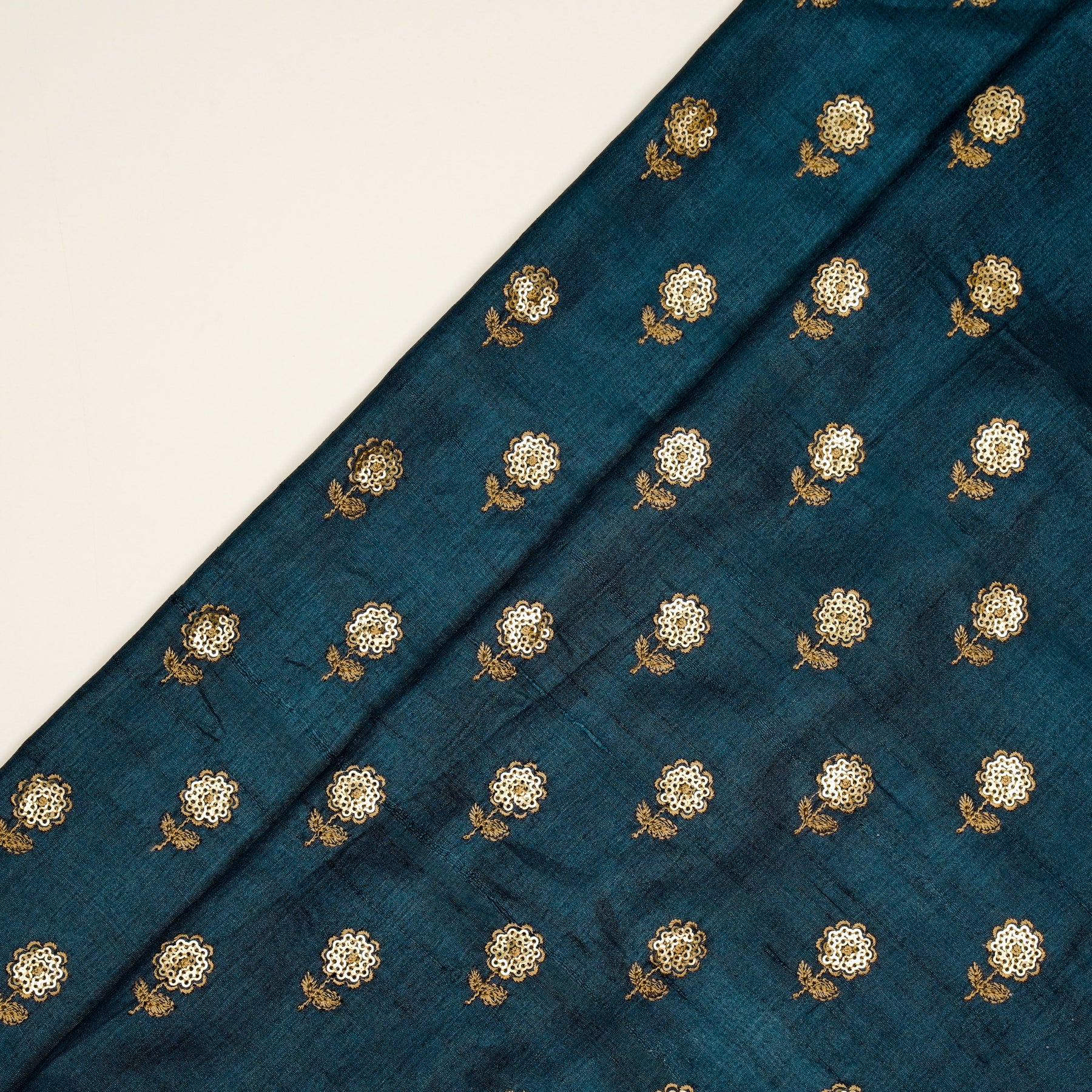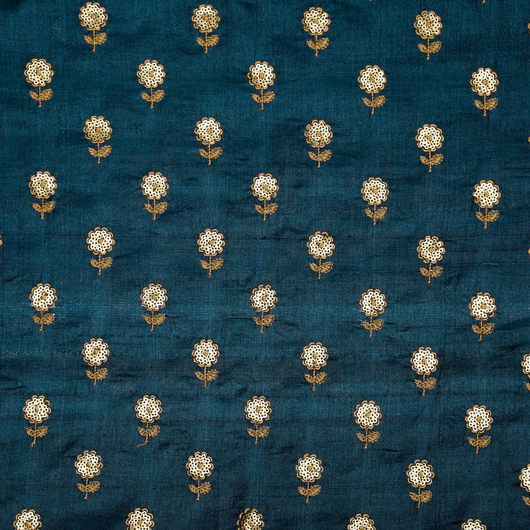Ratrika Buti on Prussian Blue Munga Silk Embroidered Fabric