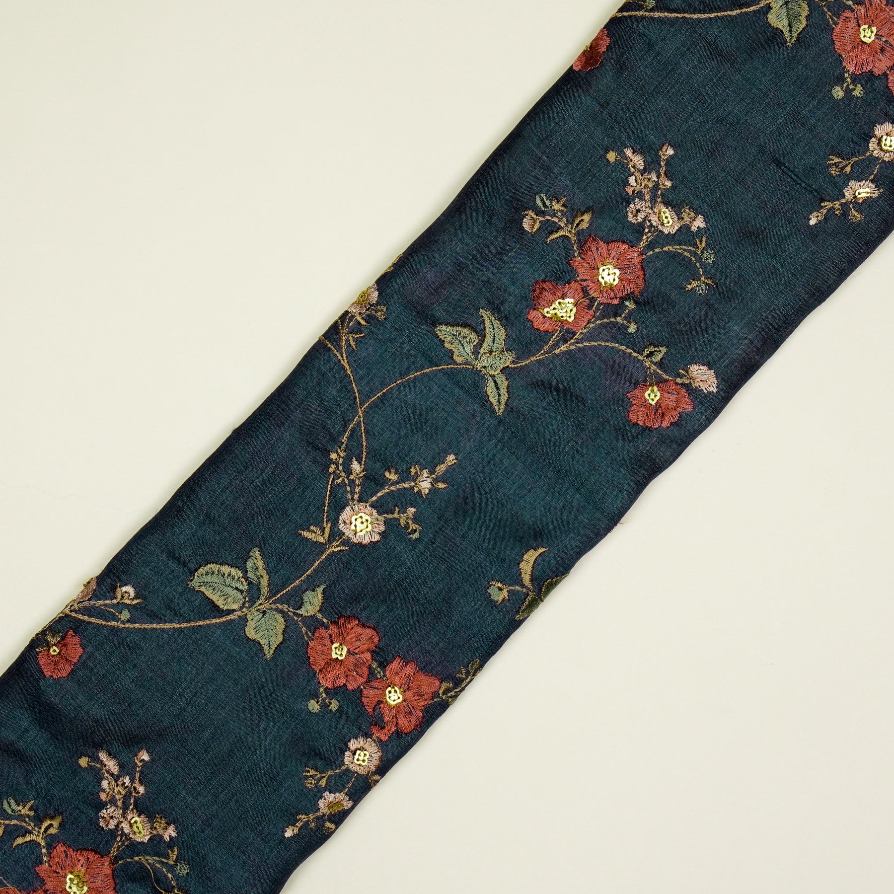 Ruqaya Jaal On Navy Blue Tussar Silk Embroidered Fabric