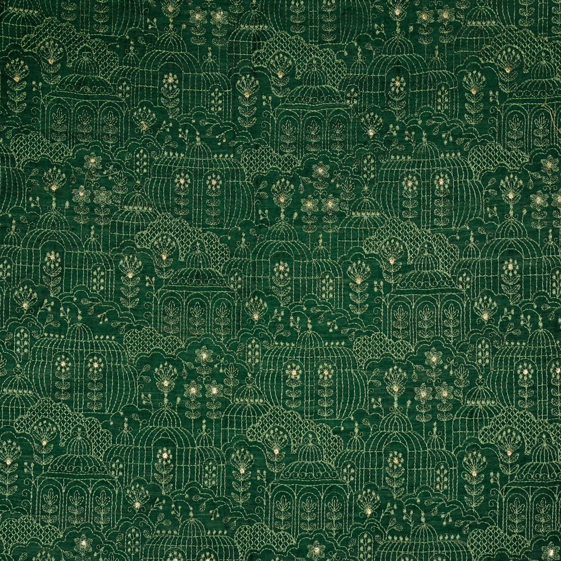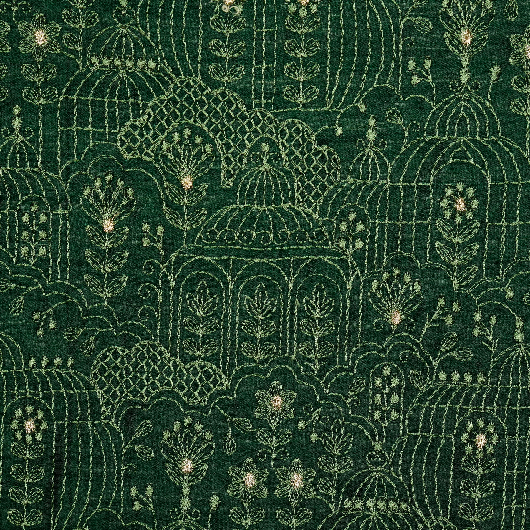 Shaira Jaal on Bottole Green Munga Silk Embroidered Fabric