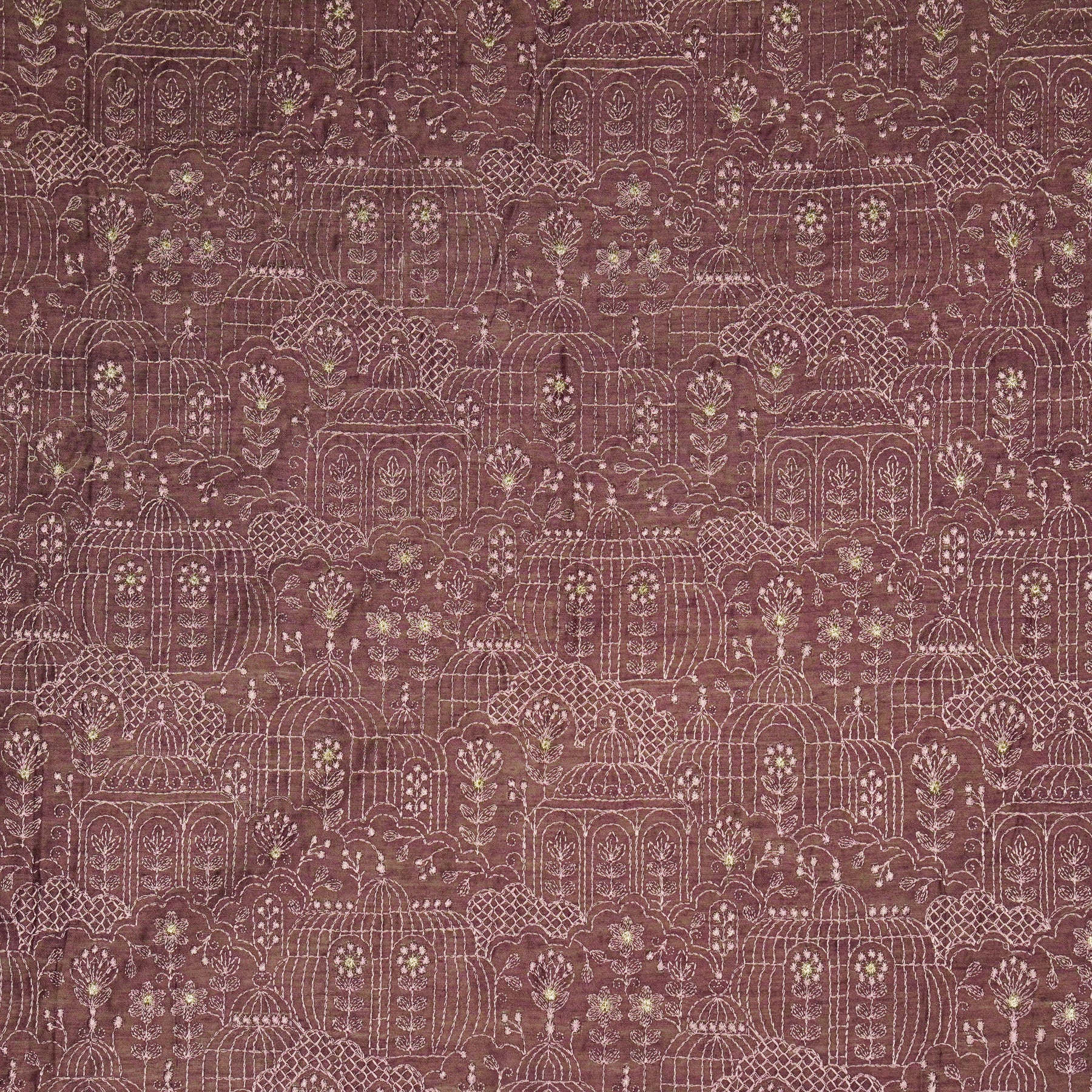 Shaira Jaal on Deep Mauve Munga Silk Embroidered Fabric