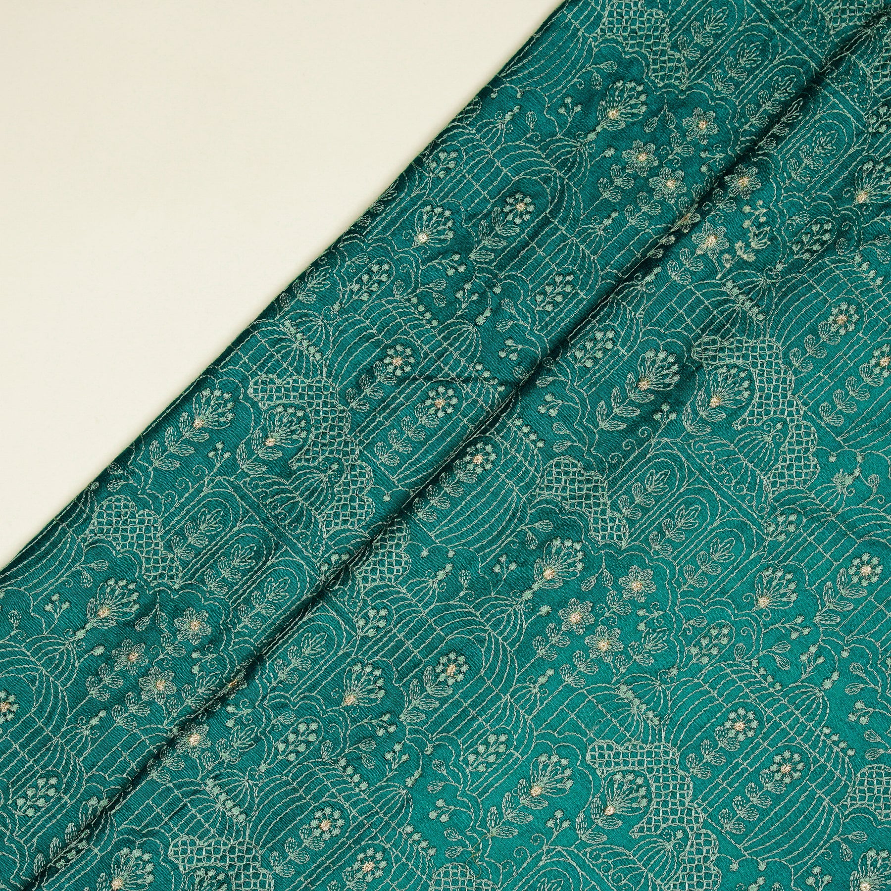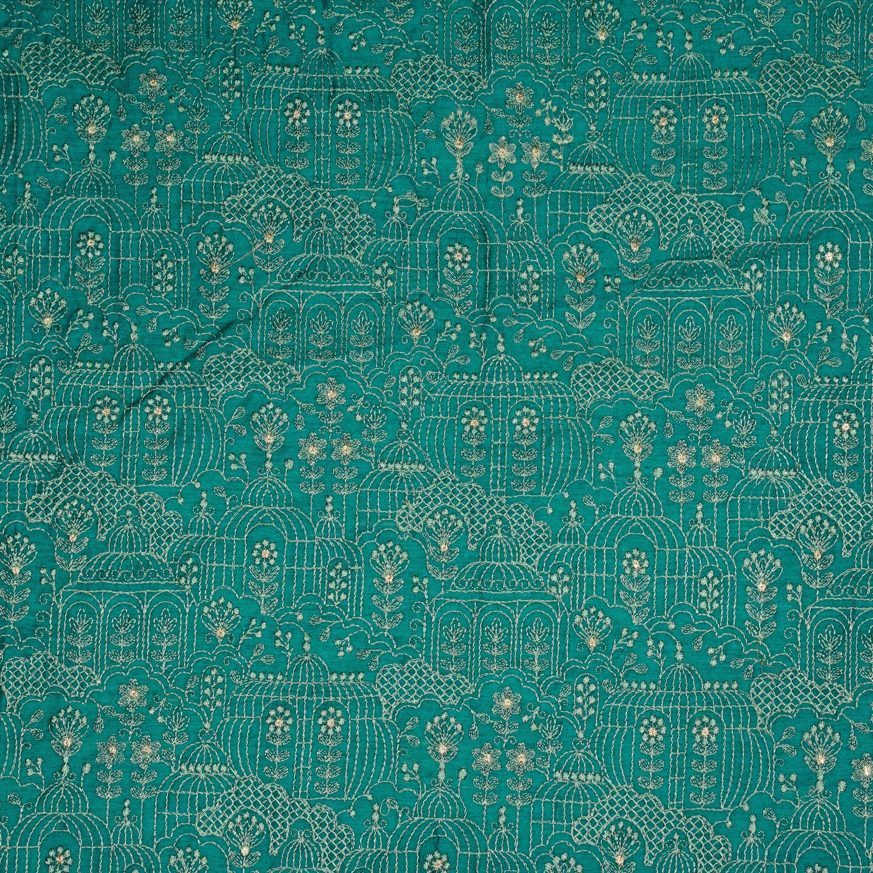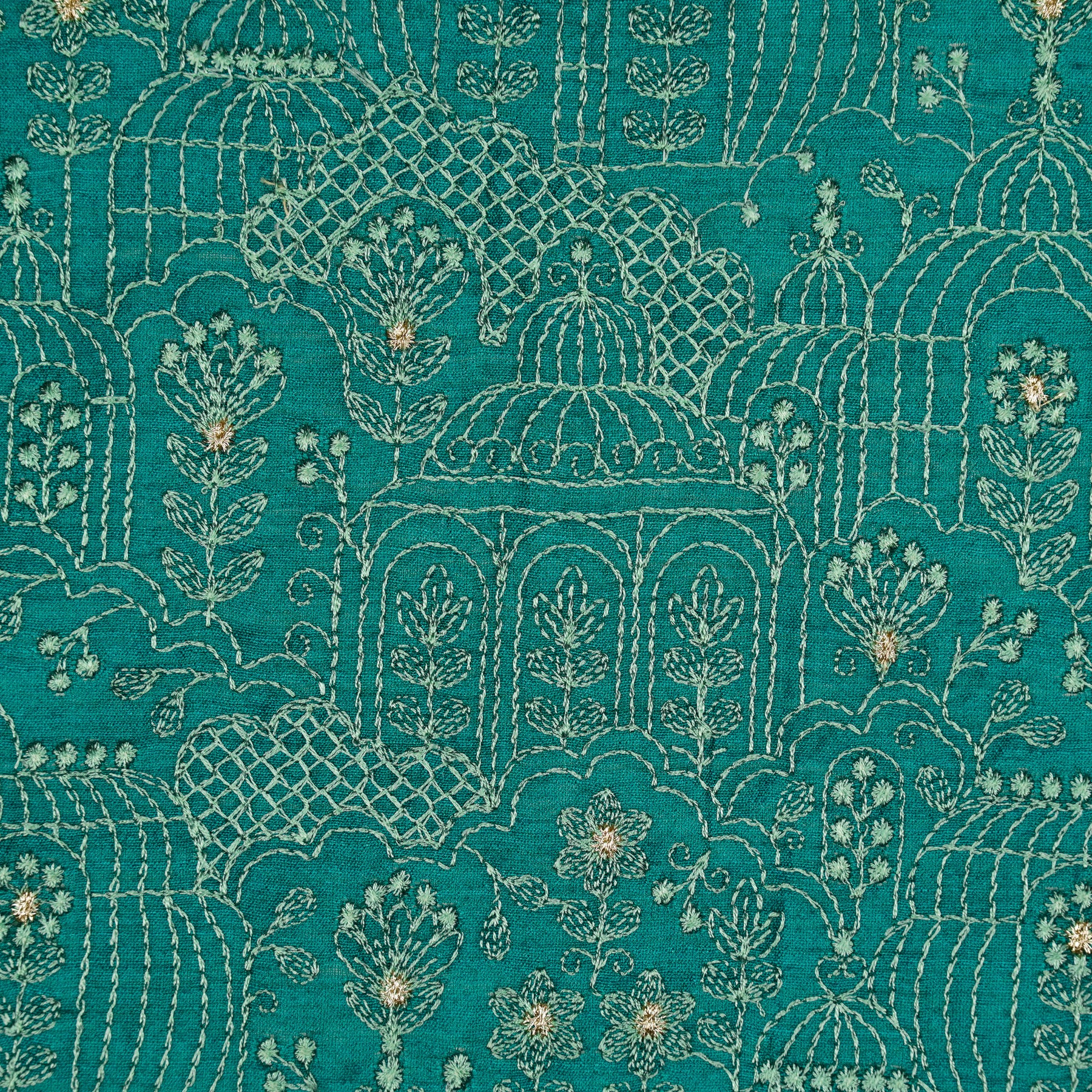 Shaira Jaal on Peacock Blue Munga Silk Embroidered Fabric