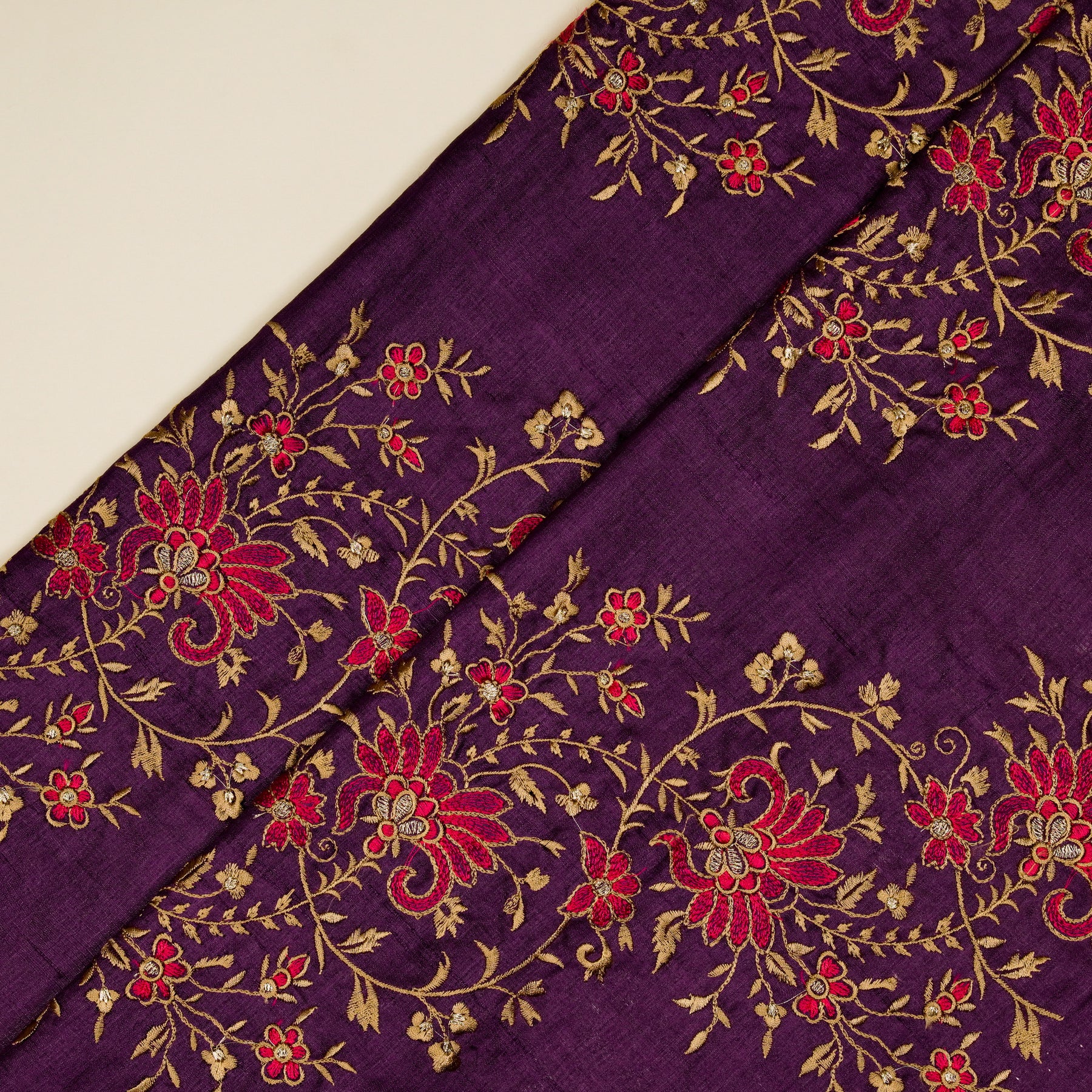 Shamsa Jaal On Purple Tussar Silk Embroidered Fabric