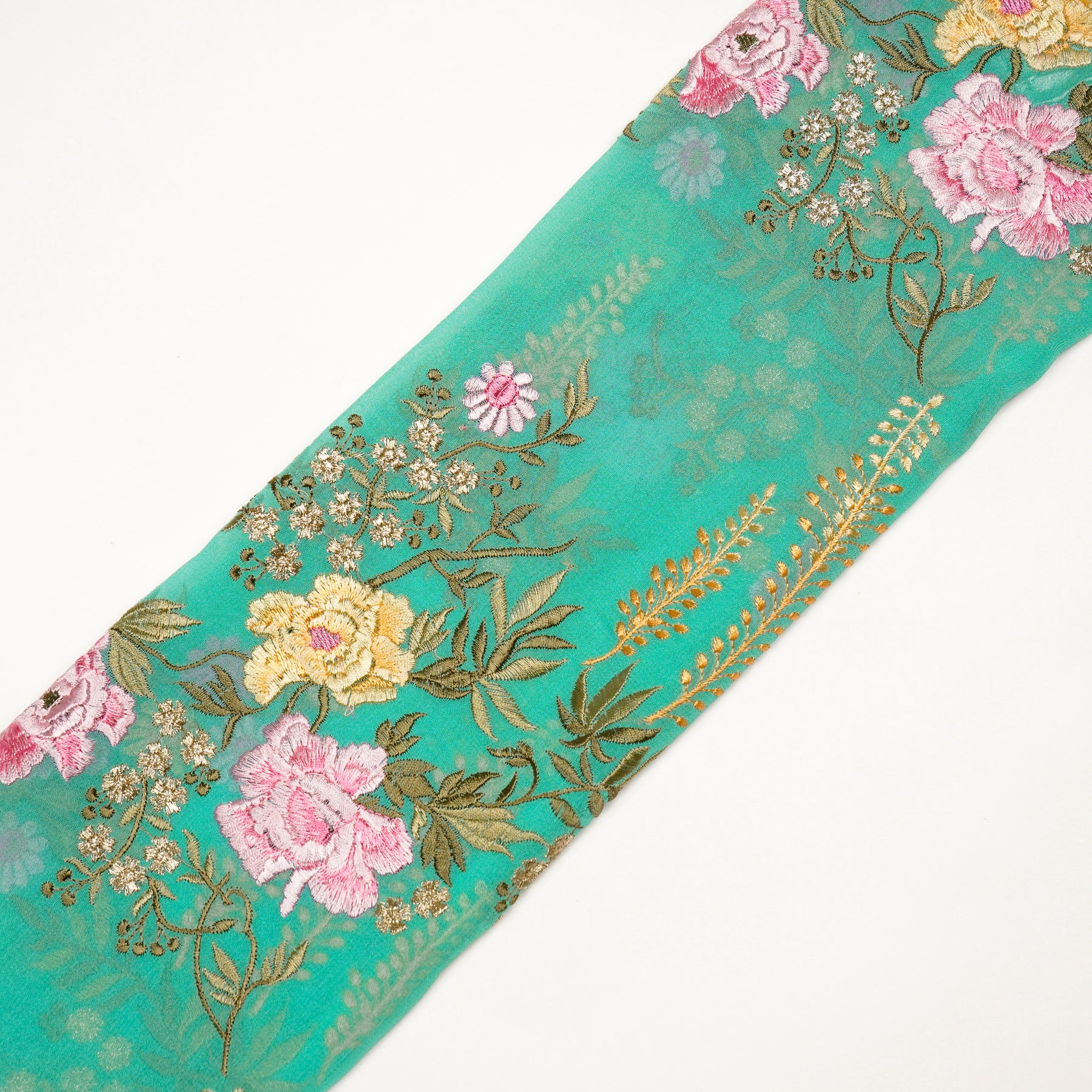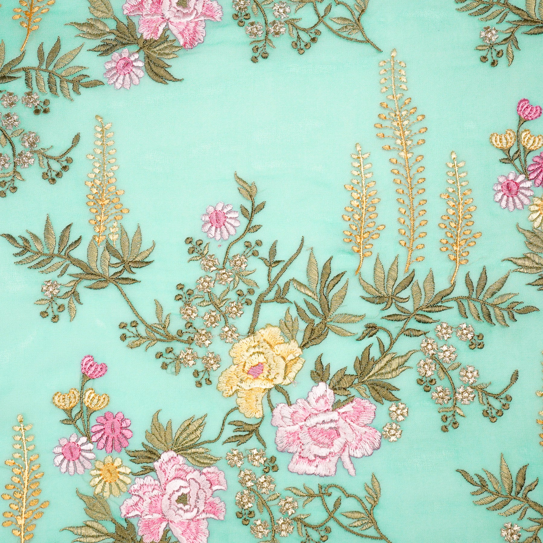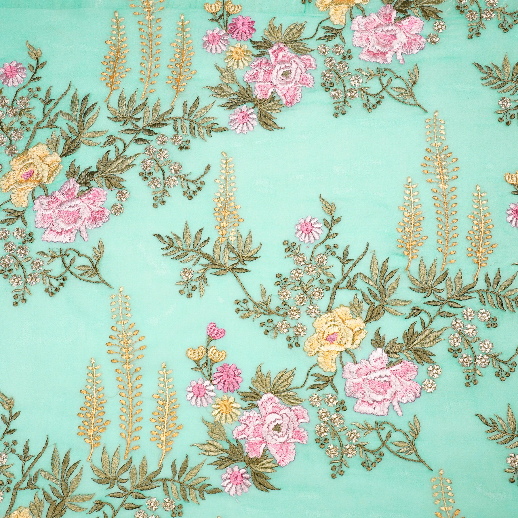 Suhana Parsi Jaal On Turquoise Semi Georgette Embroidered