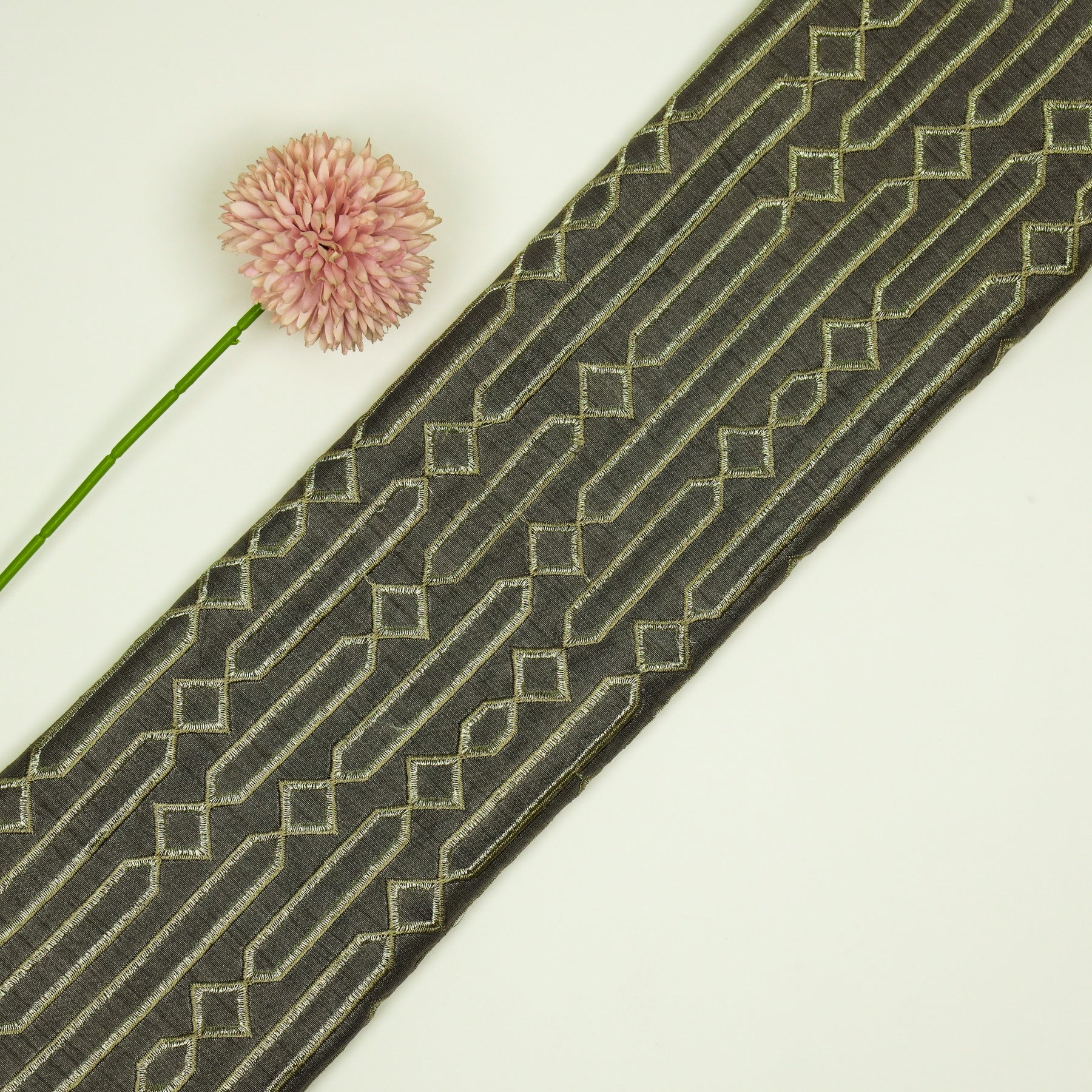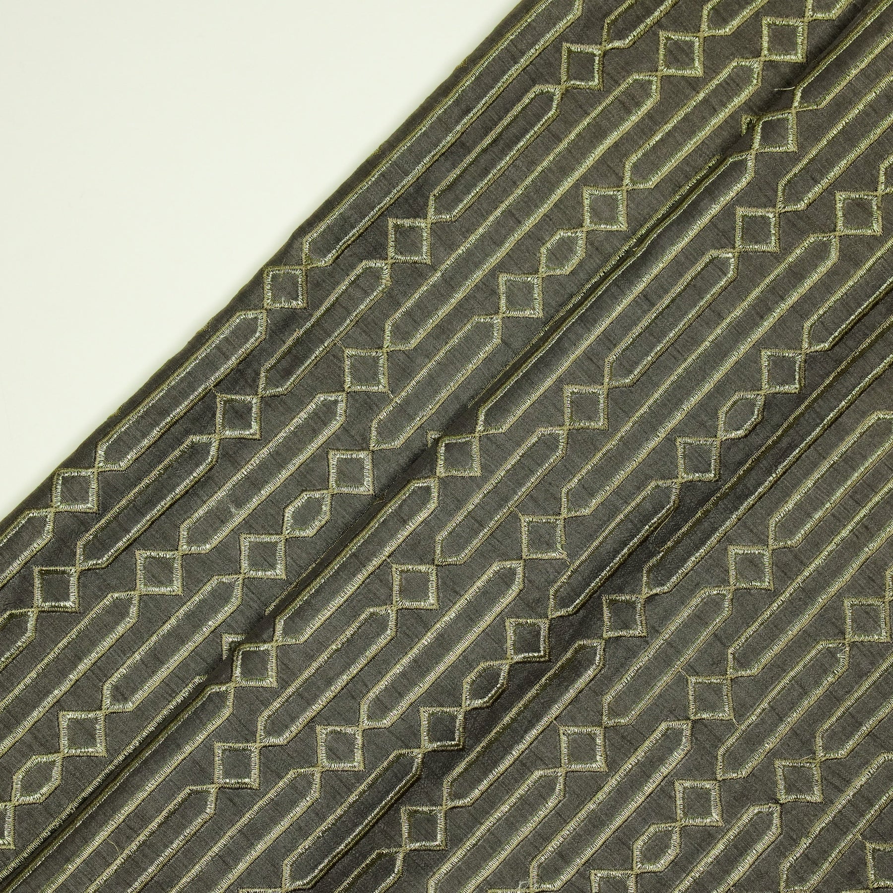 Tanira Jaal on Charcoal Semi Raw Silk Embroidered Fabric