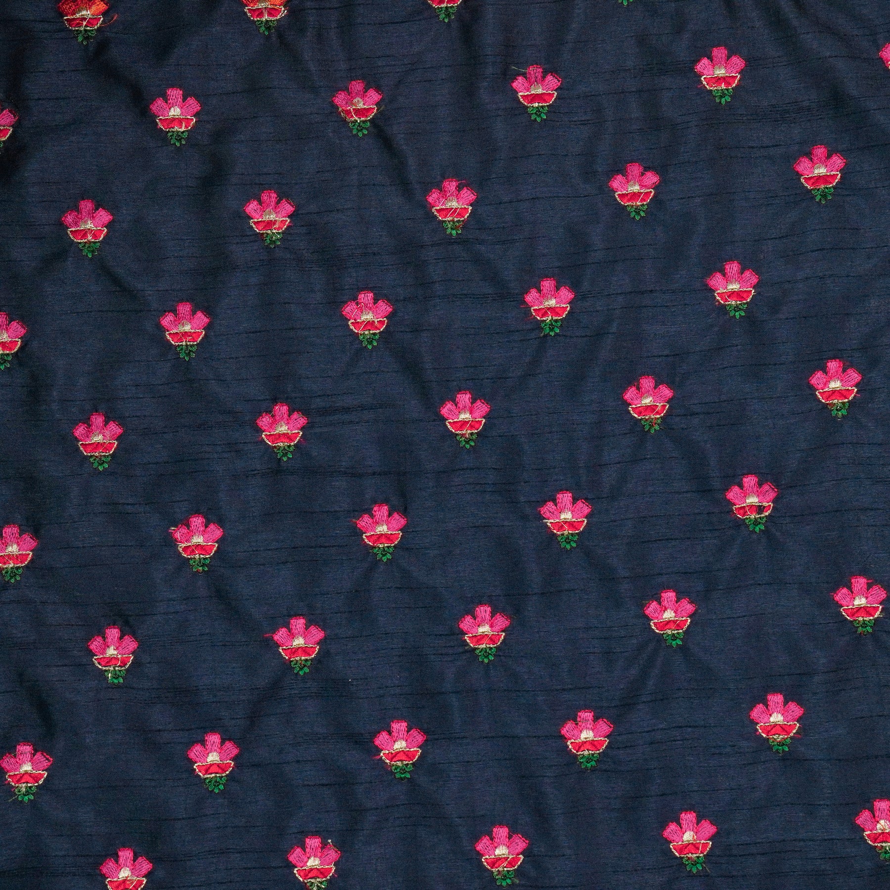 Trifla Buti on Navy Blue Dola Silk Embroidered Fabric