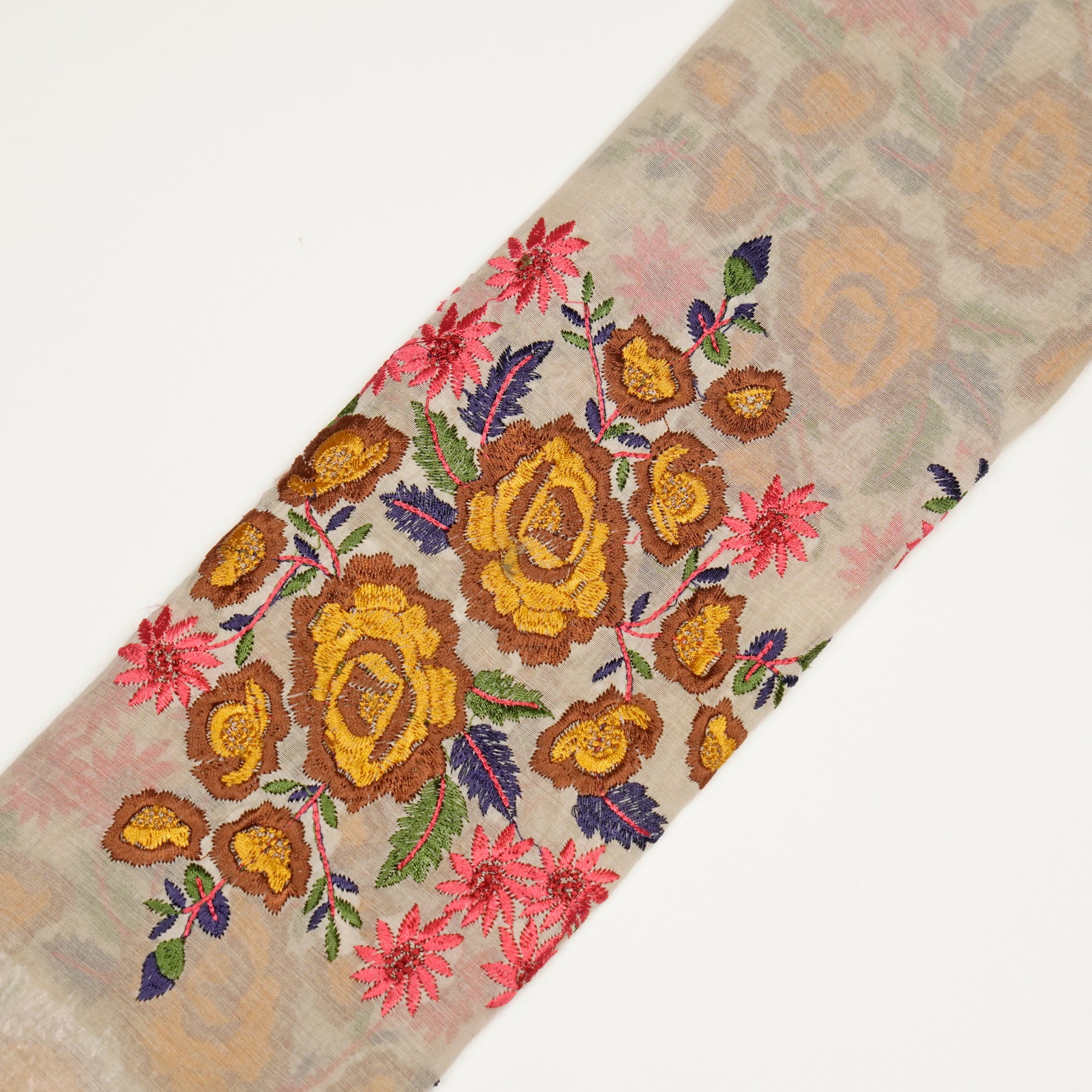 Vasanti Buta on Natural Brown Semi Chanderi Embroidered Fabric