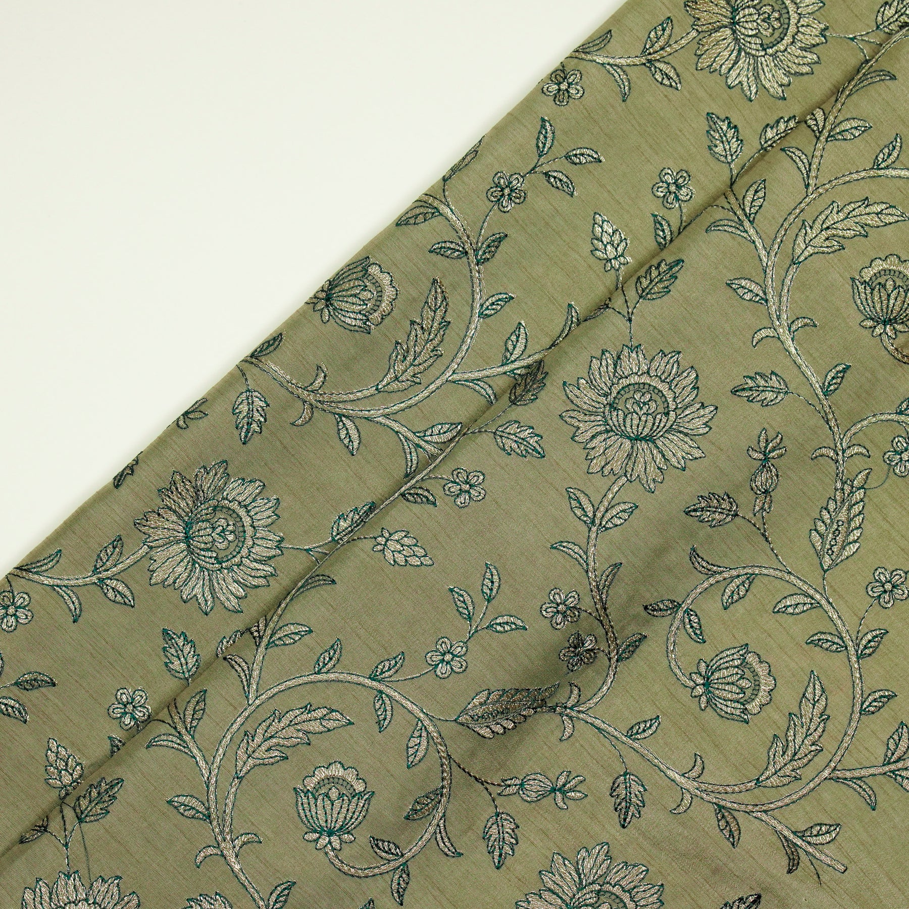 Vrita Jaal on Grey Semi Raw Silk Embroidered Fabric