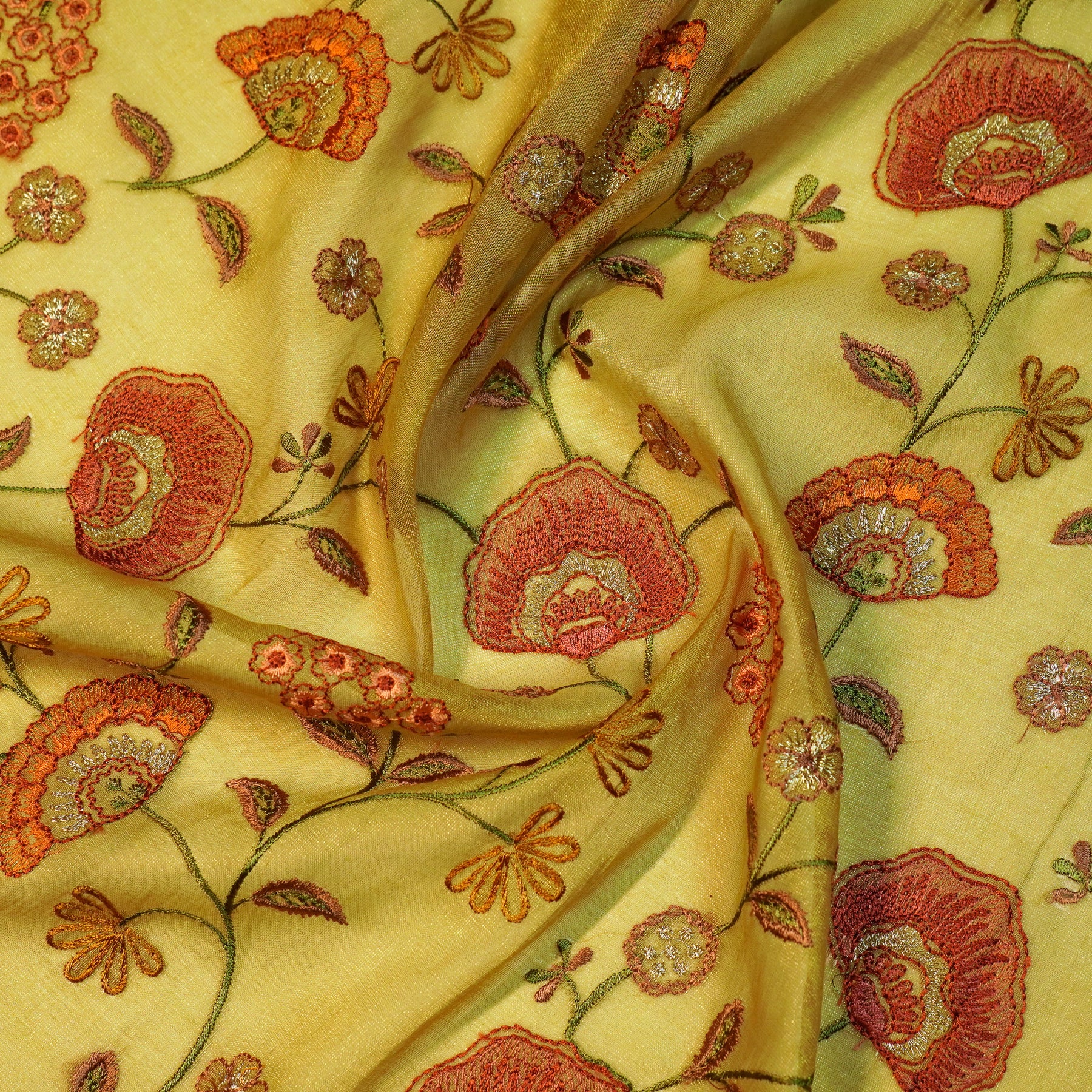 Zarifa Jaal on Olive Tissue Embroidered Fabric