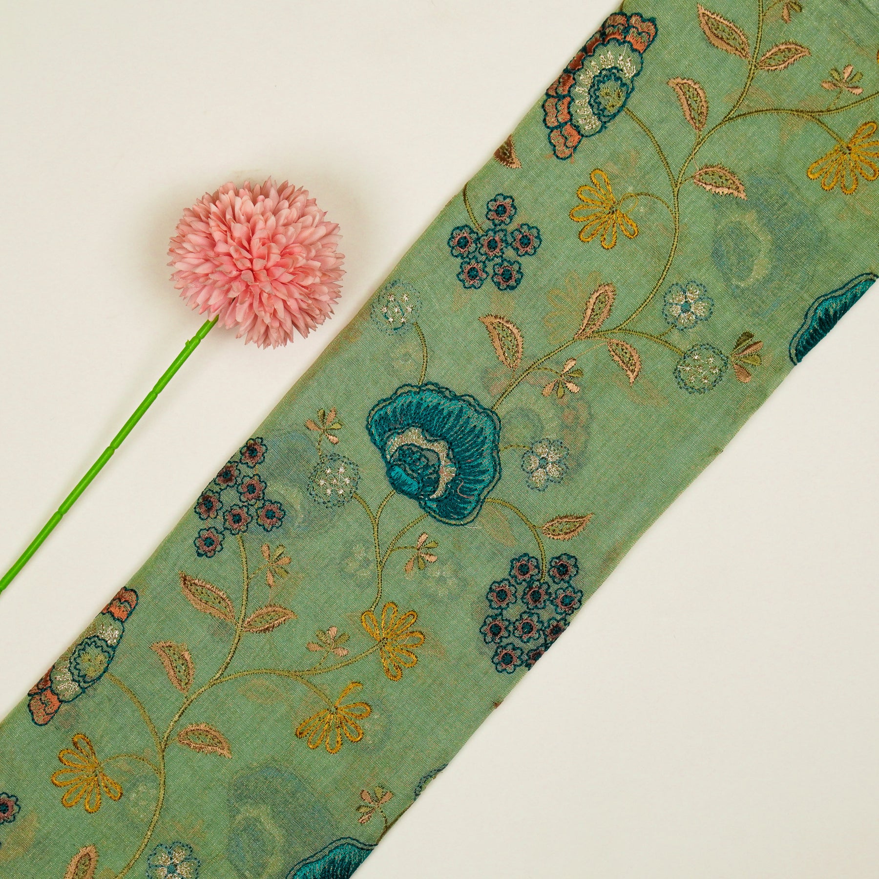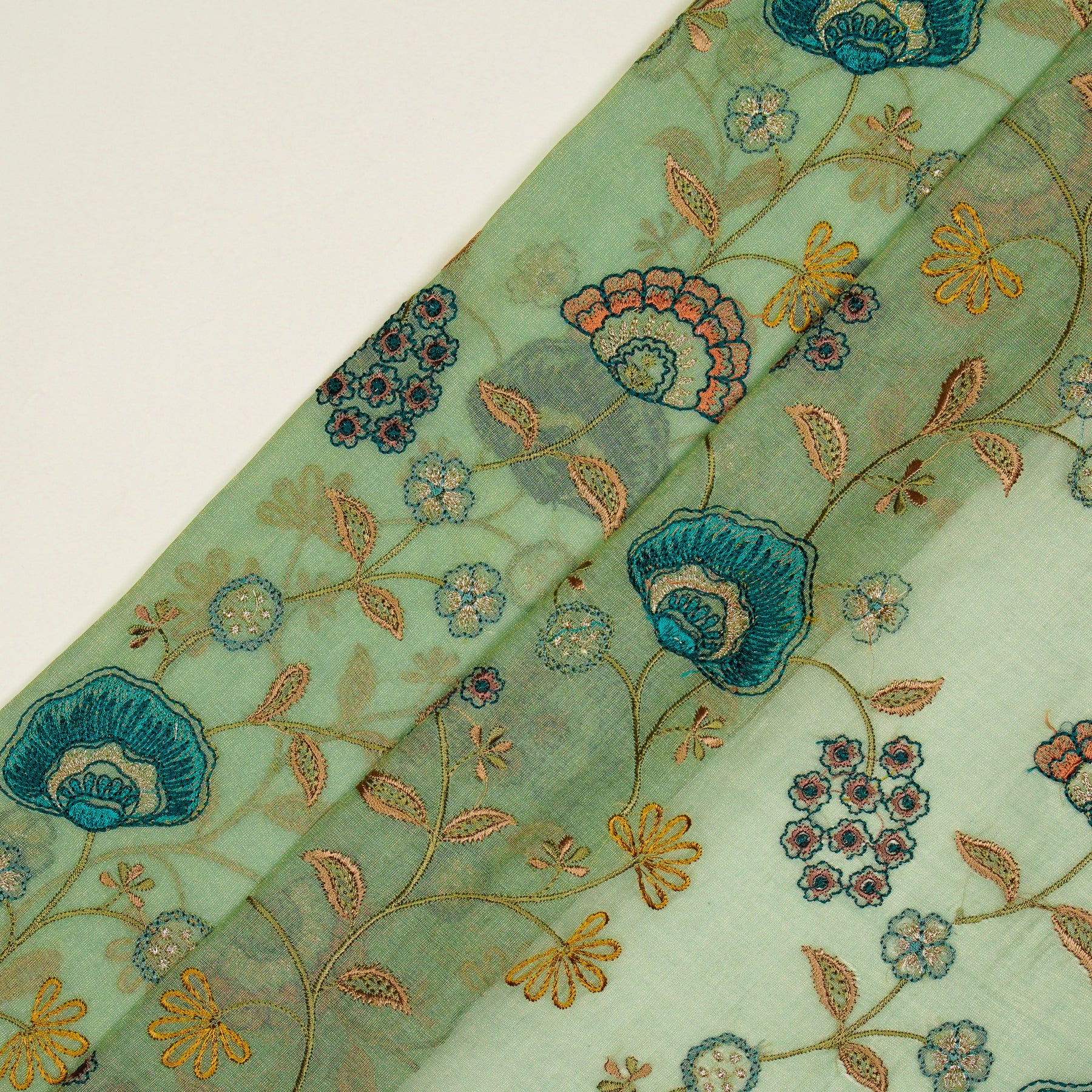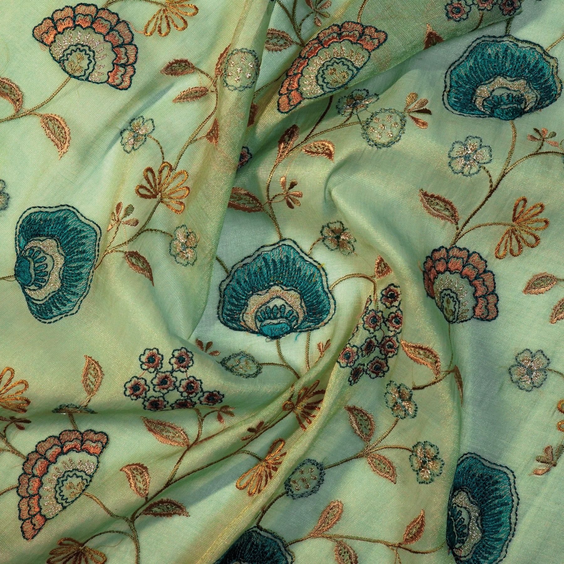 Zarifa Jaal on Sea Green Tissue Embroidered Fabric