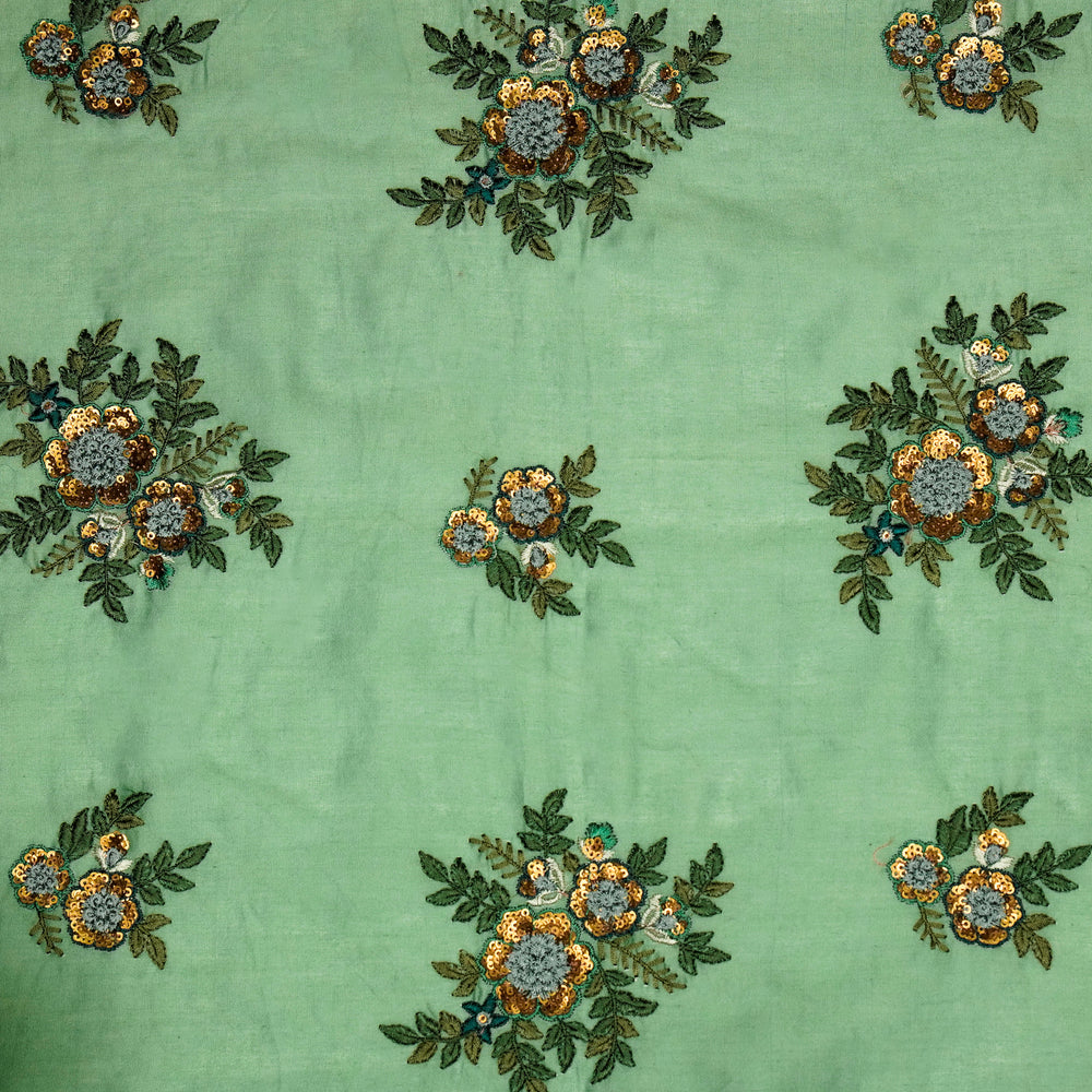 Nasrin Jaal on Sea Green Semi Chanderi Embroidered Fabric