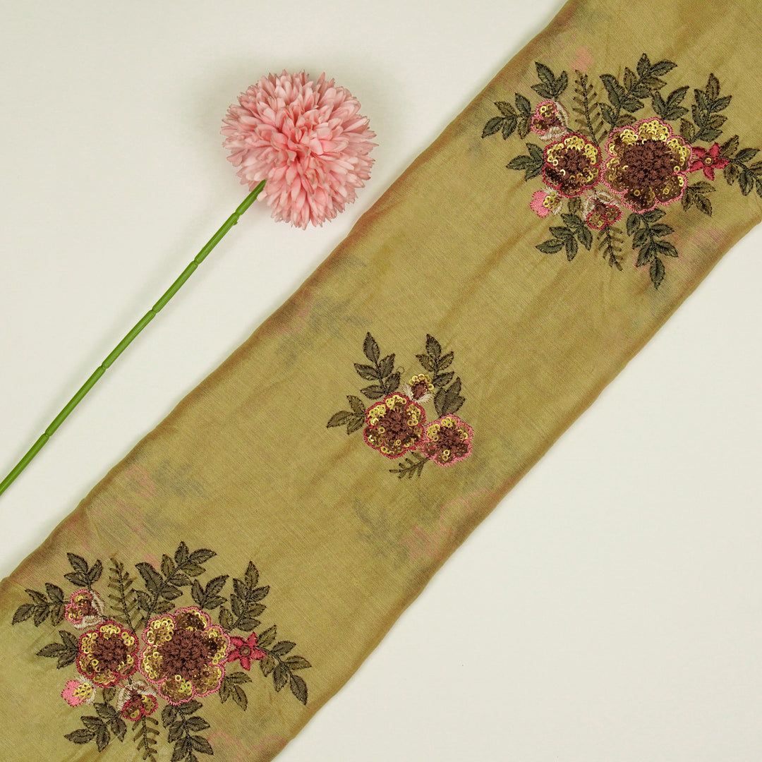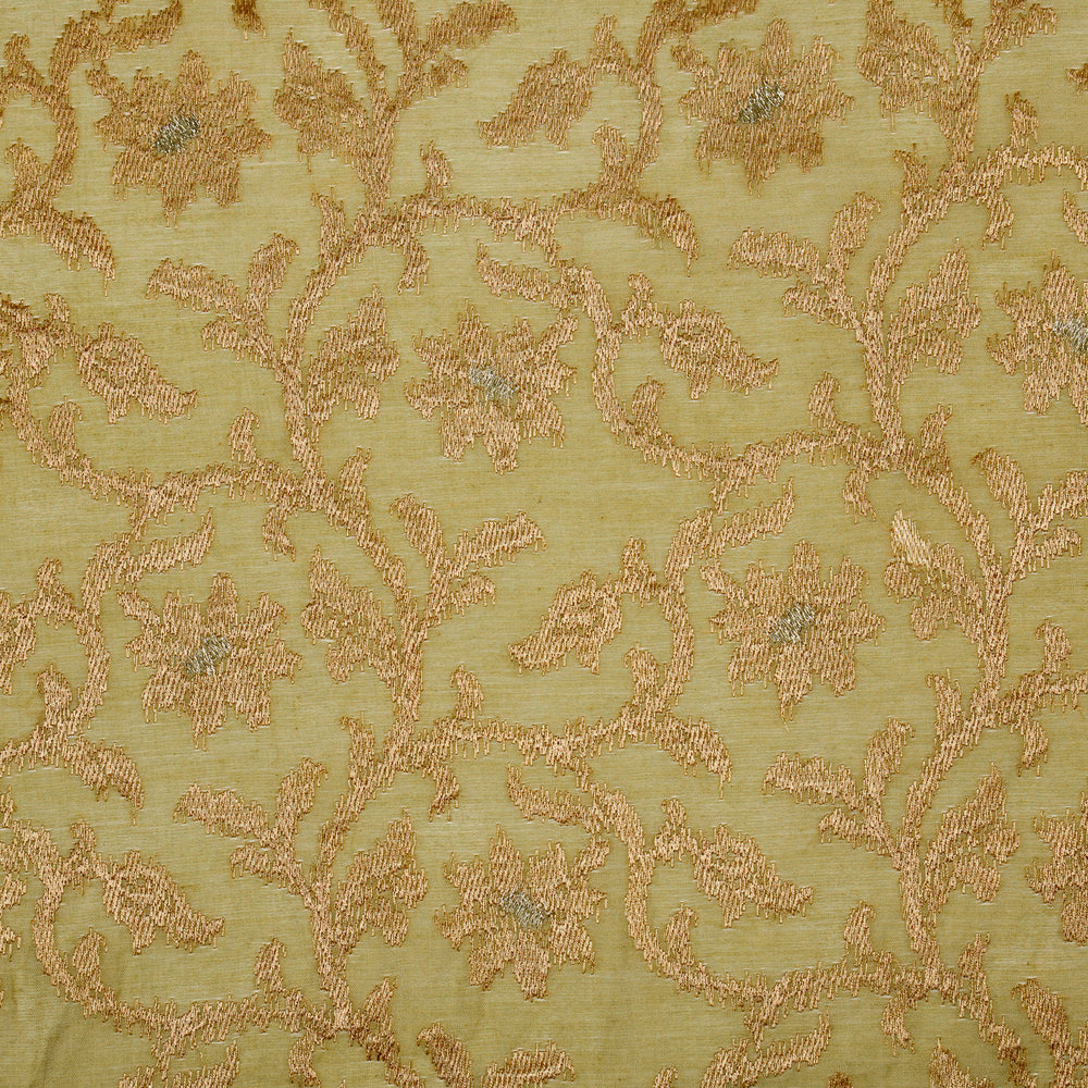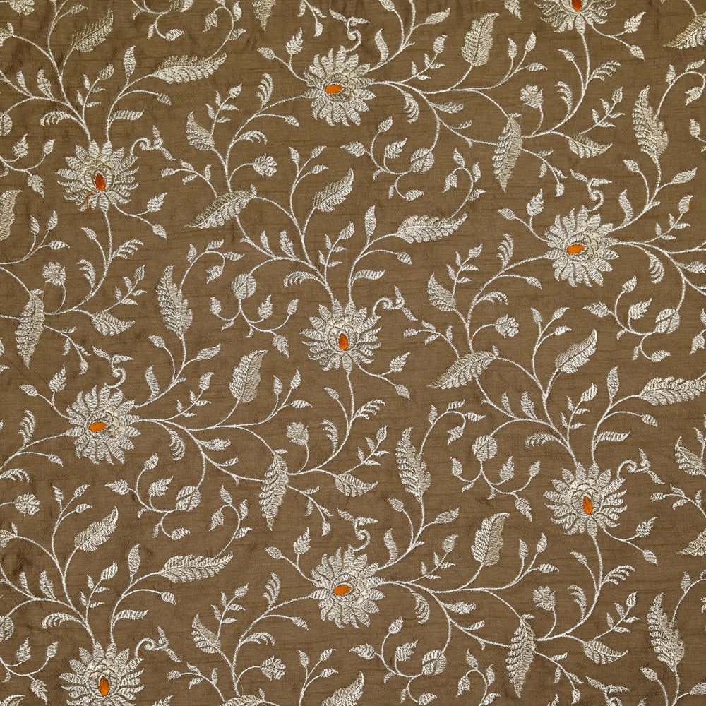 Pushti Buta on Dusky Gold Luxe Silk Chanderi Embroidered Fabric