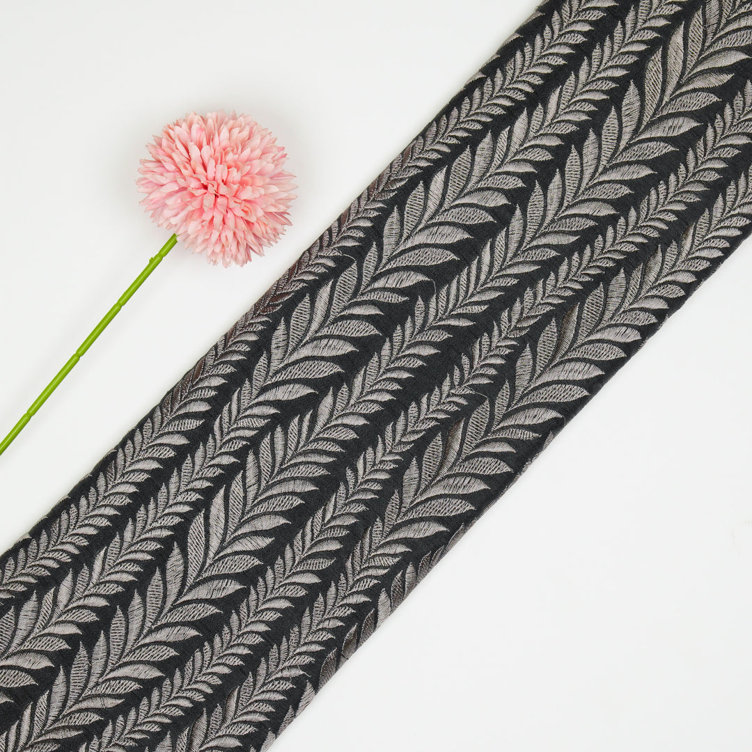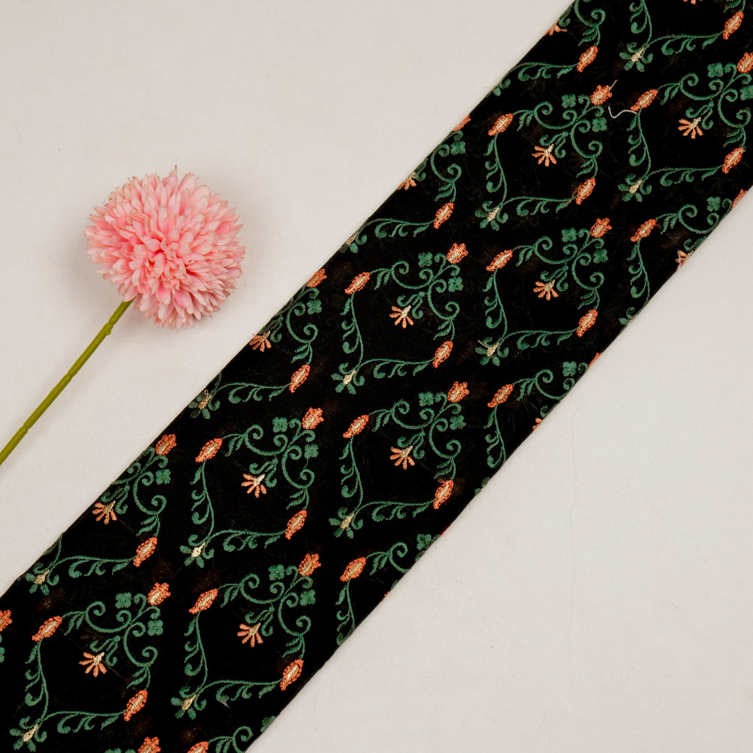 Shyama Jaal on Black Semi Chanderi Embroidered Fabric