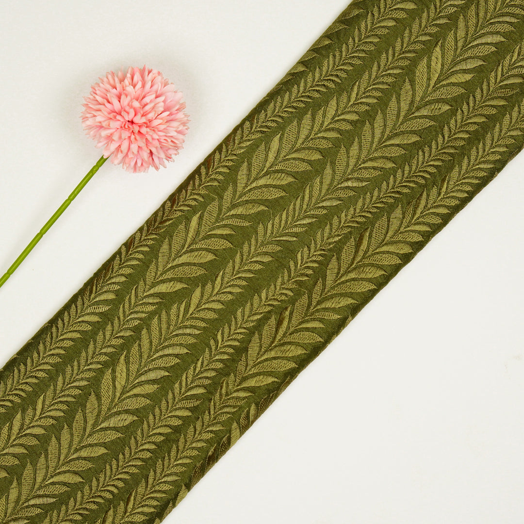 Pushti Buta on Forest Green Luxe Silk Chanderi Embroidered Fabric