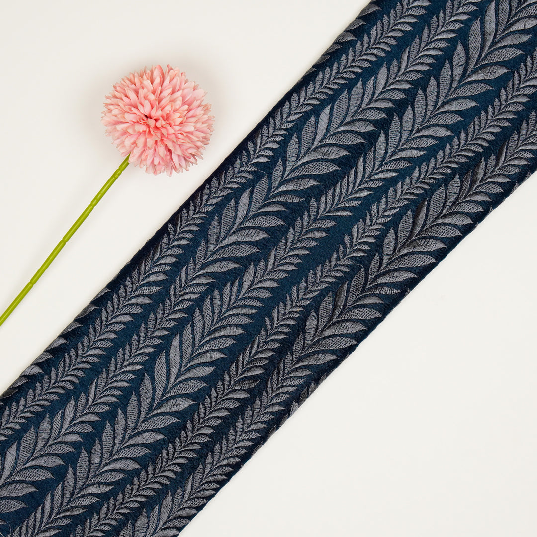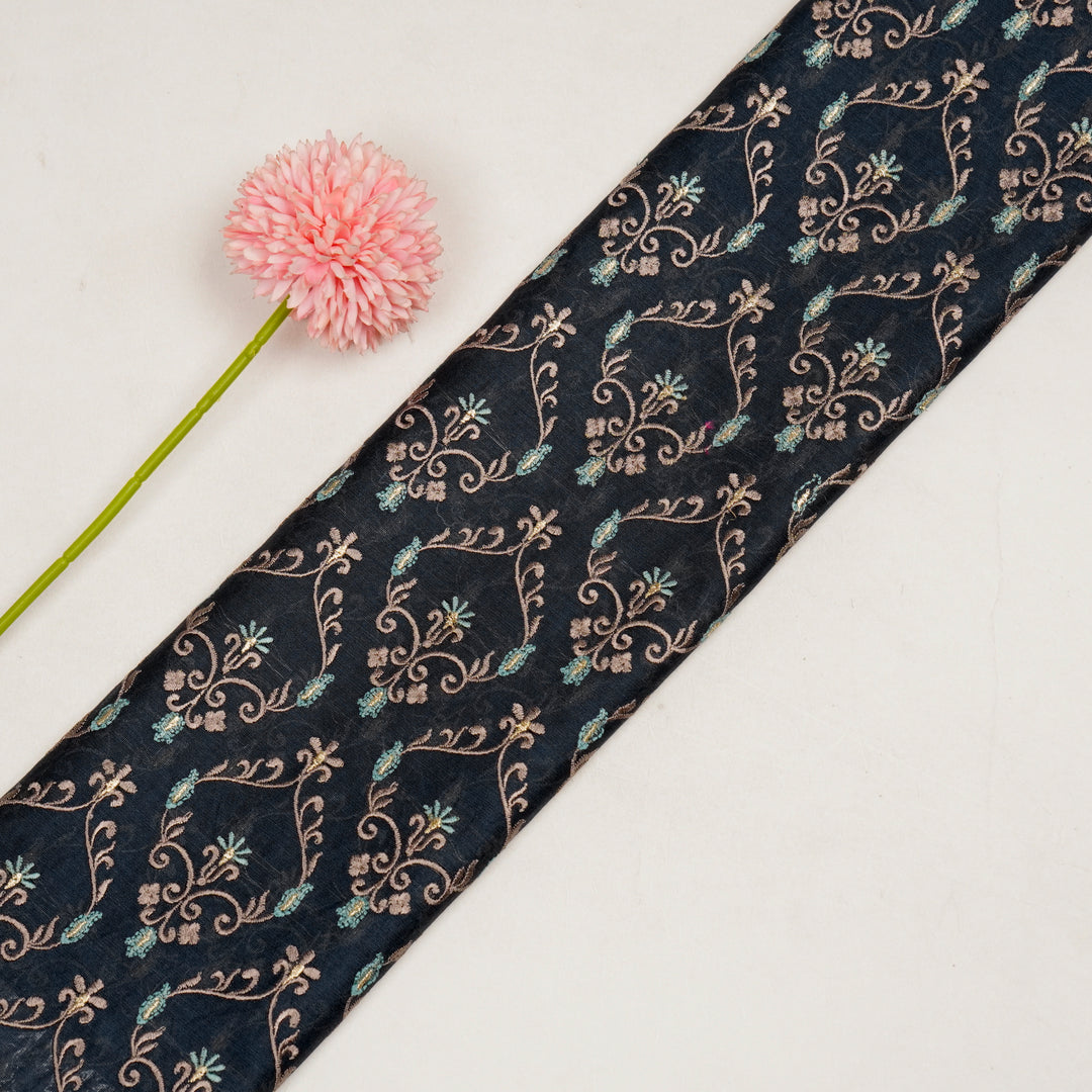 Zeena Jaal on Navy Blue Dola Silk Embroidered Fabric