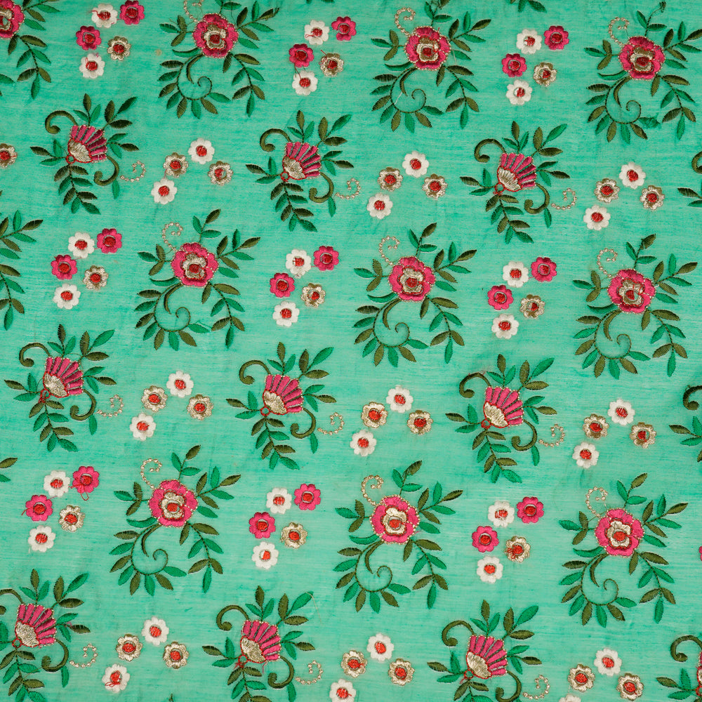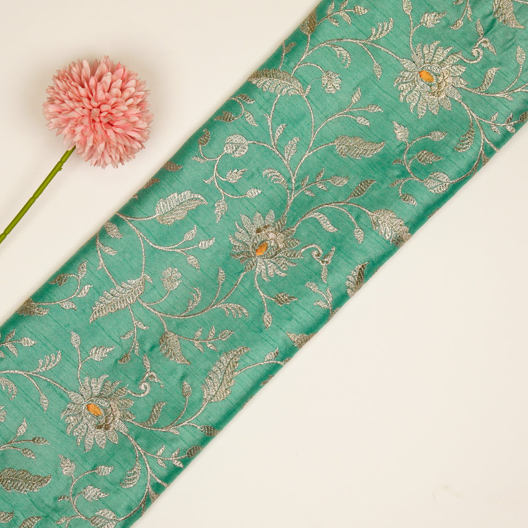 Shyama Jaal on Aqua Green Semi Chanderi Embroidered Fabric