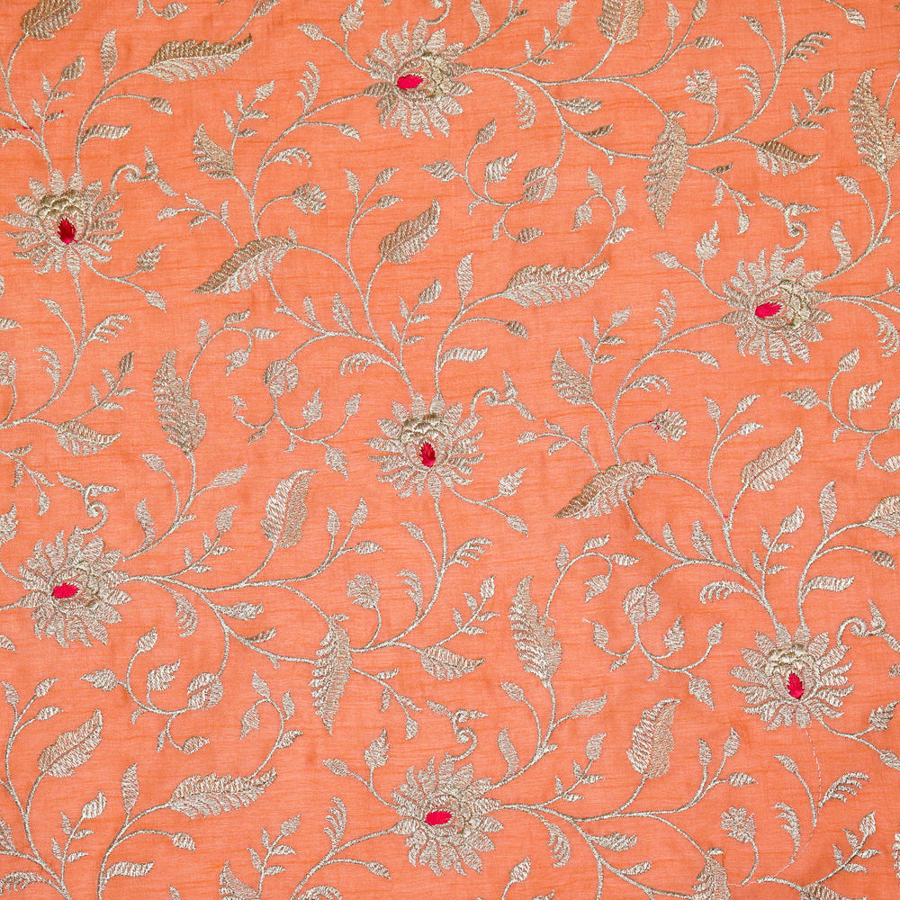 Asma Jaal on Deep Peach Semi Chanderi Embroidered Fabric